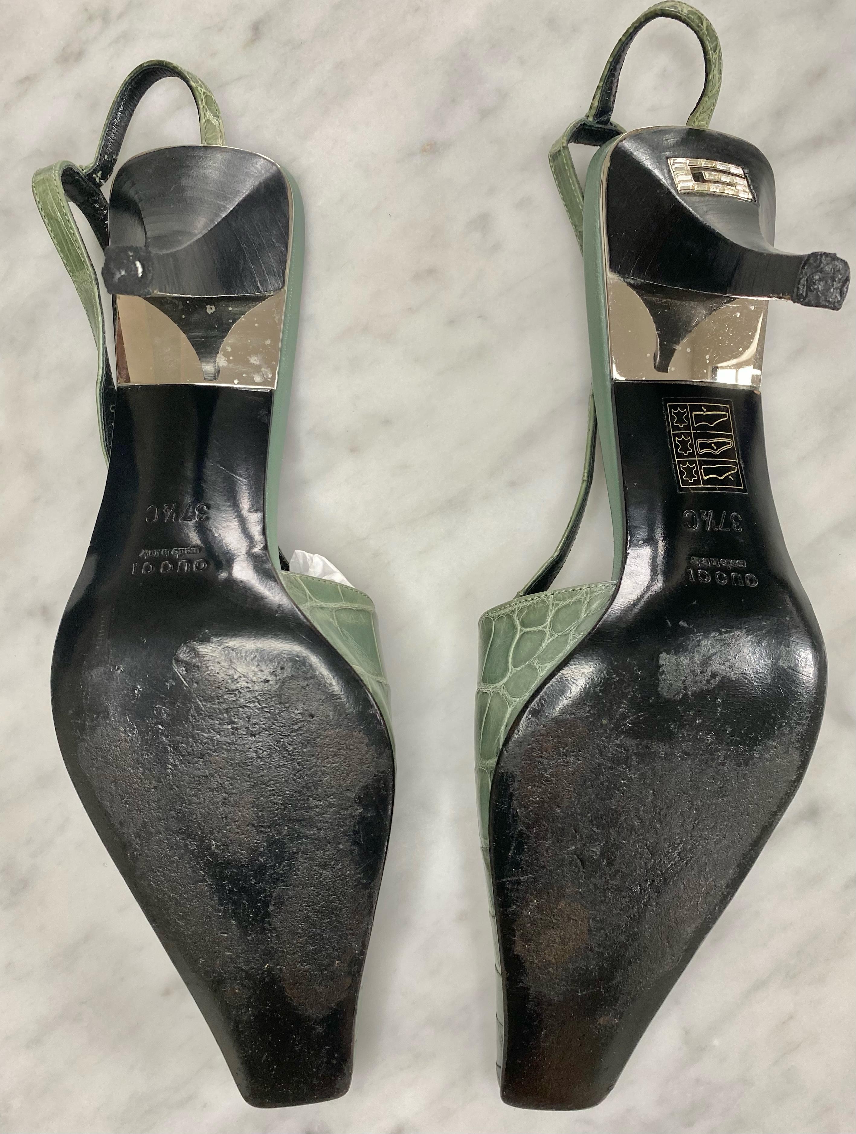 S/S 1998 Gucci by Tom Ford Light Green Alligator Kitten Heels Crystal G