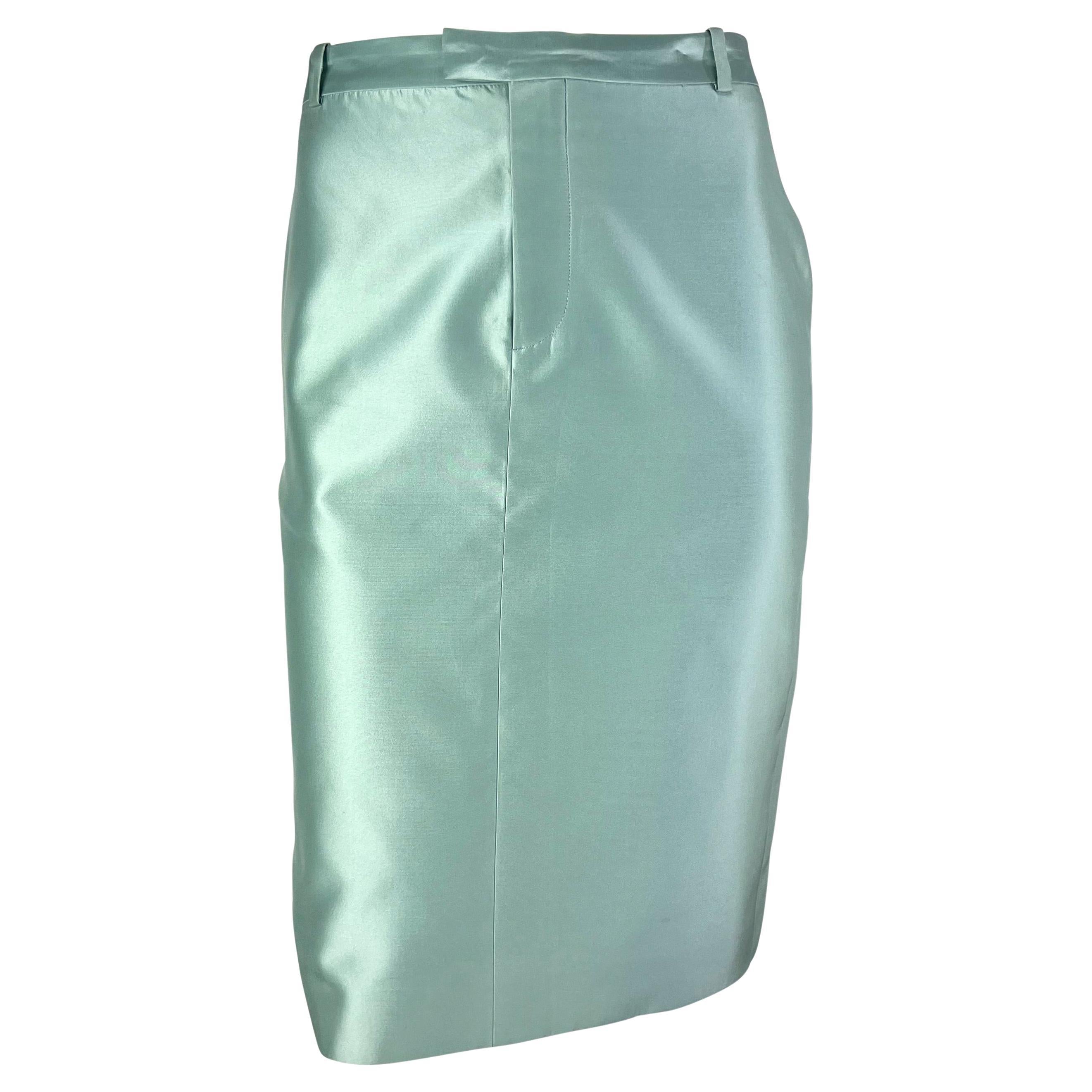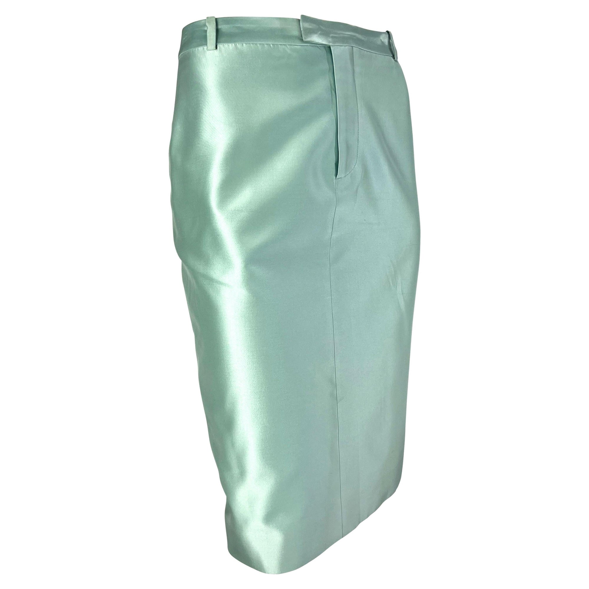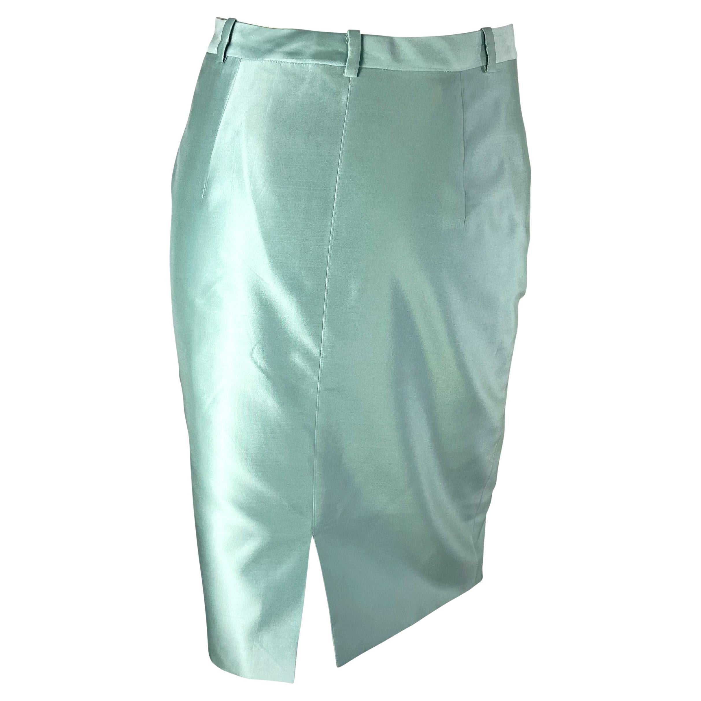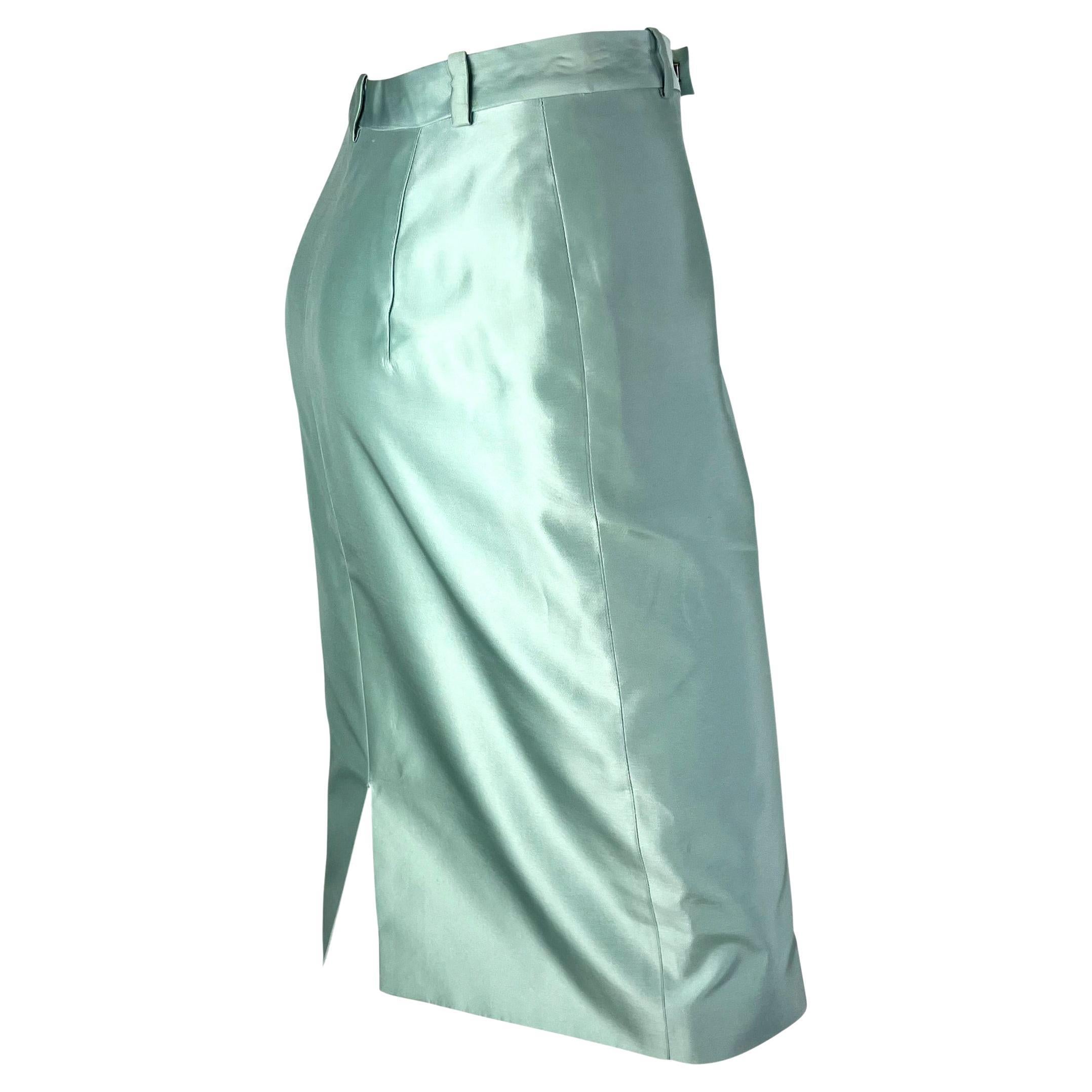 S/S 1998 Gucci by Tom Ford Runway Baby Blue Silk Satin Pencil Skirt
