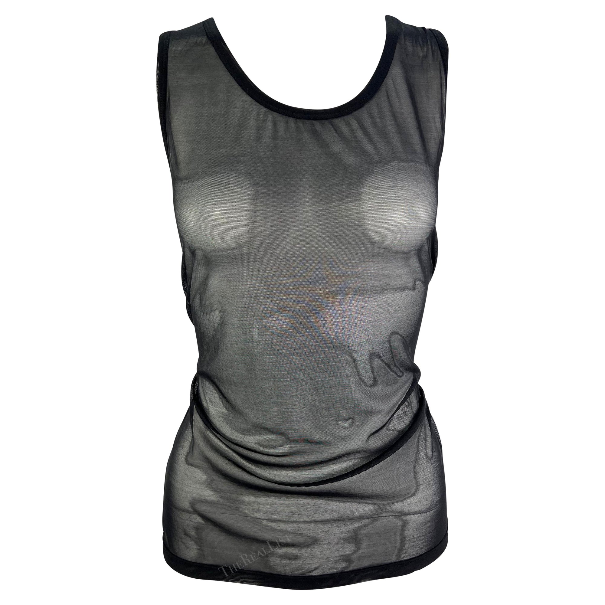 S/S 1998 Gucci by Tom Ford Runway Sheer Black Mesh Bodycon Tank Top