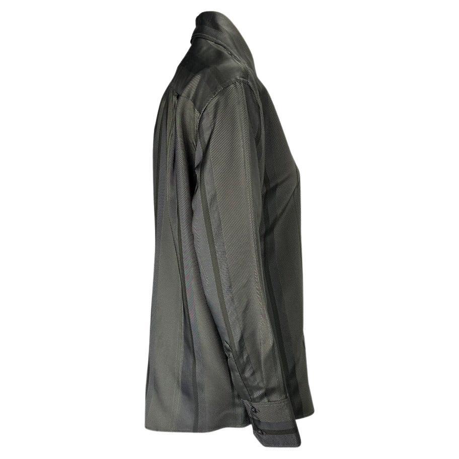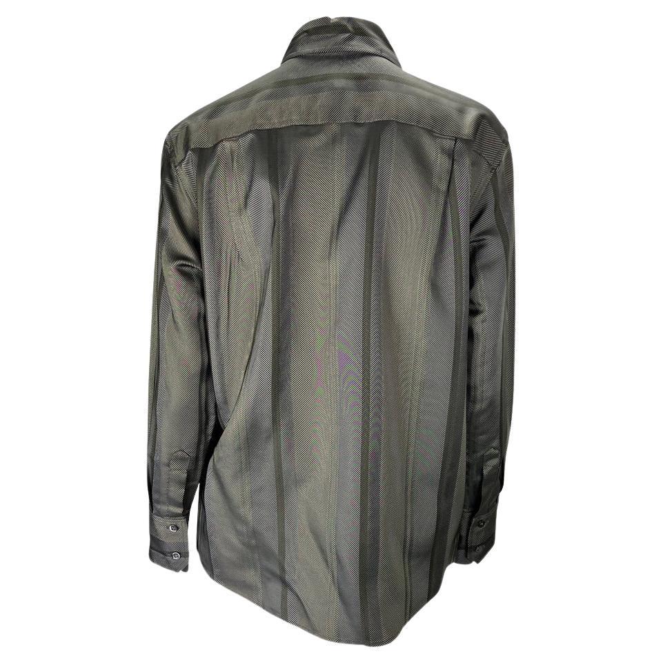 Presenting a beautiful woven striped Gucci shirt designed by Tom Ford for Gucci's Spring/Summer 1998 collection. A classic button-down collared shirt, this top is constructed of a beautiful, lustrous silk blend. Chic and sexy is what Tom Ford does best, and this shirt is no exception.