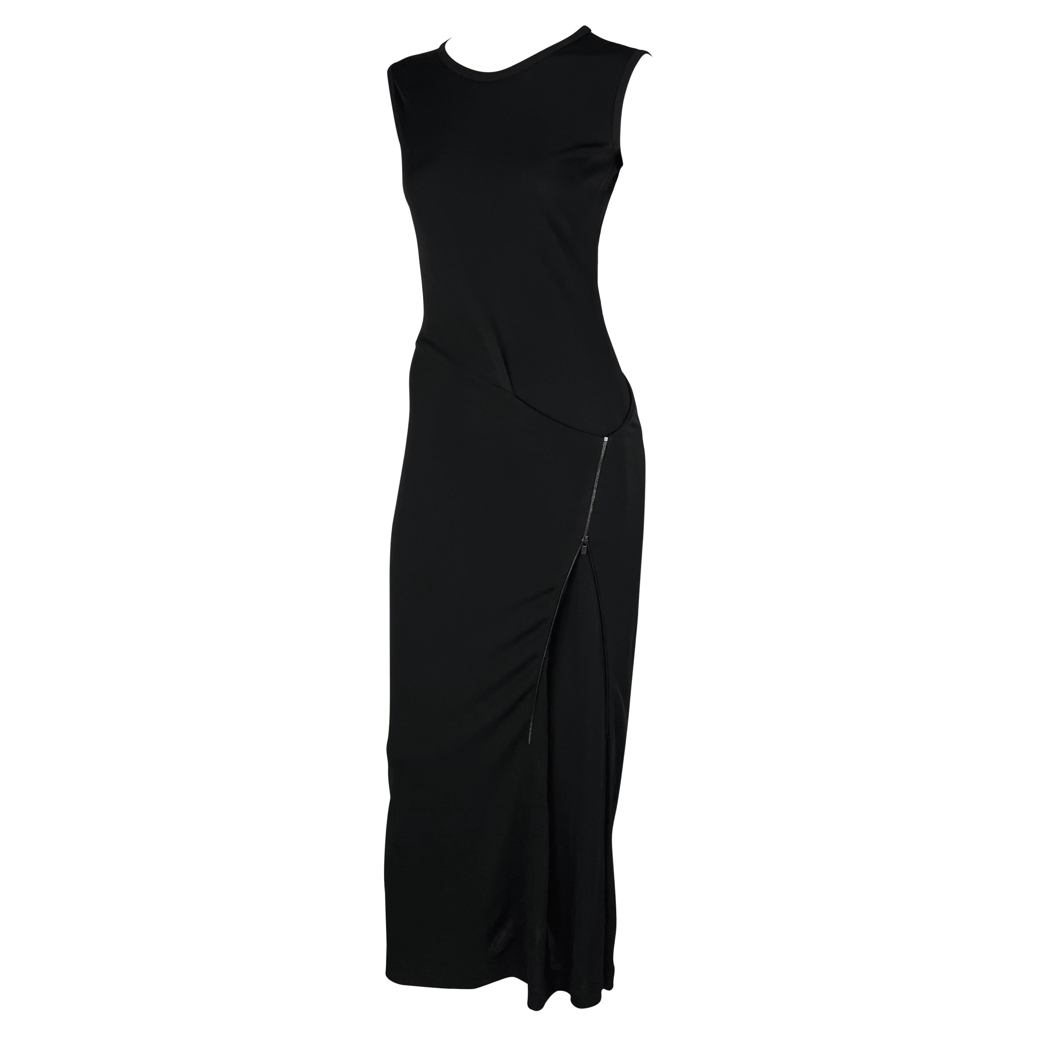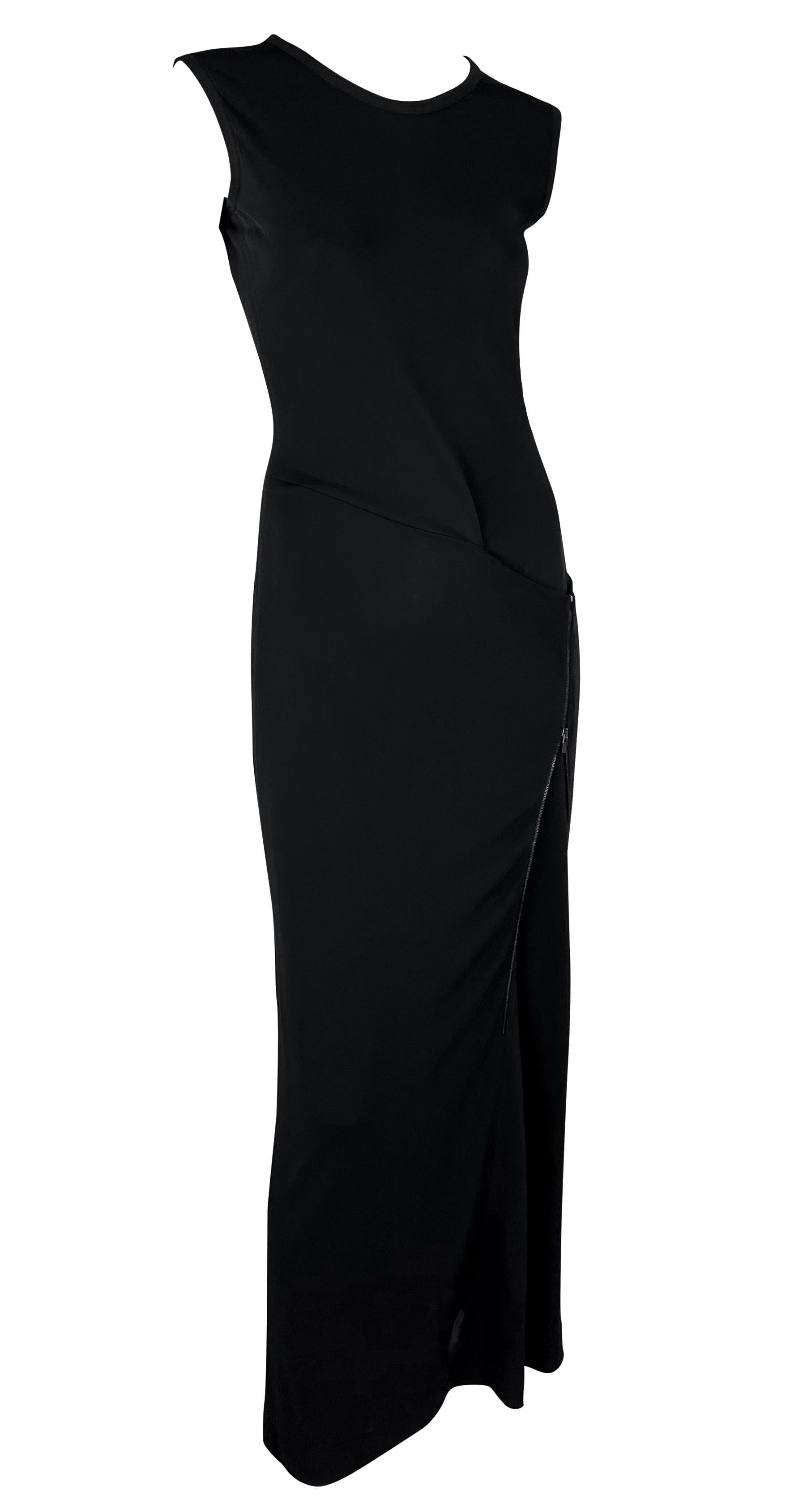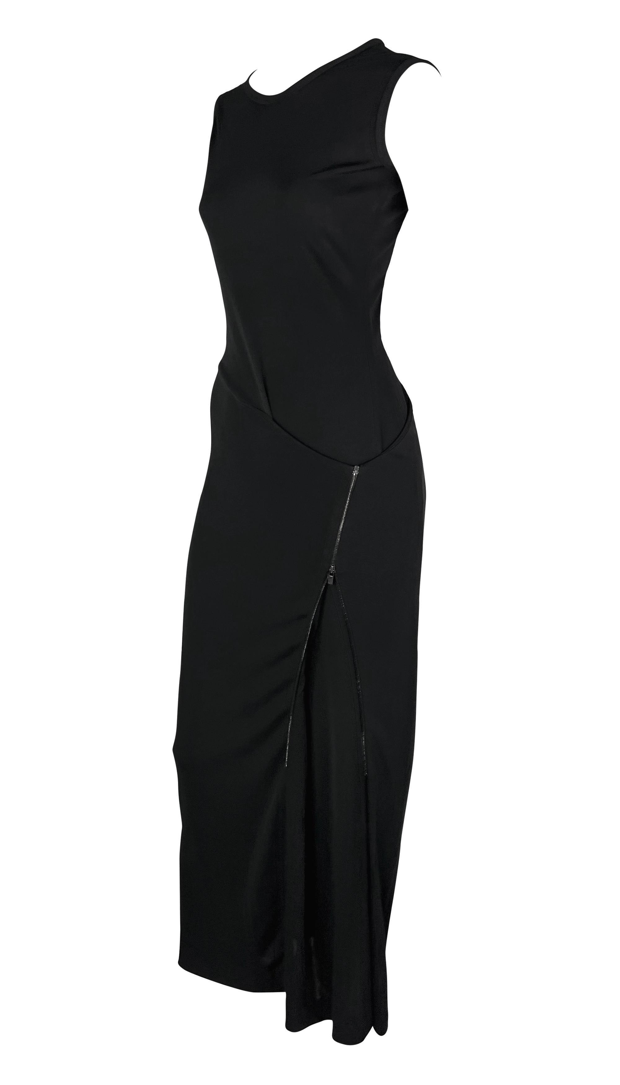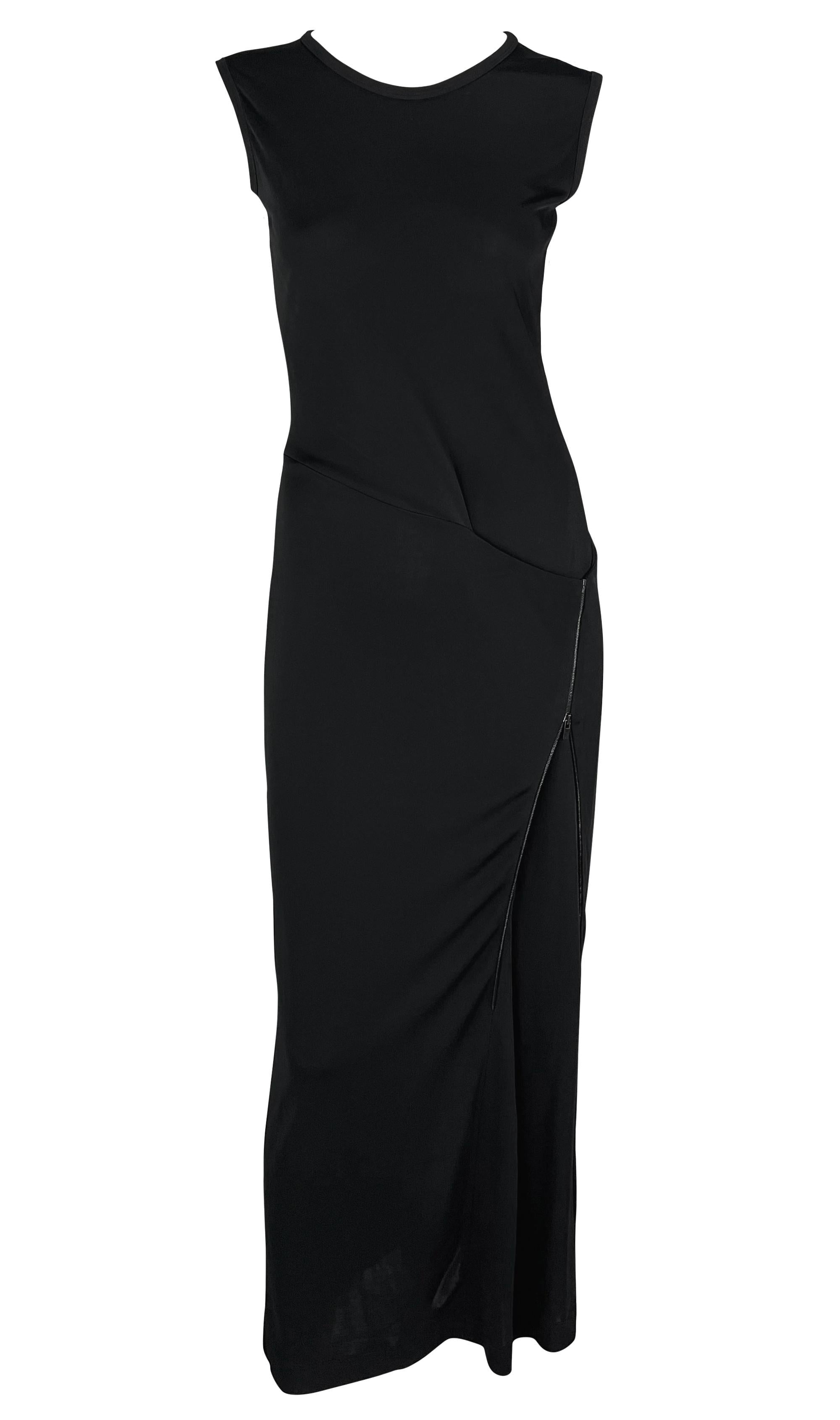 S/S 1999 Calvin Klein Runway Asymmetric Zip Bodycon Sleeveless Black Gown