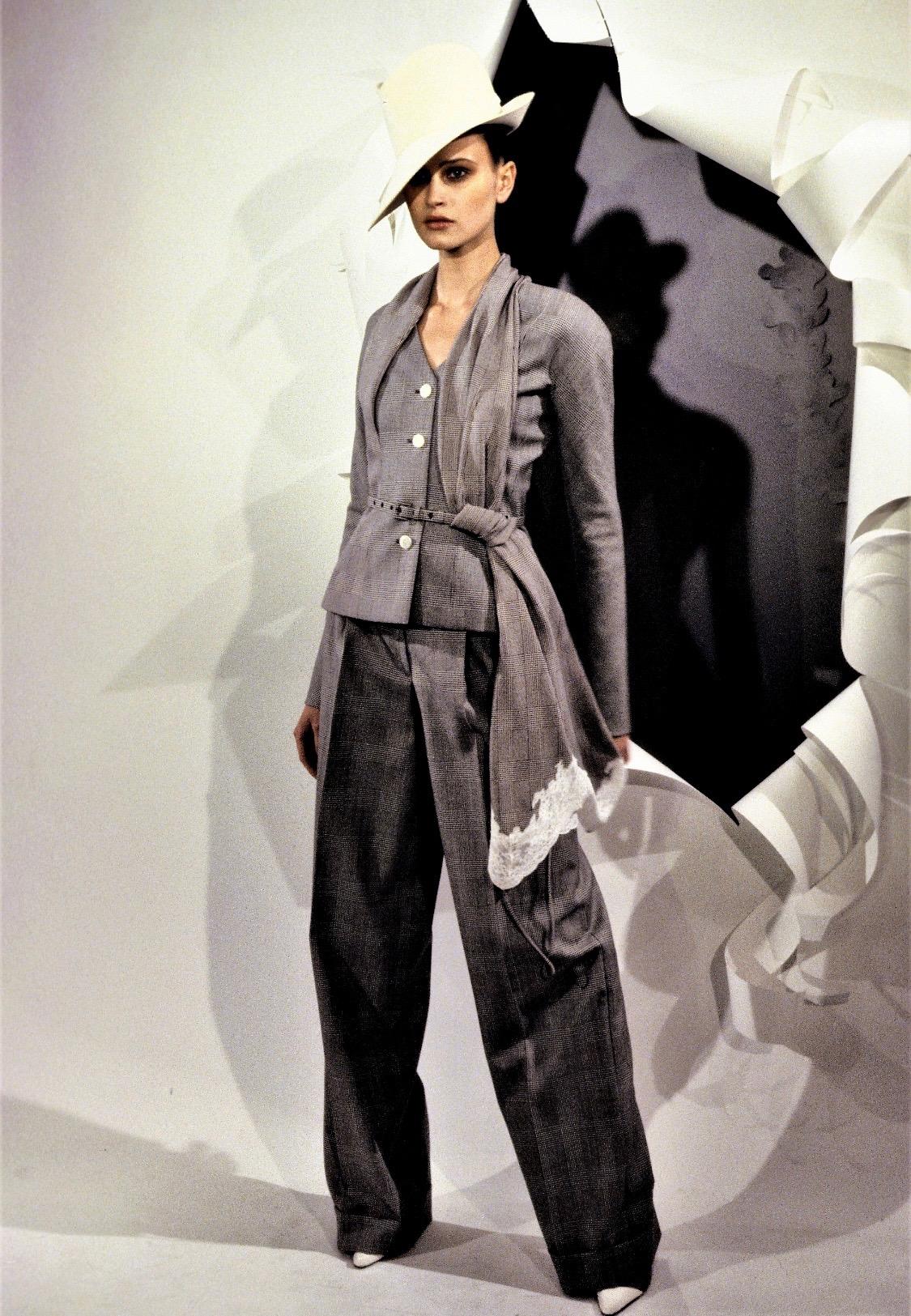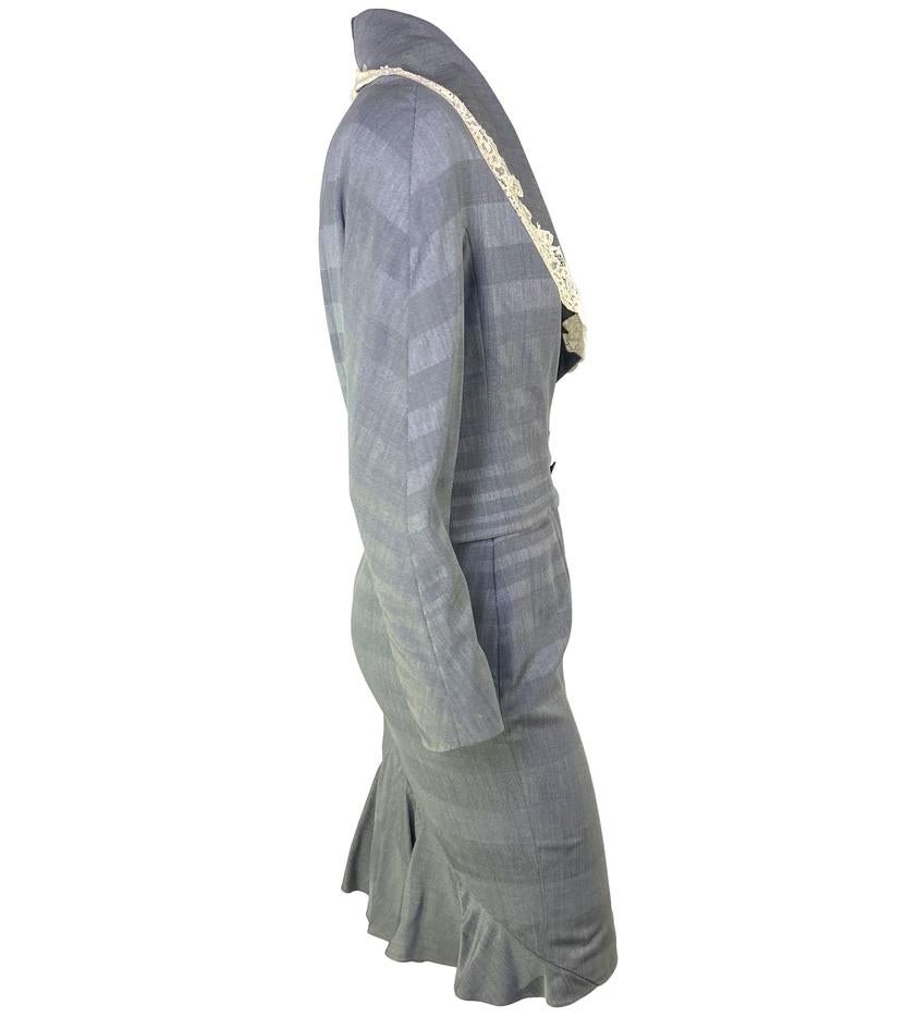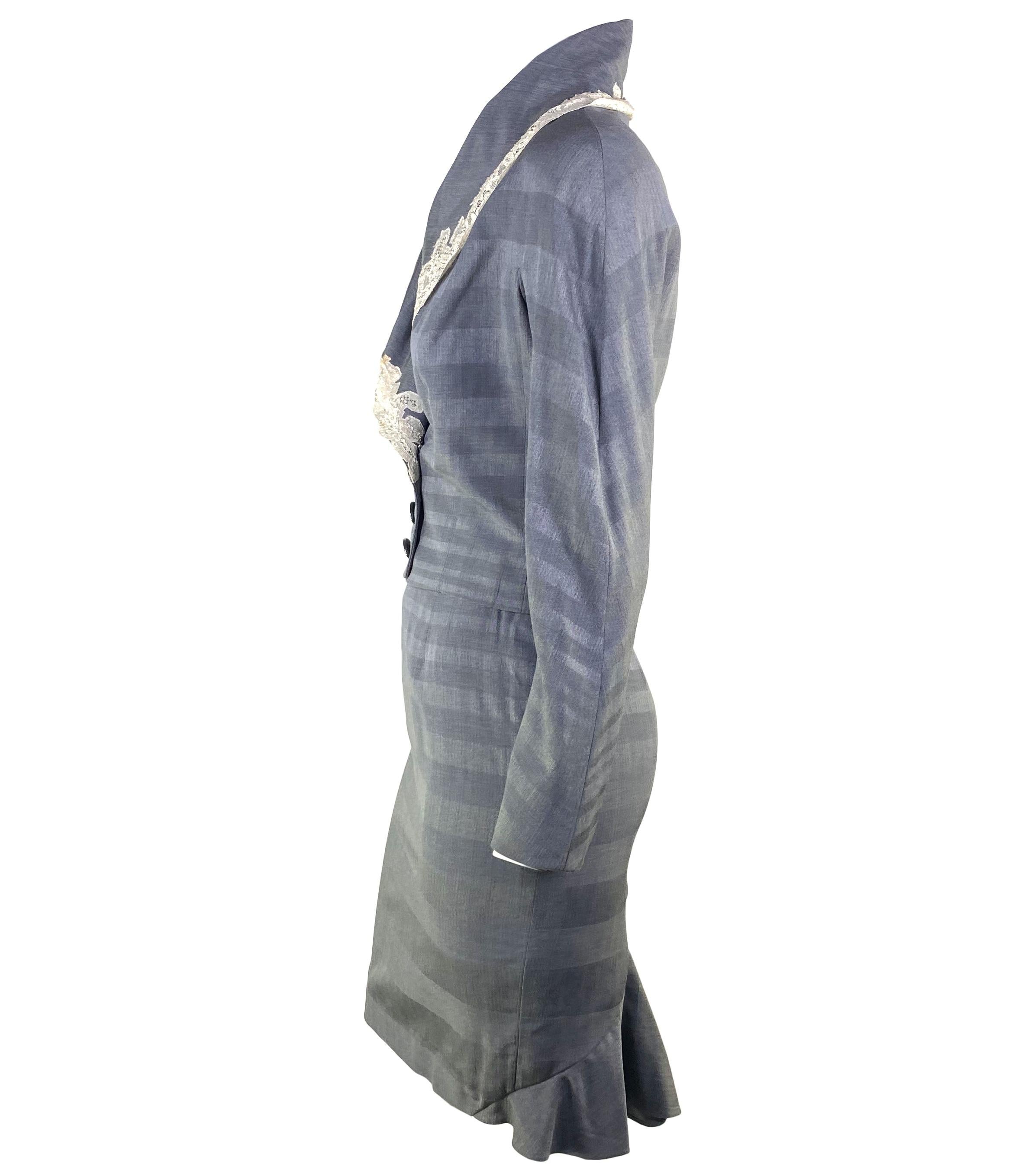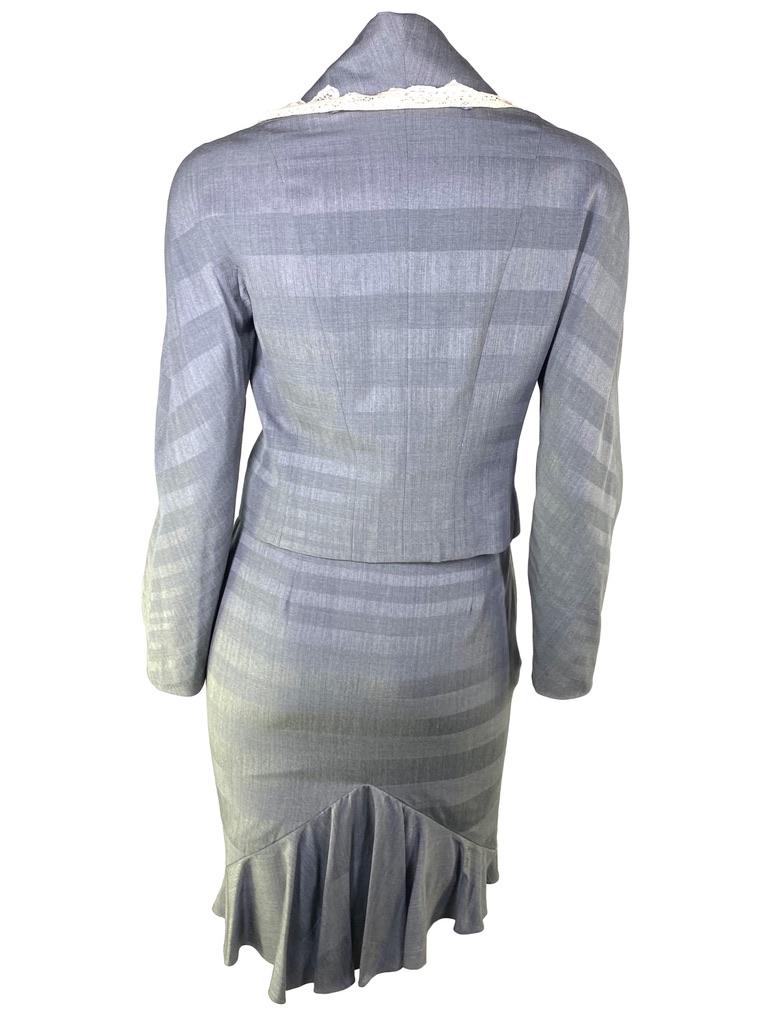 S/S 1999 Christian Dior by John Galliano Victorian Grey Lace Trimmed Skirt Suit