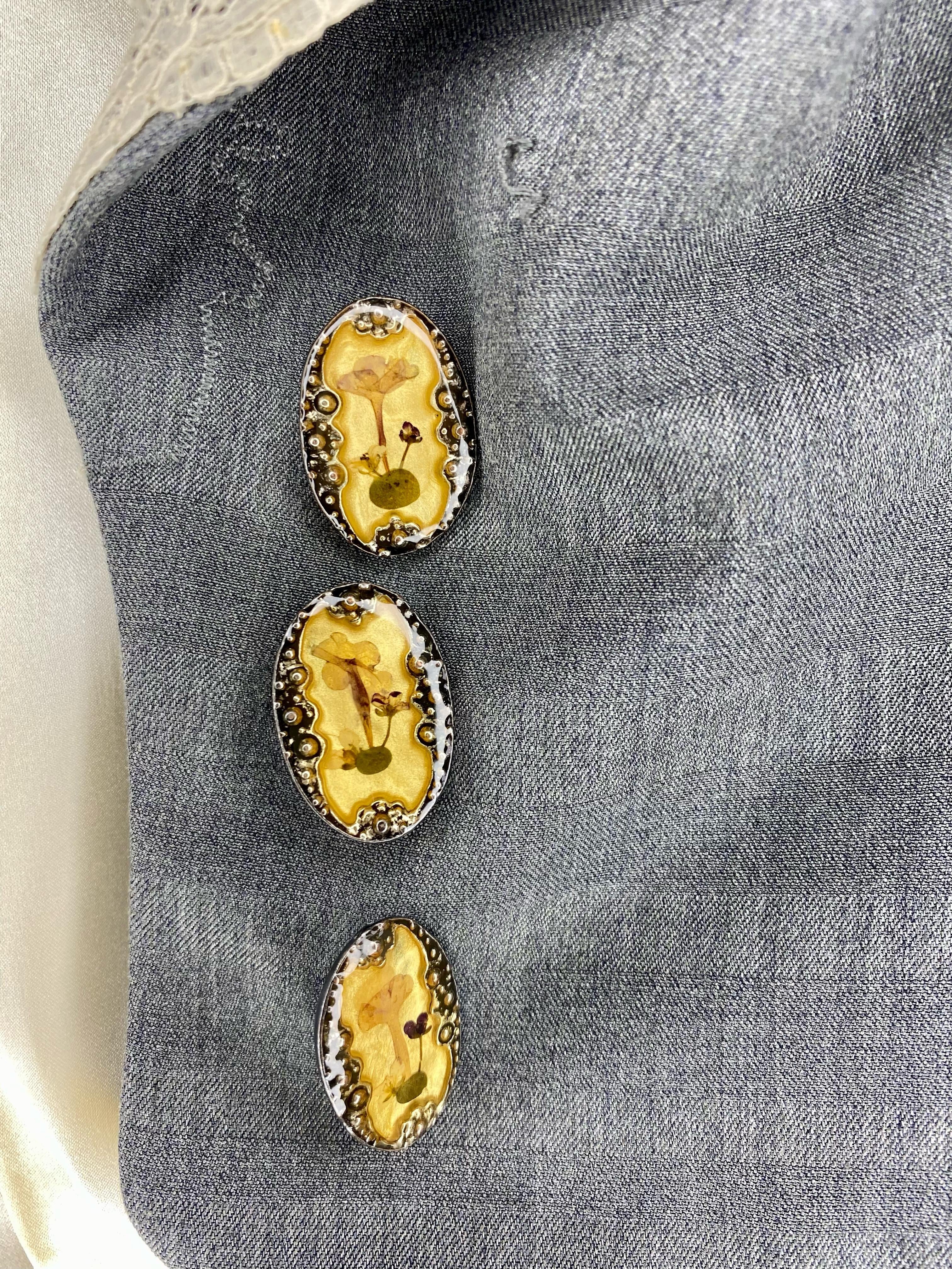 This lace-trimmed skirt suit from Christian Dior’s Spring/Summer 1999 collection was designed by John Galliano. Grey fabric paired with lace appliqué details echoed looks from the season’s Haute Couture runway. The jacket fastens with three oversized buttons, each encasing pressed botanical samples in resin, adding a Victorian-inspired touch. Combined with delicate lace trim, the design juxtaposes historical references with Galliano’s distinctly modern vision for Dior.