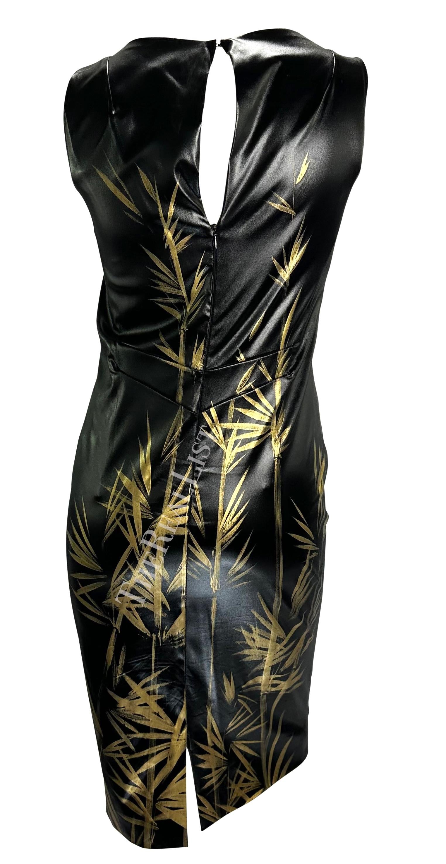 S/S 1999 Dolce & Gabbana Black 'Wet Look' Hand-Painted Gold Bamboo Bodycon Dress