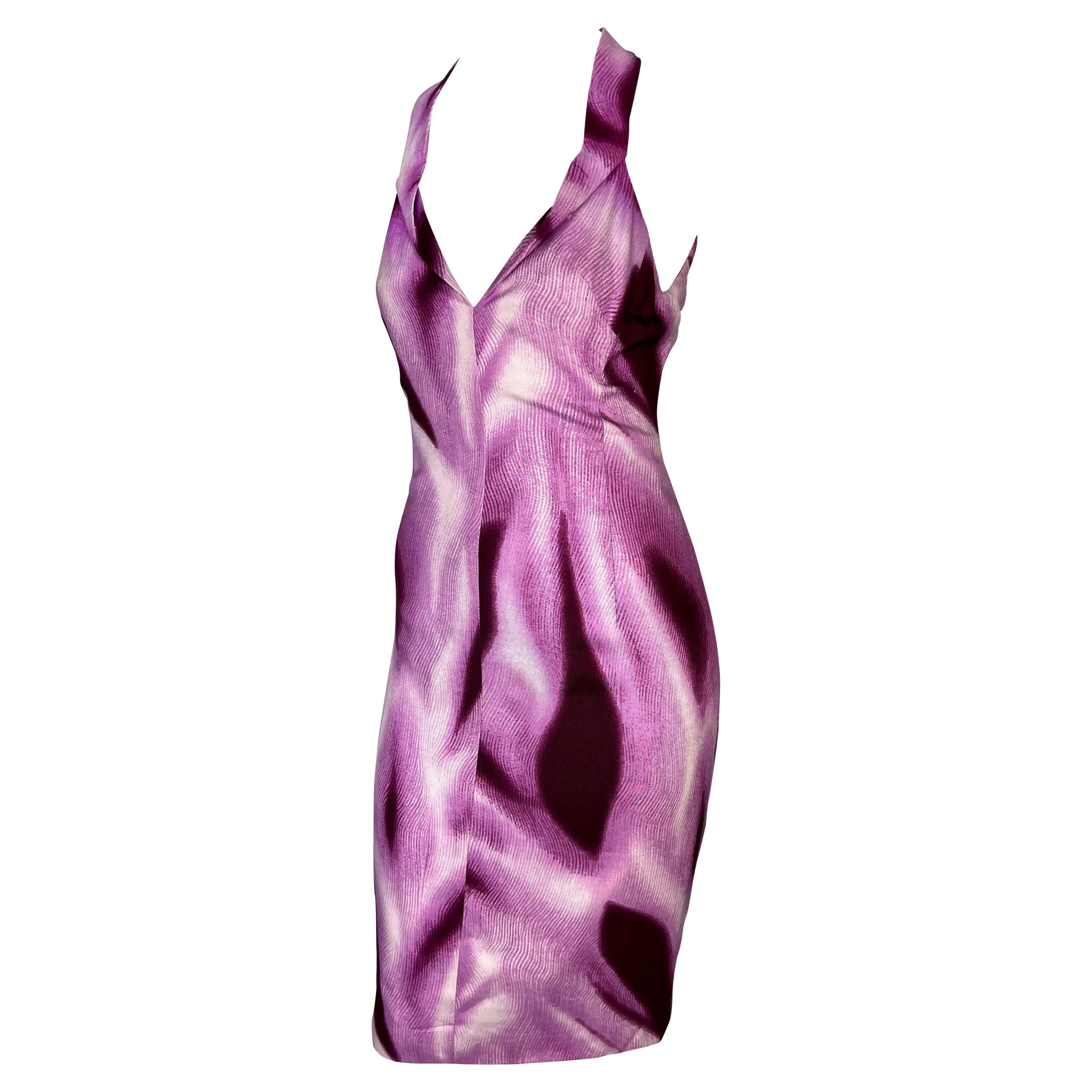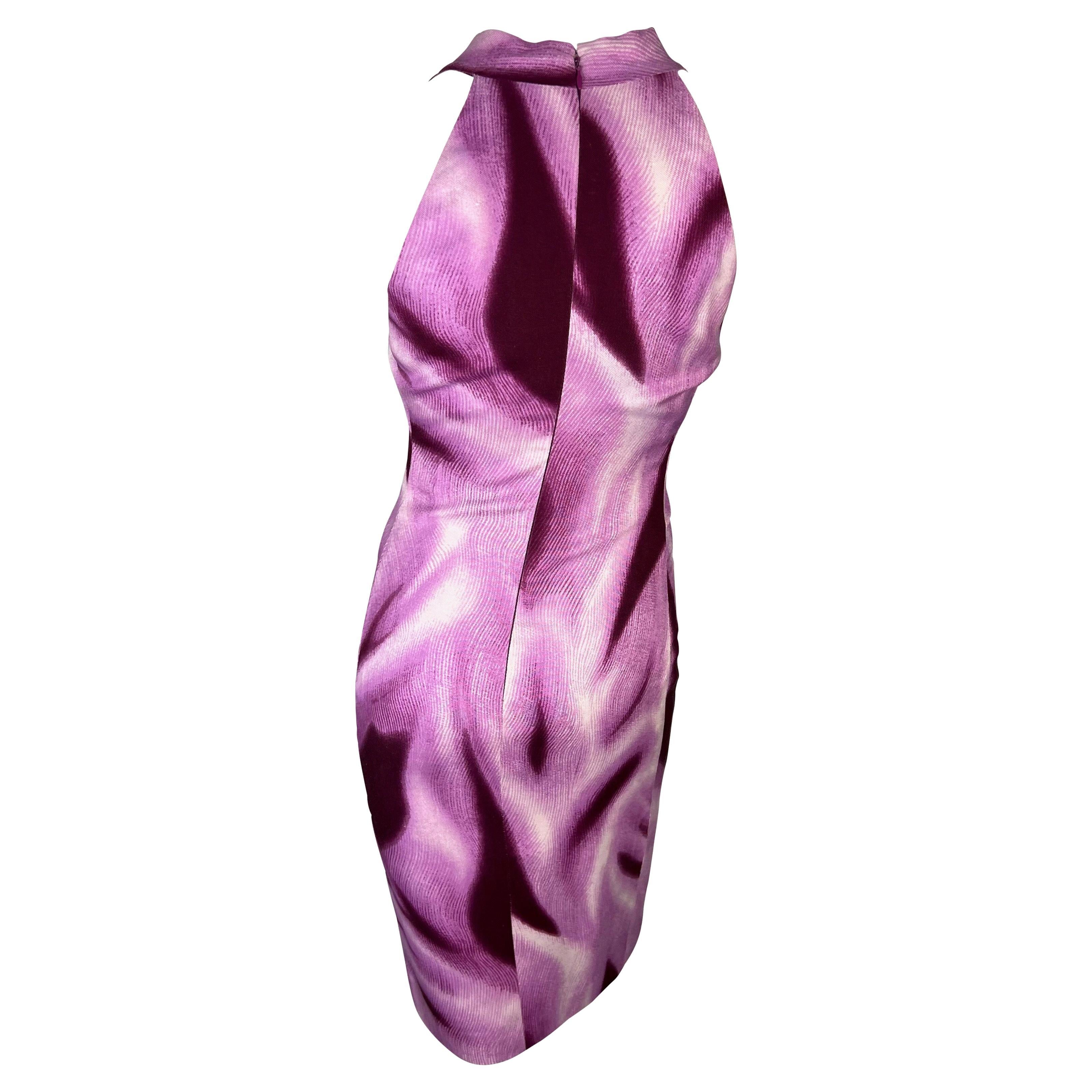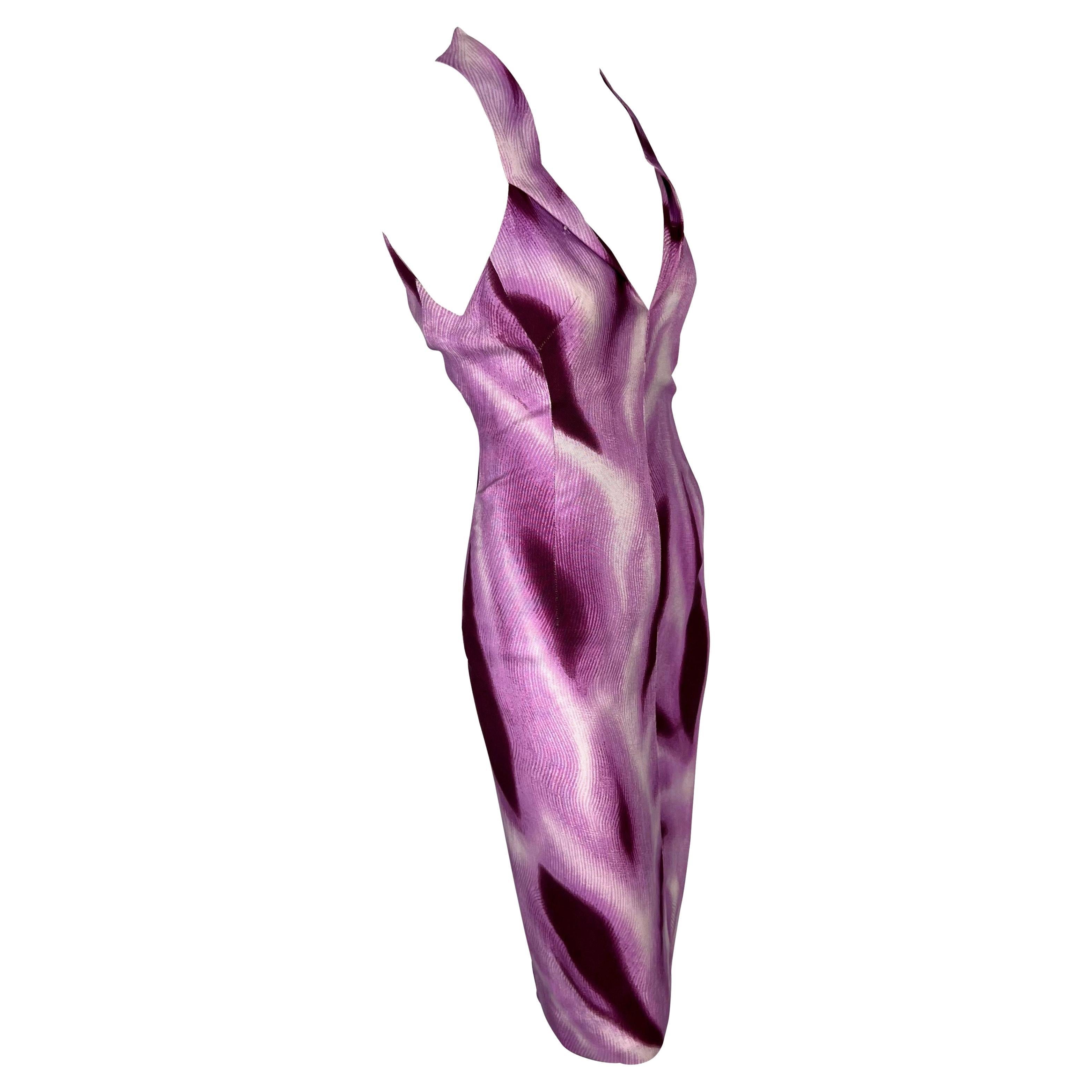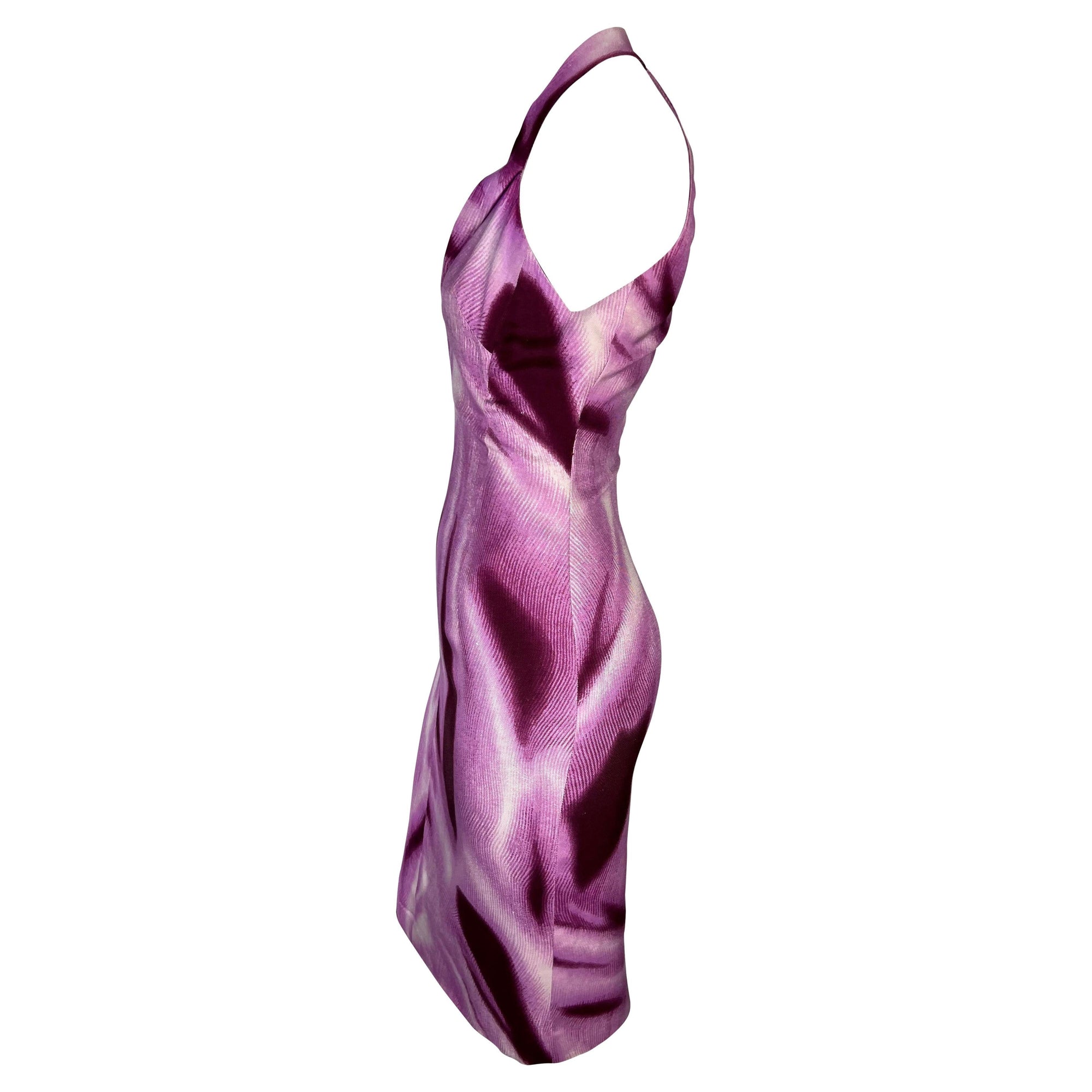 S/S 1999 Gianni Versace by Donatella Runway Abstract Print Purple Silk Dress