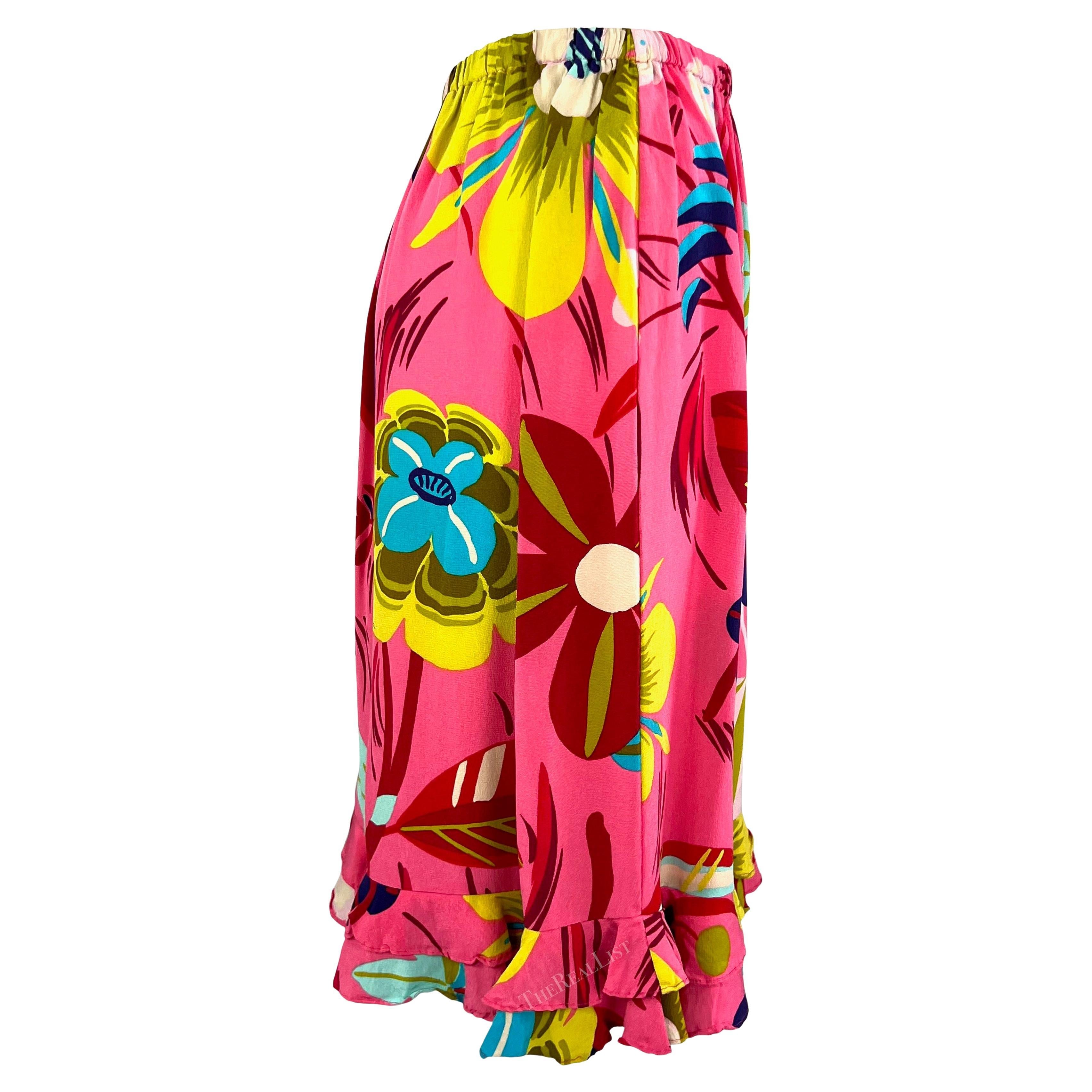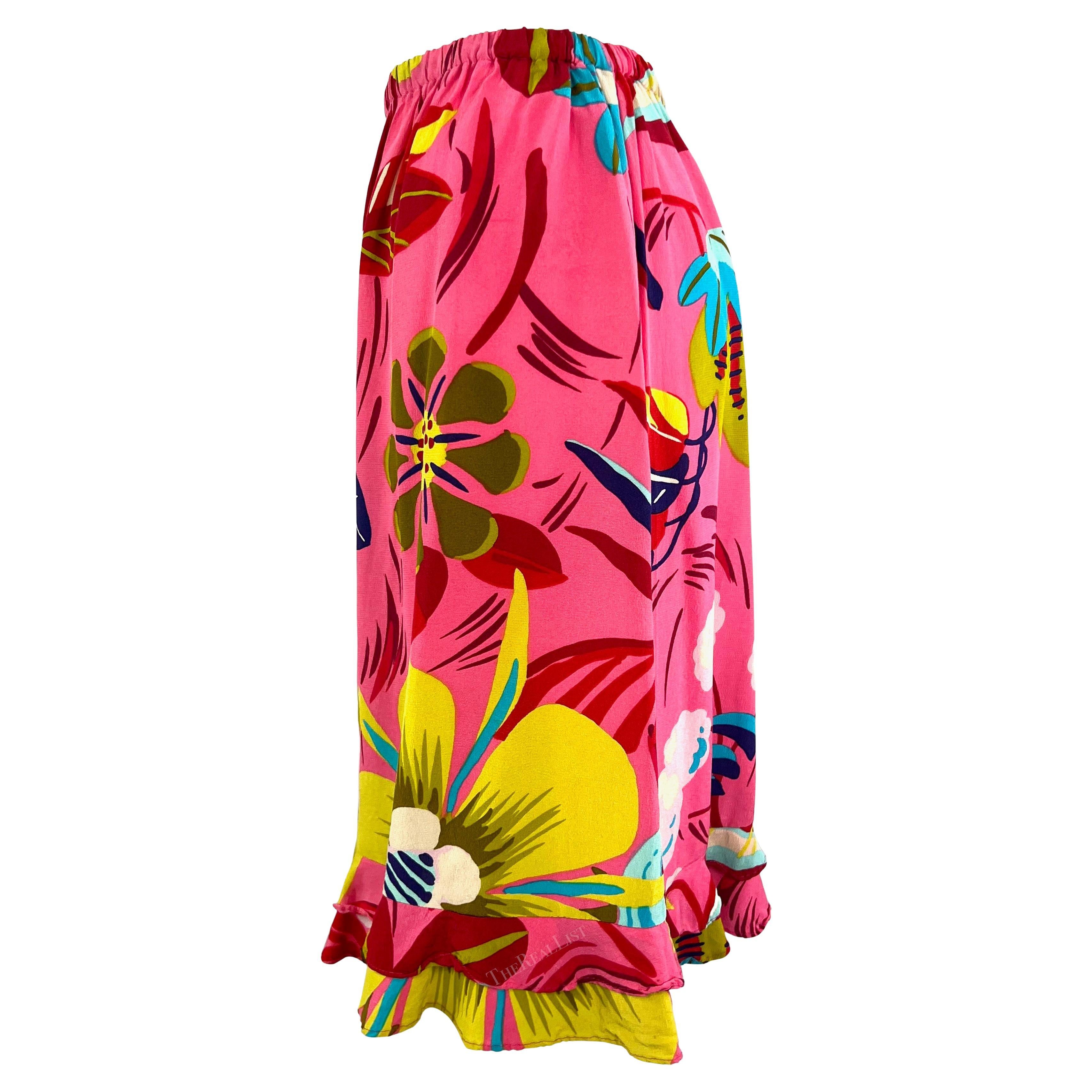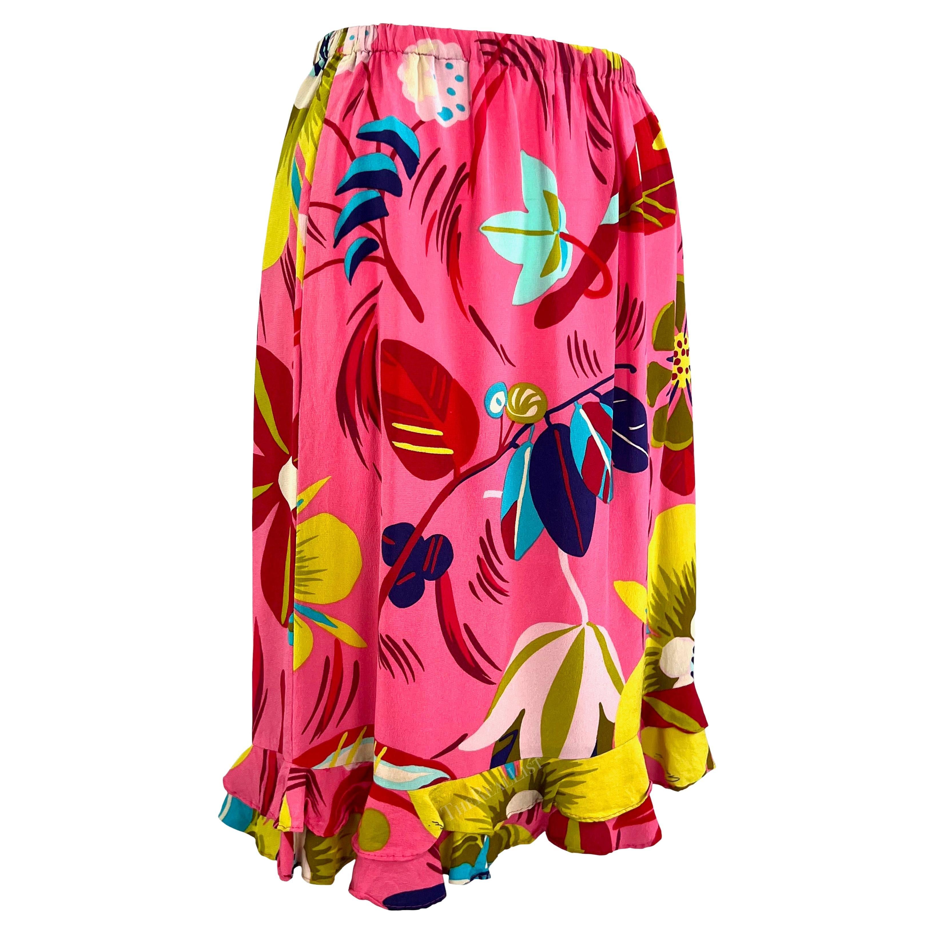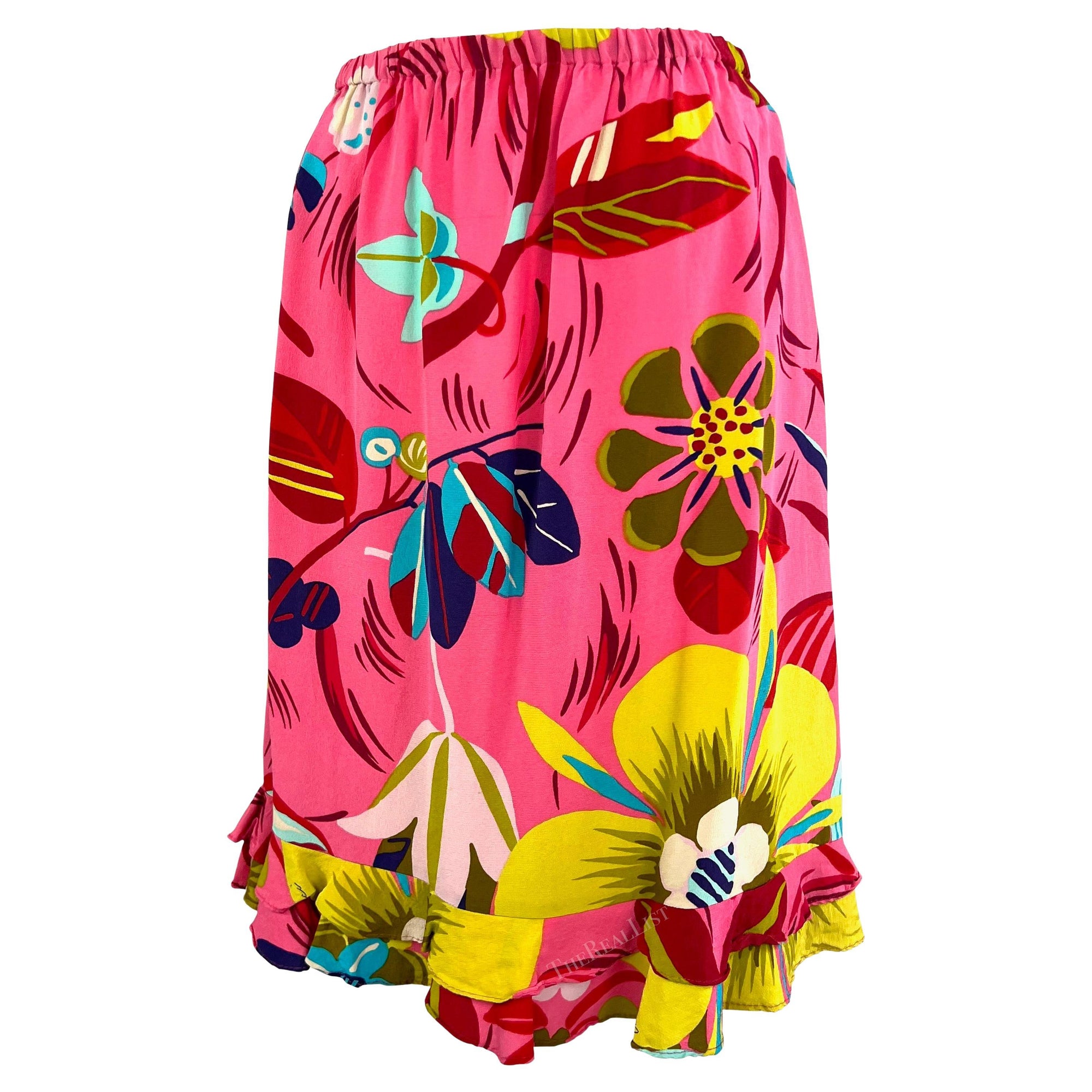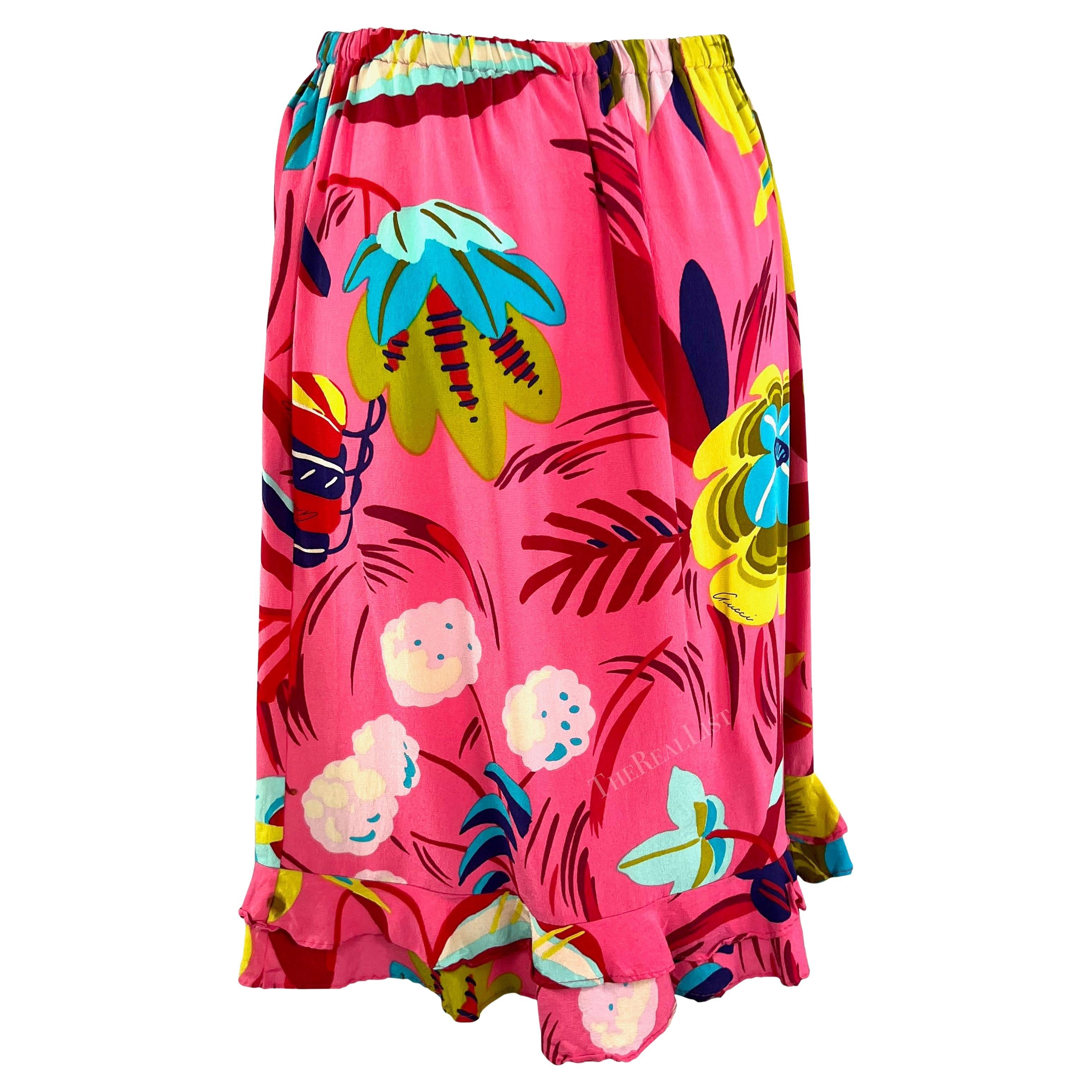 S/S 1999 Gucci by Tom Ford Vegas Hippy Runway Pink Silk Acid Floral Ruffle Skirt