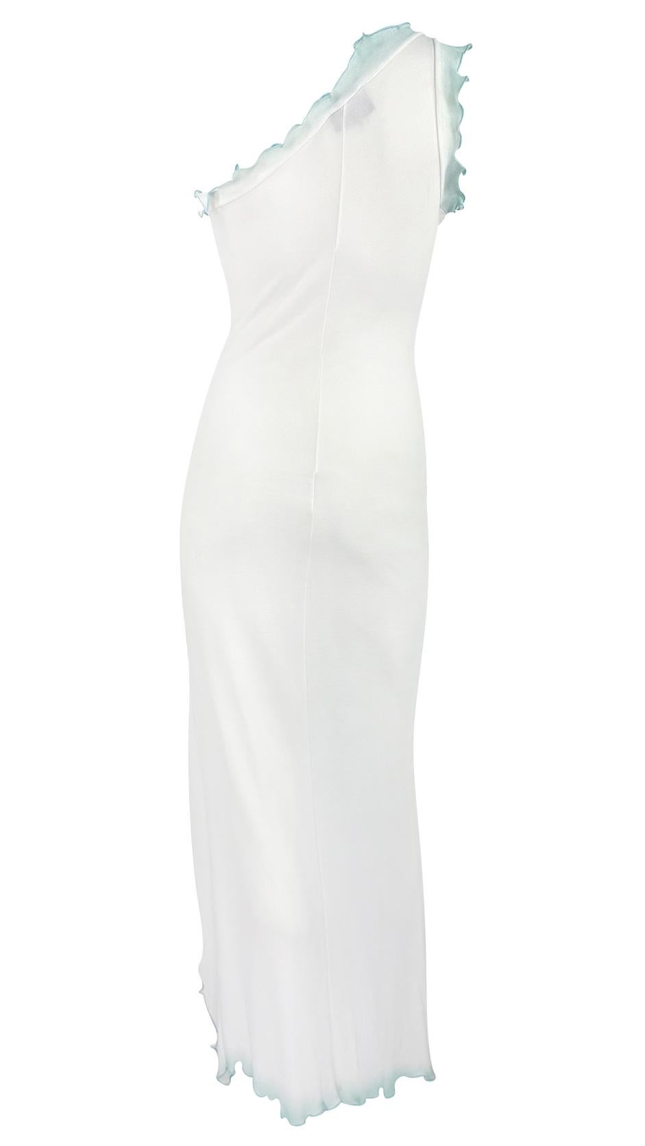 S/S 2000 Christian Lacroix High-Slit White Asymmetric Maxi Ruffle Trim Dress