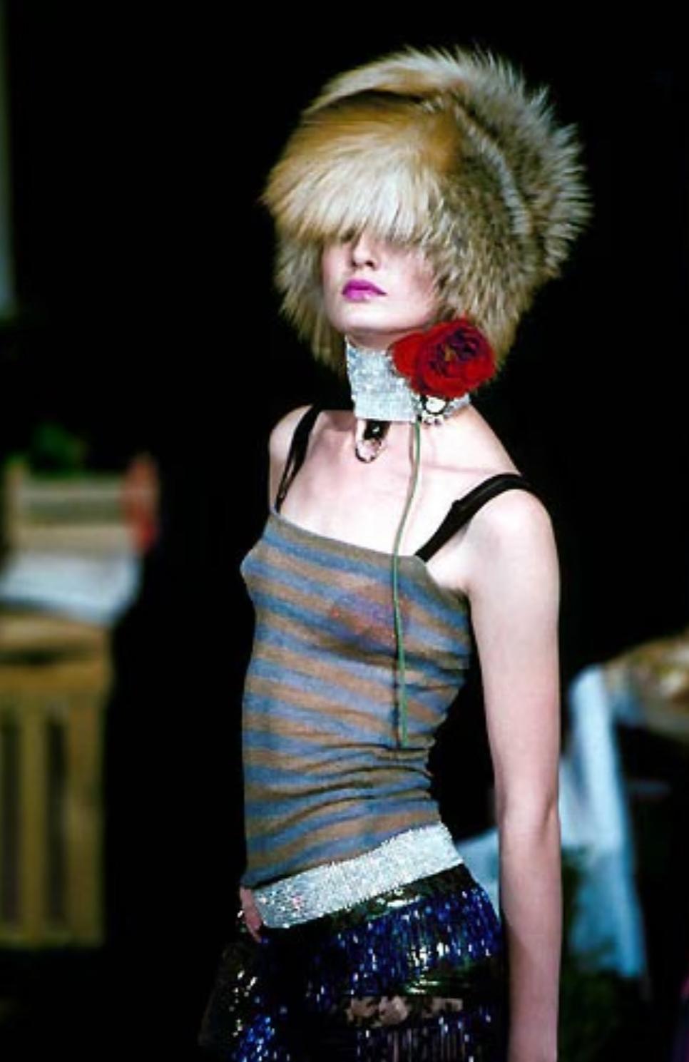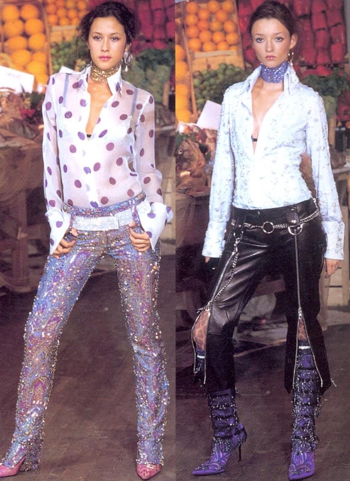 This rhinestone-covered Dolce & Gabbana low belt from the Spring/Summer 2000 collection was a standout in numerous runway looks and prominently featured in the season’s ad campaign. Adorned with dazzling clear rhinestones, this statement piece sits at the hips and is finished with a convenient Velcro closure.