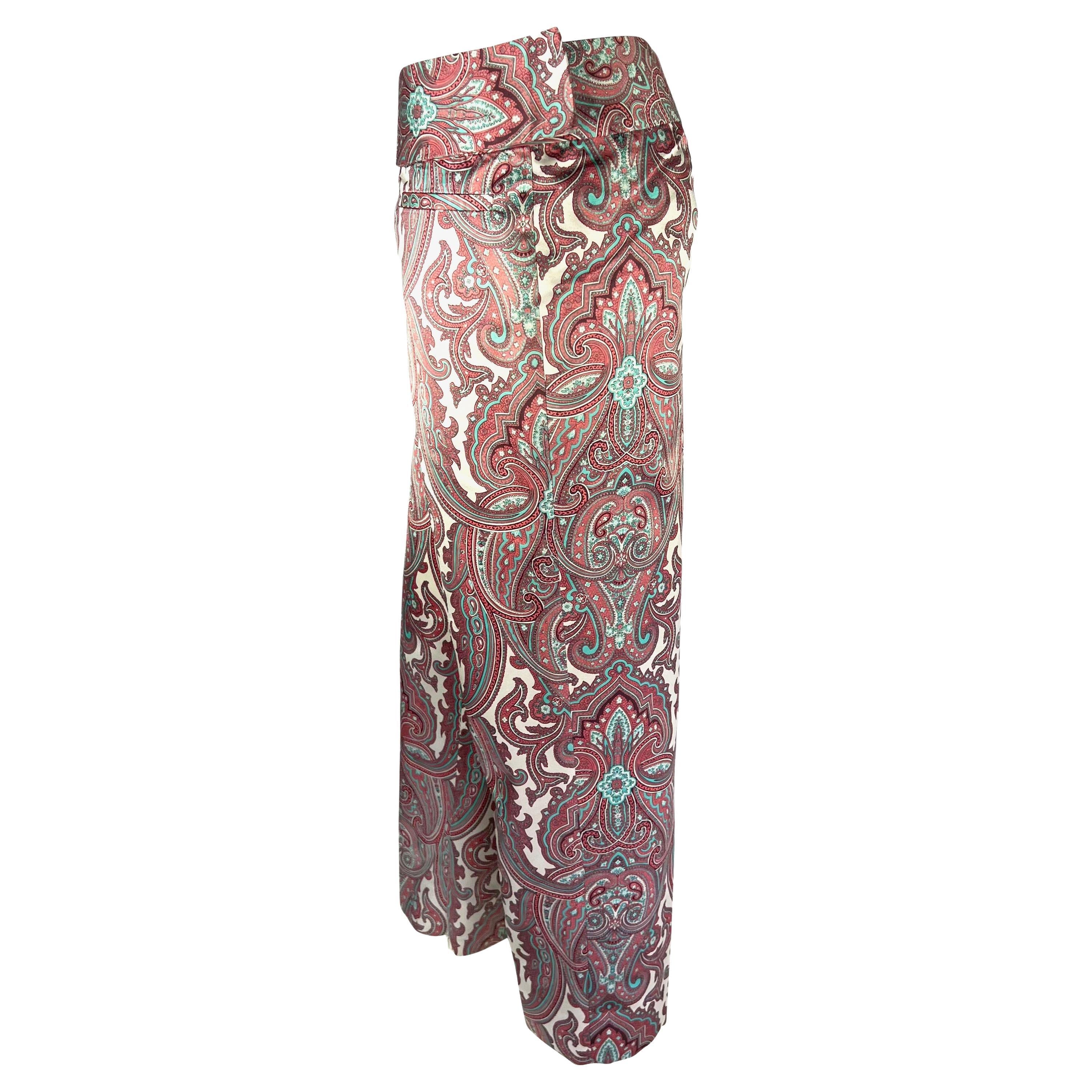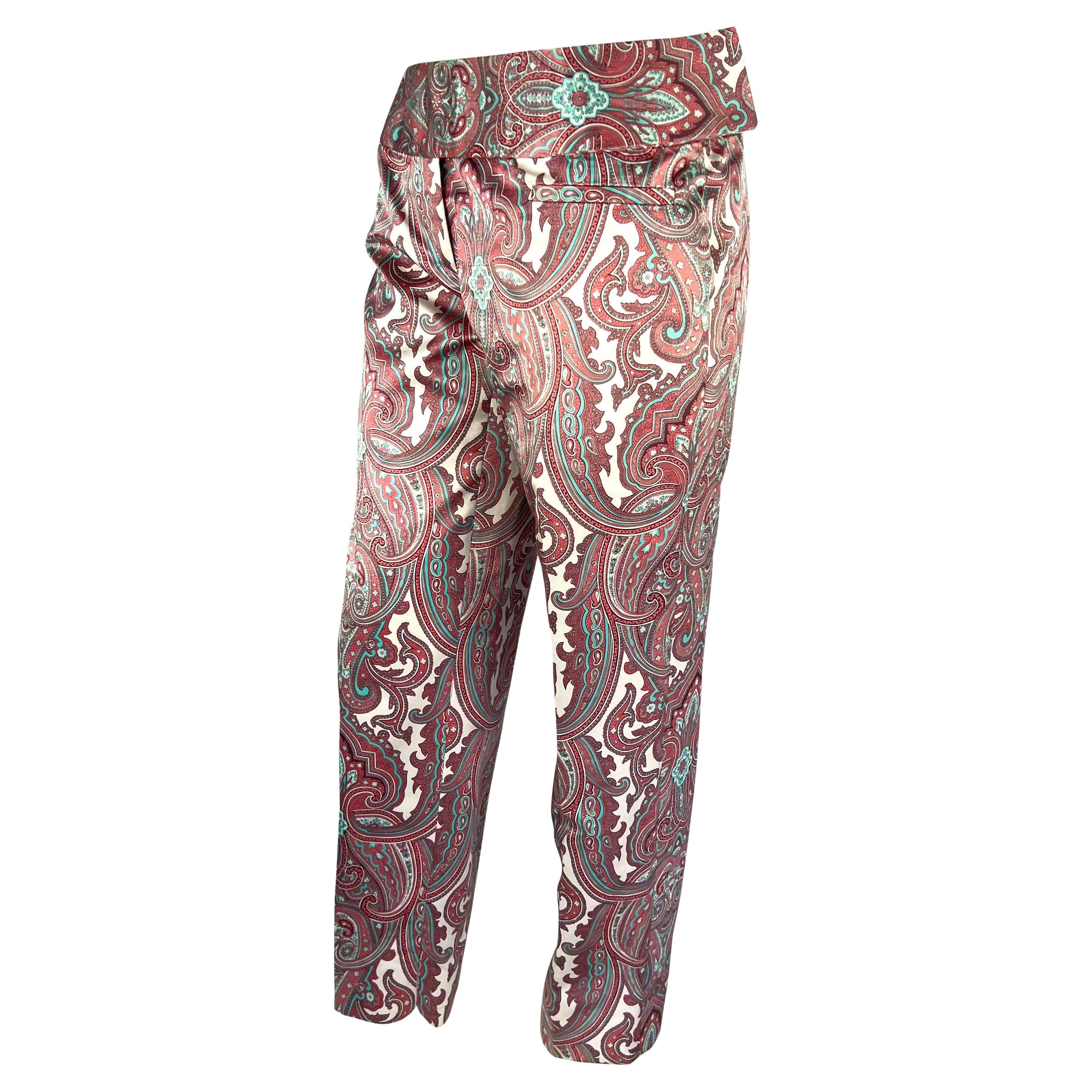 S/S 2000 Dolce & Gabbana White Pink Satin Paisley Print Tapered Cropped Pants