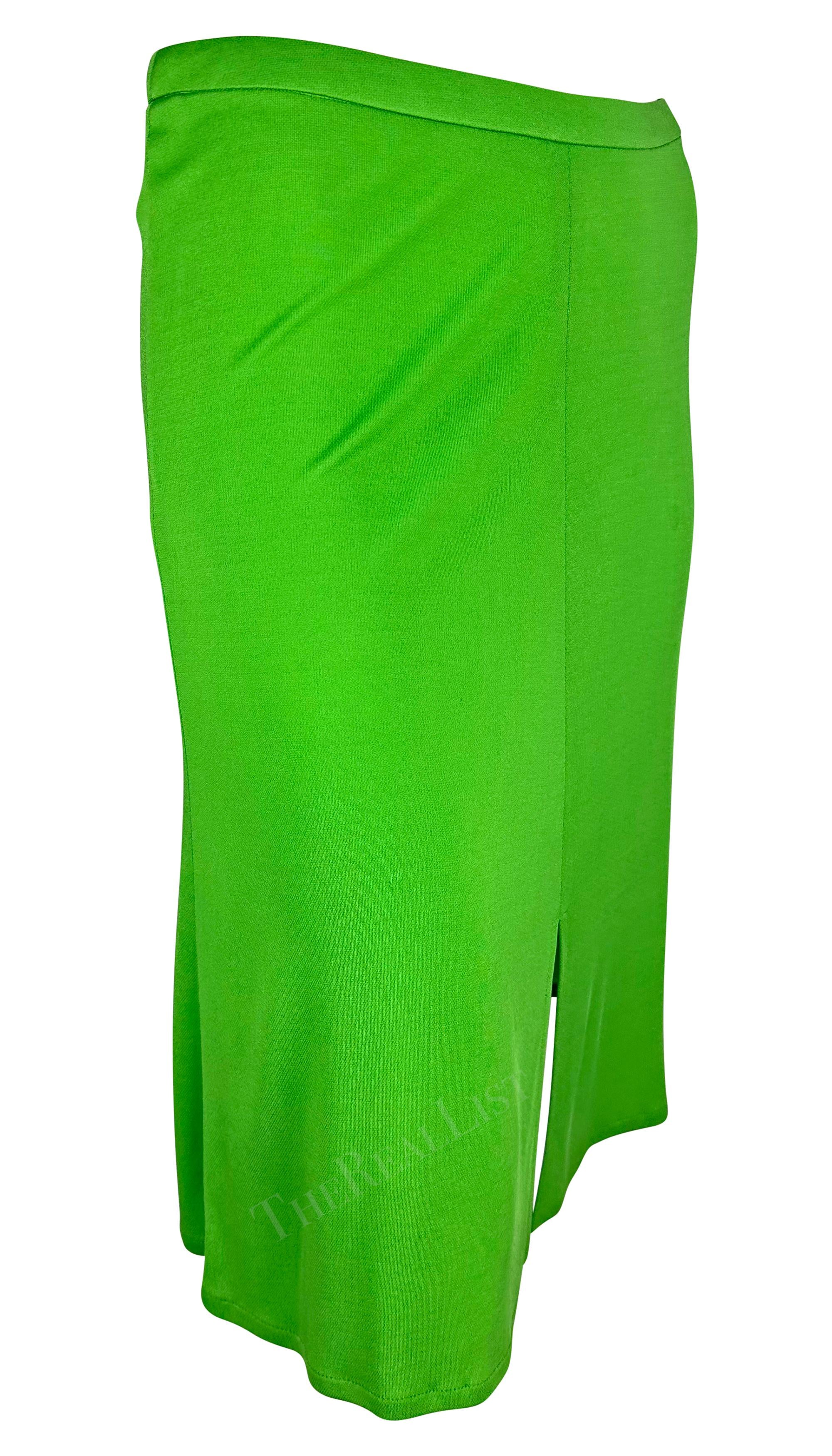 S/S 2000 Gianni Versace by Donatella Bright Green Viscose Slit Skirt