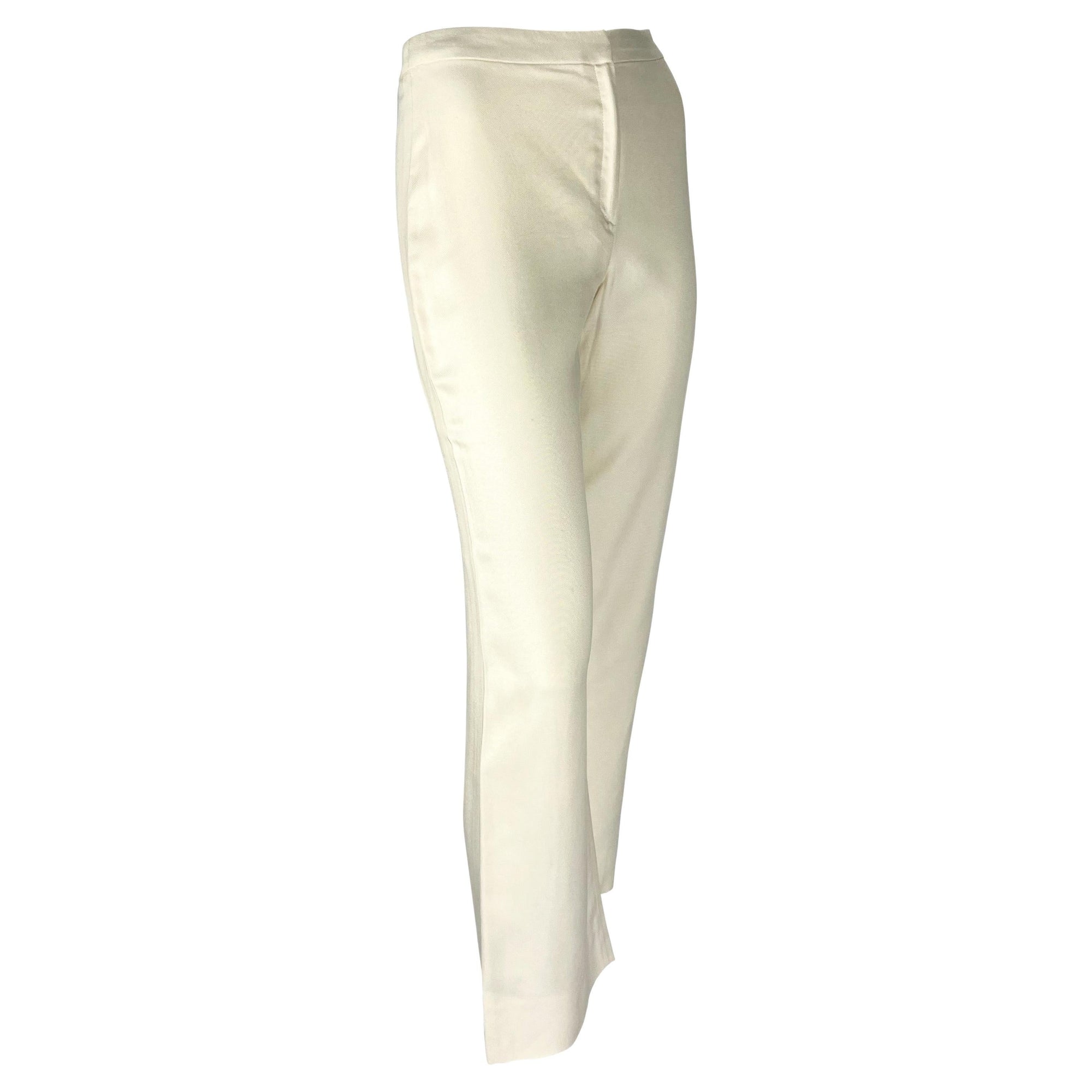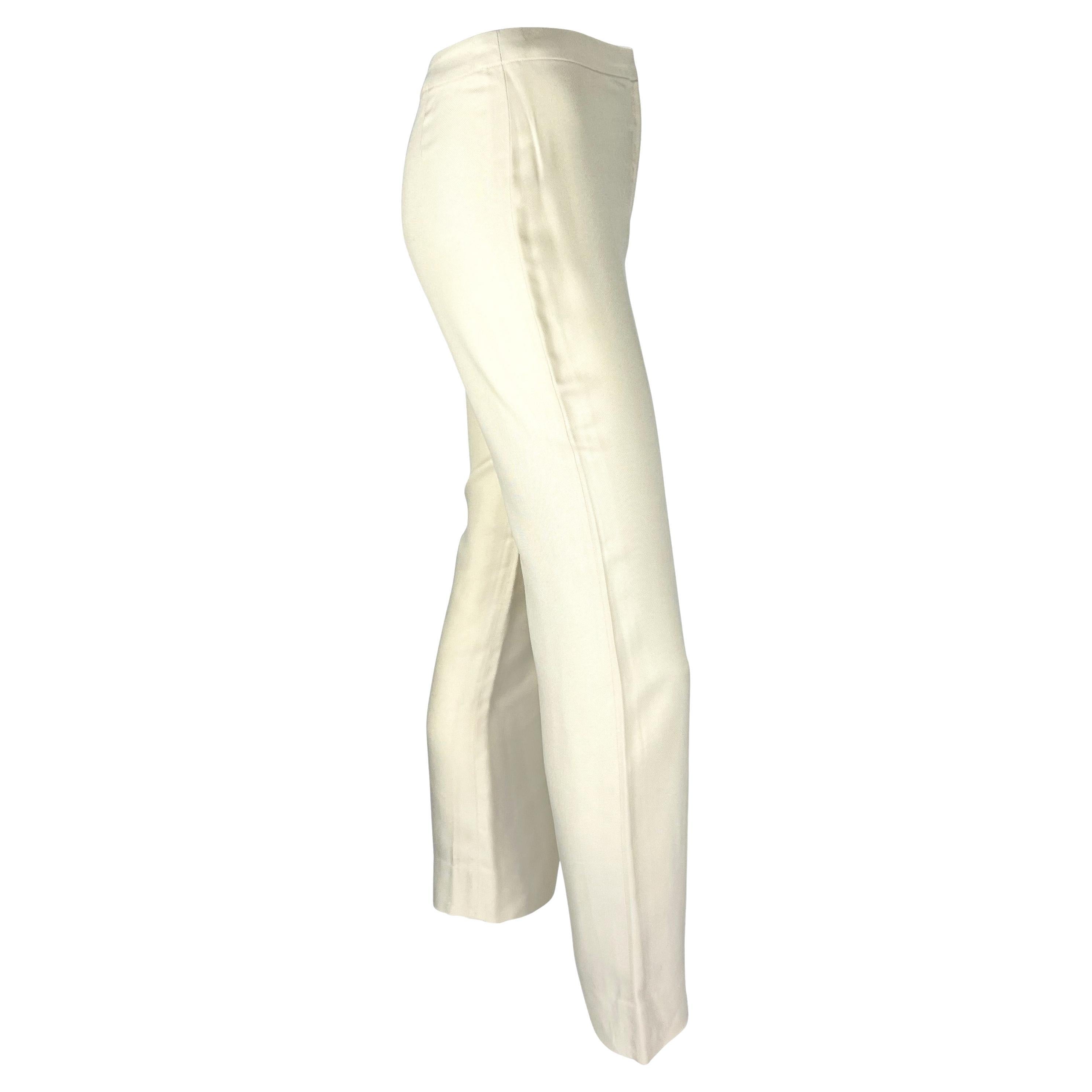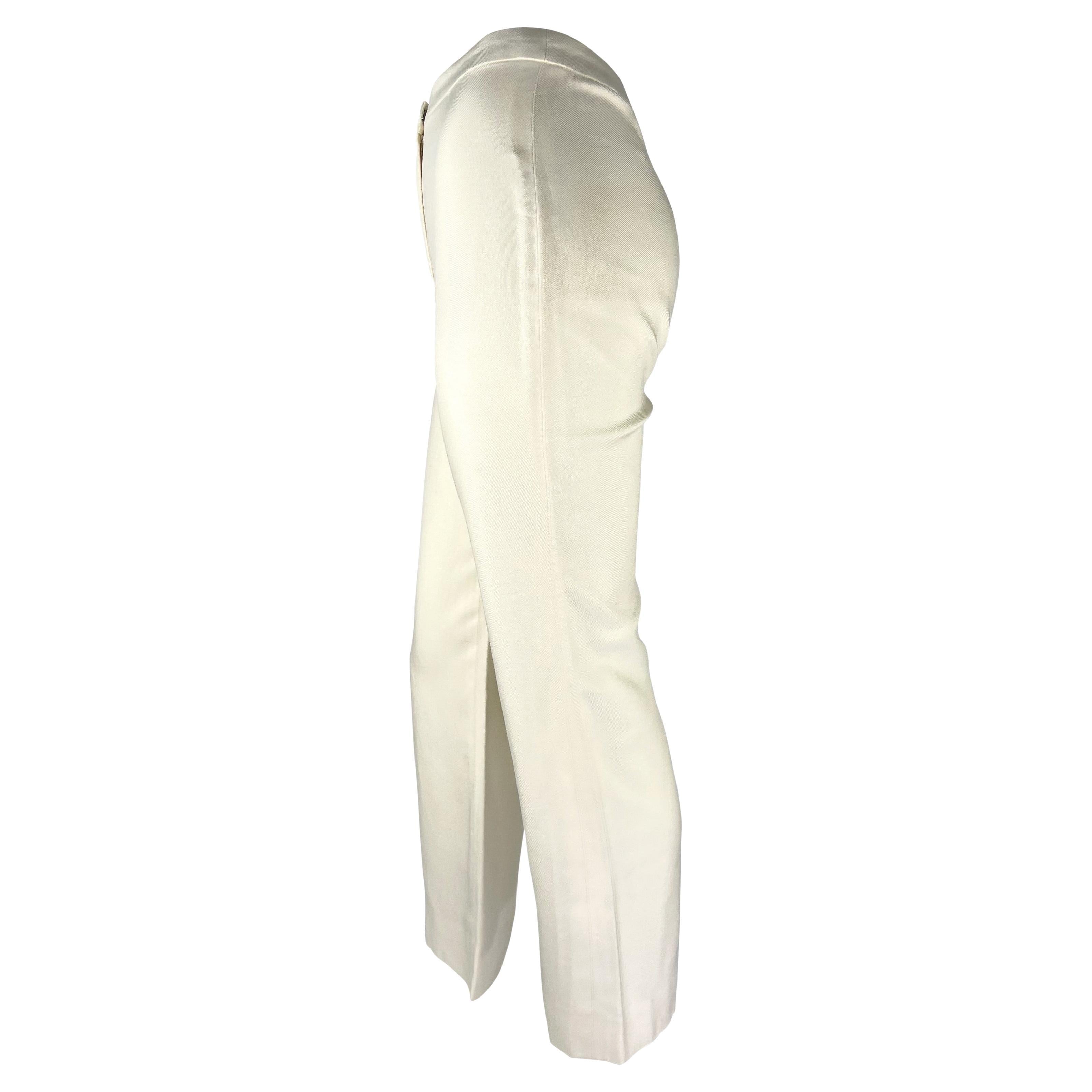Presenting a pair of off-white Gianni Versace Couture pants, designed by Donatella Versace for the Spring/Summer 2000 collection. These classic pants debuted on the runway as part of look 25 modeled by Maggie Rizer and were also featured in the season's ad campaign photographed by Steven Miesel, modeled by Amber Valletta