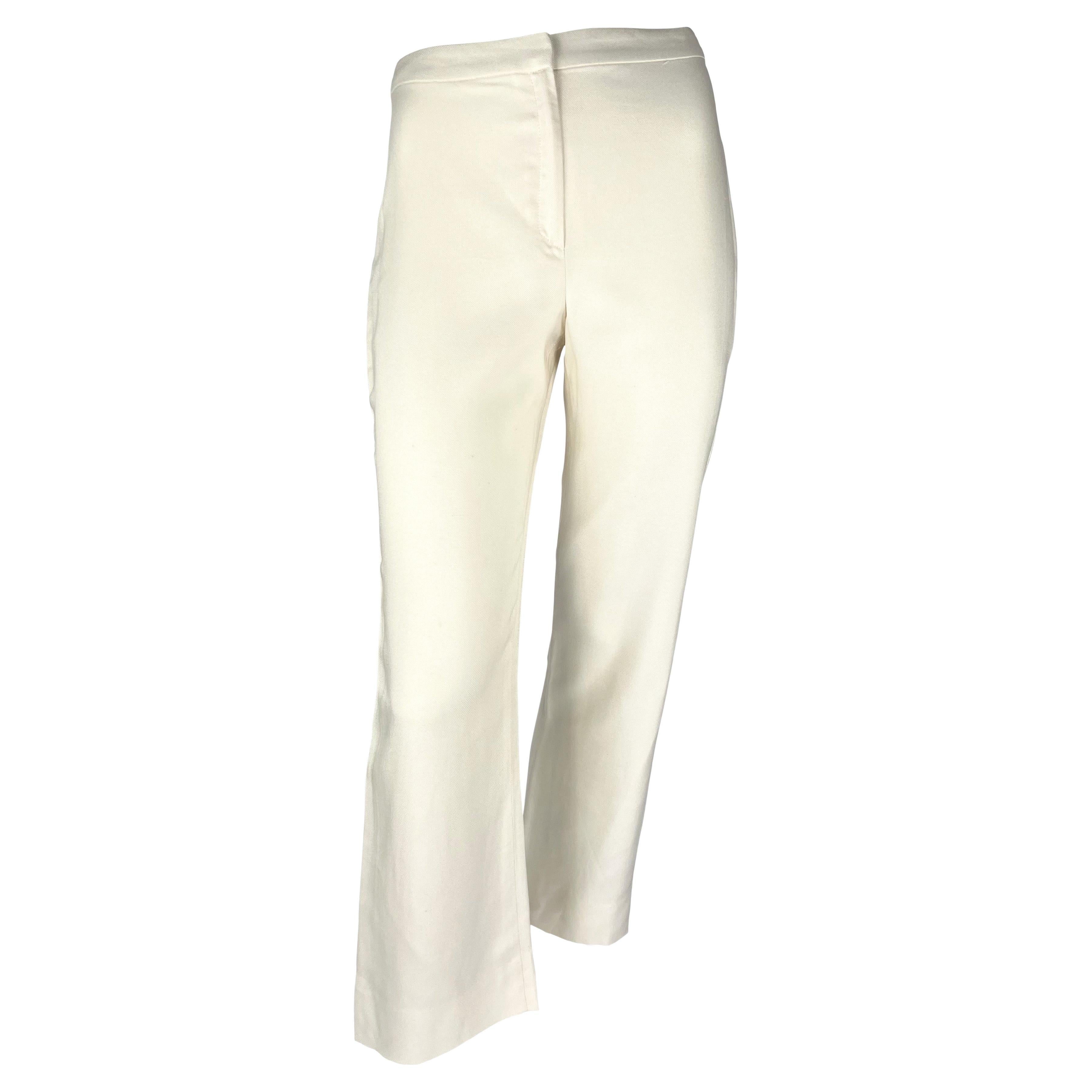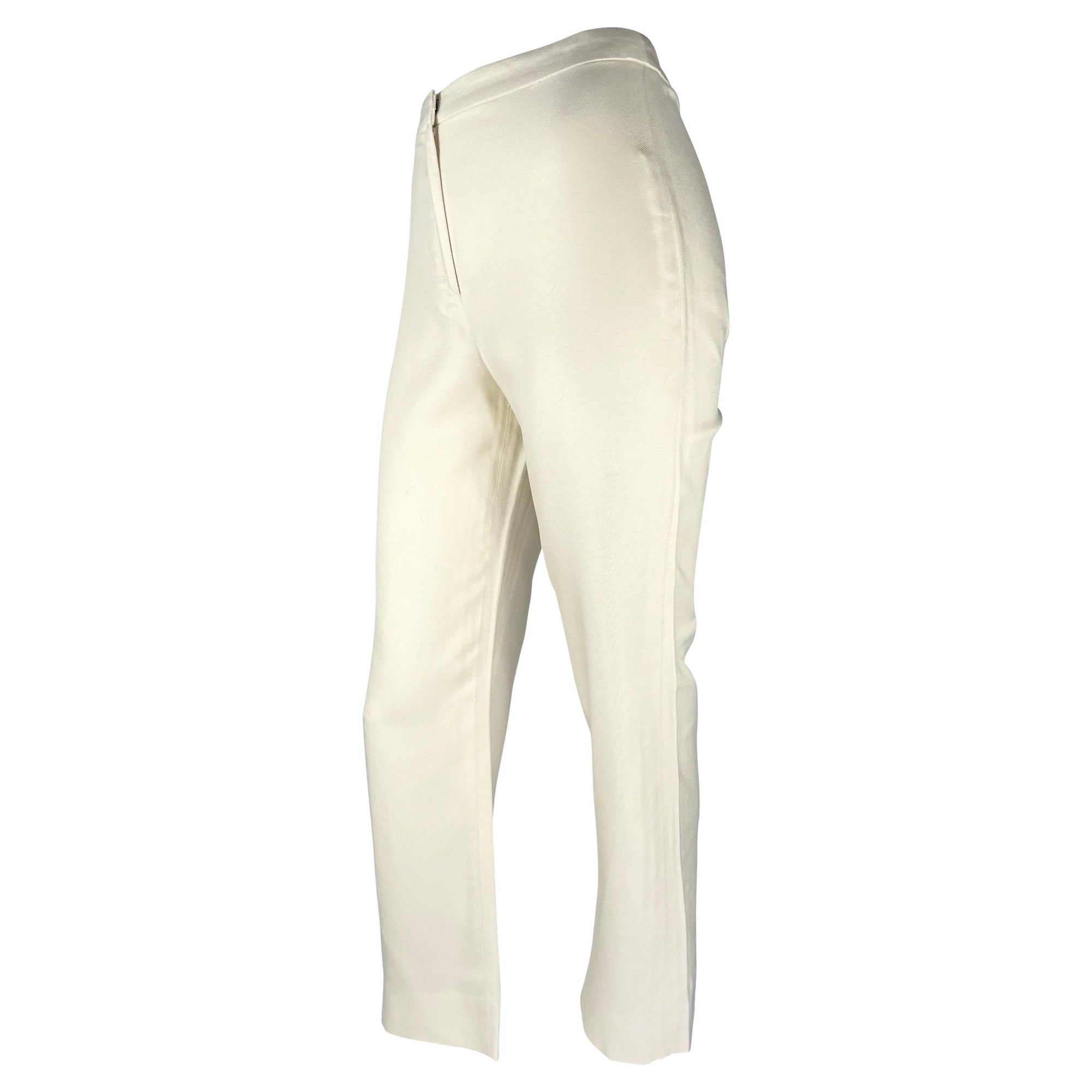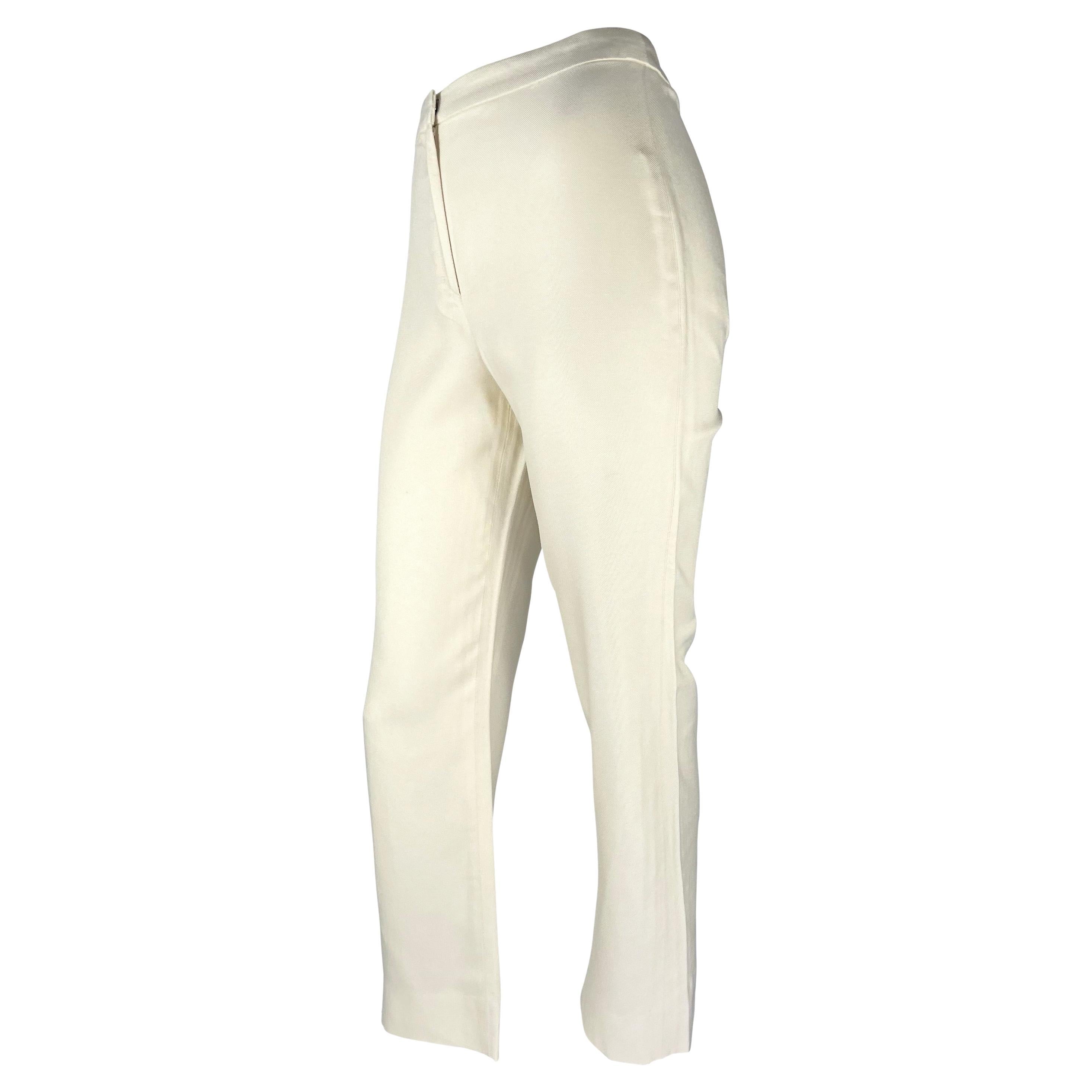 Presenting a pair of off-white Gianni Versace Couture pants, designed by Donatella Versace for the Spring/Summer 2000 collection. These classic pants debuted on the runway as part of look 25 modeled by Maggie Rizer and were also featured in the season's ad campaign photographed by Steven Miesel, modeled by Amber Valletta