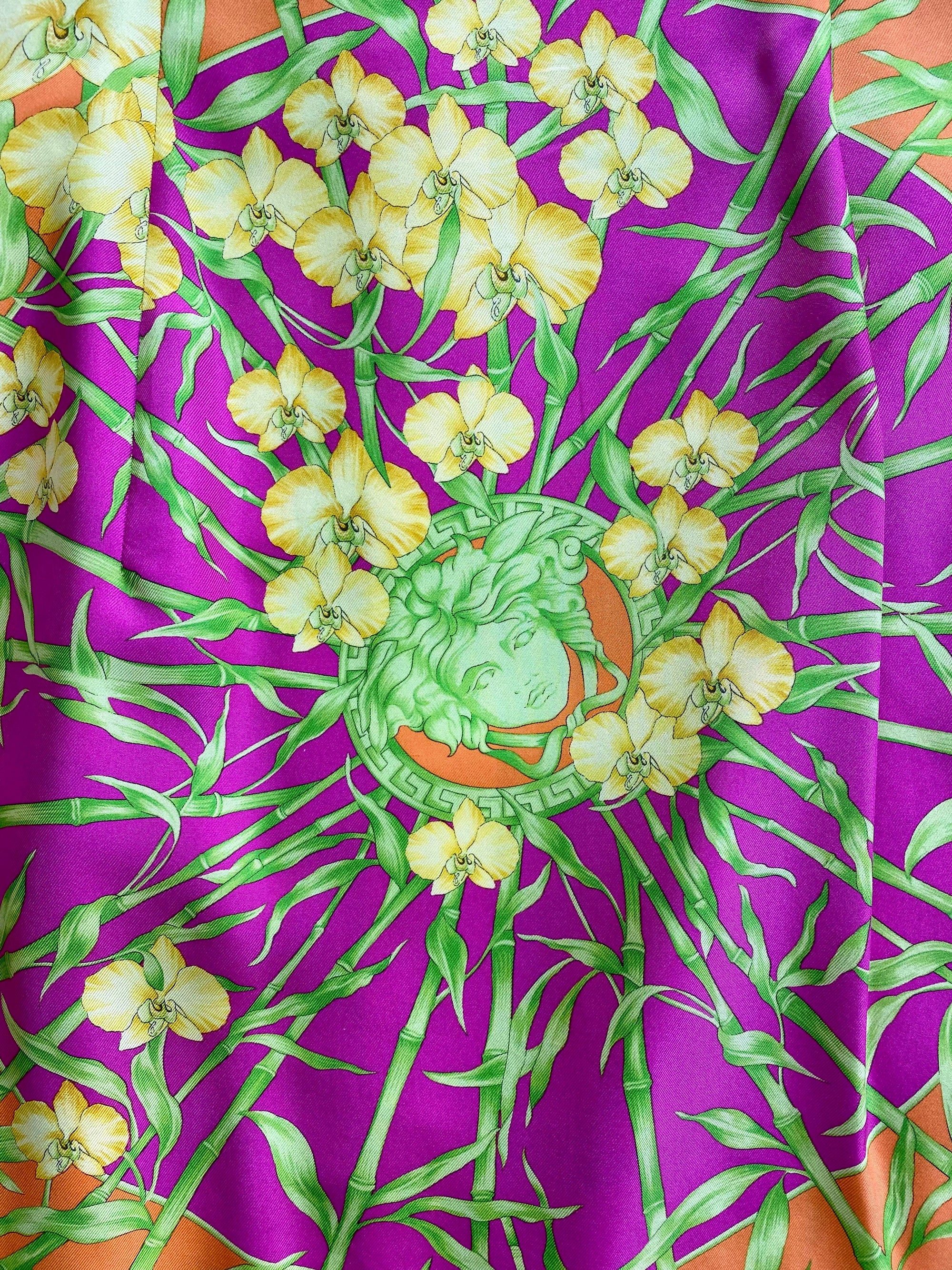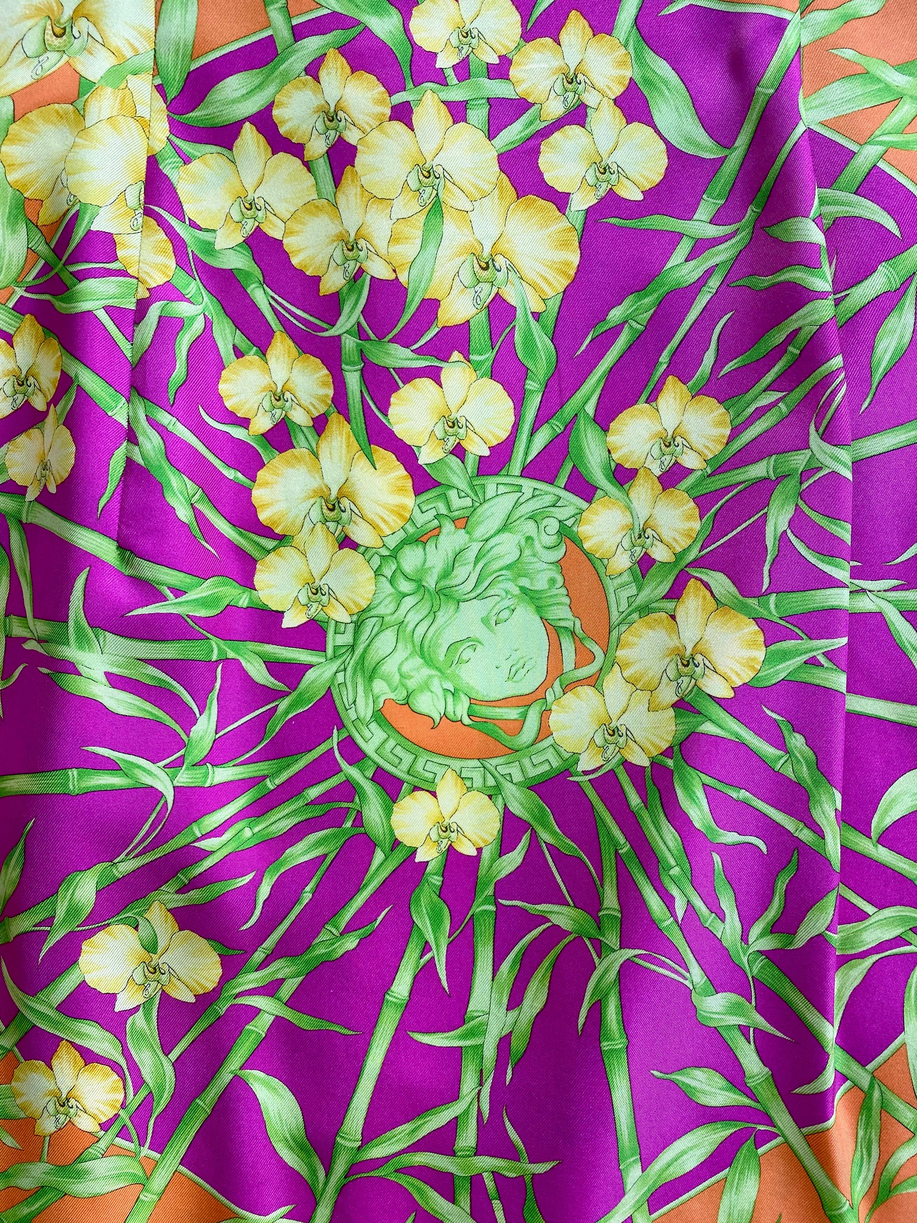 S/S 2000 Gianni Versace Silk Bamboo & Orchid Jungle Sleeveless Dress Donatella
