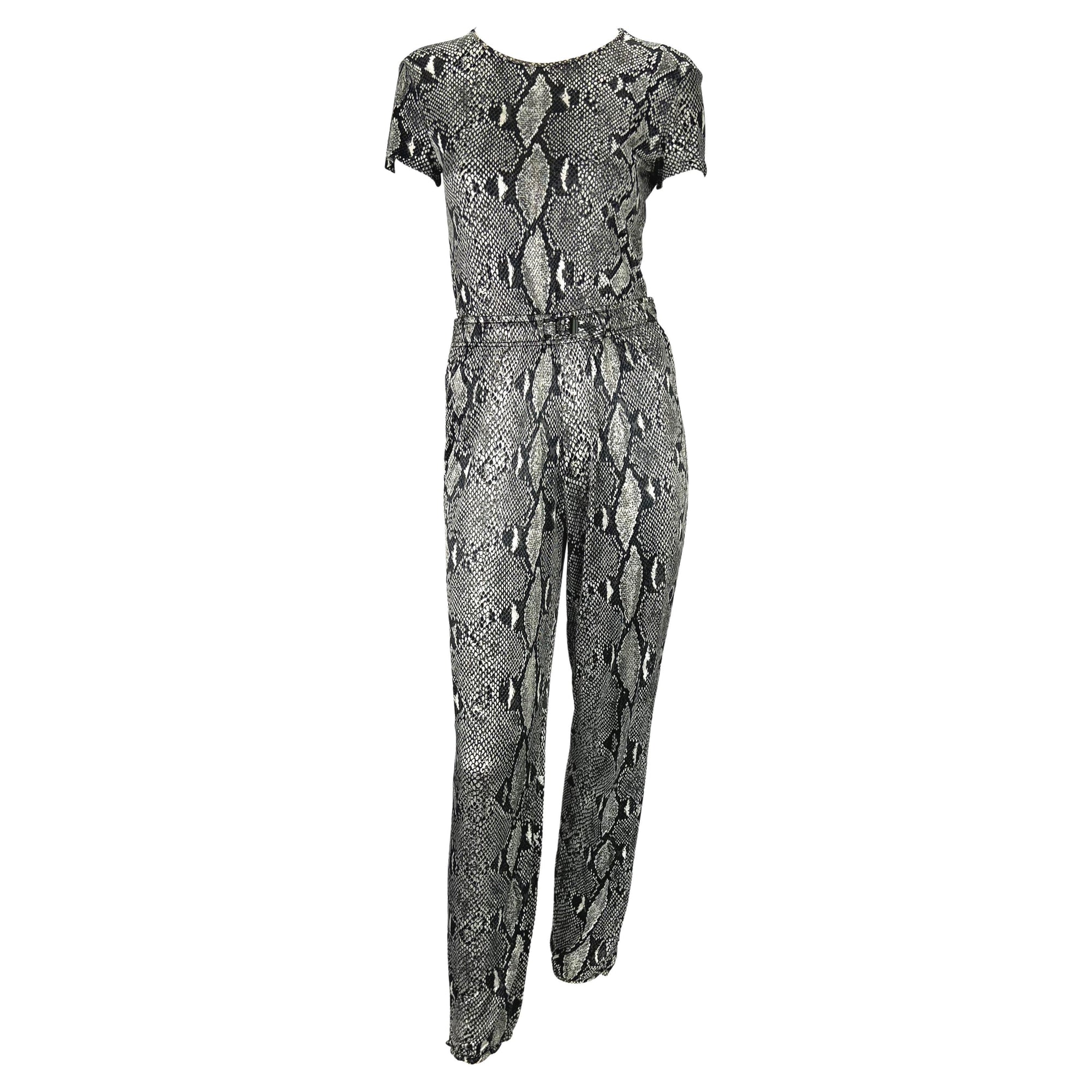 S/S 2000 Gucci by Tom Ford Black White Snakeskin Logo Print Viscose Pant Set