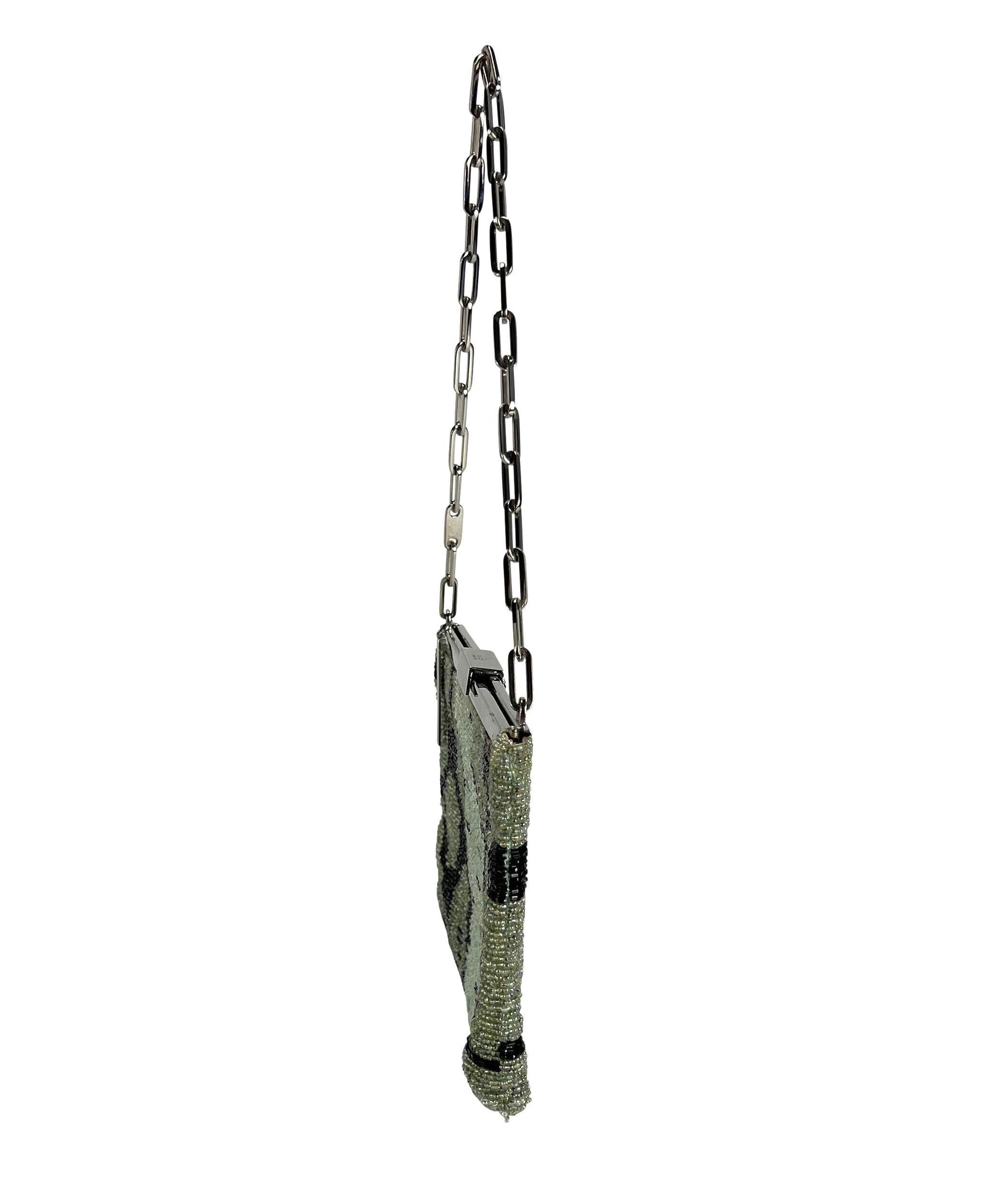 S/S 2000 Gucci by Tom Ford Green Snakeskin Pattern Beaded Chain Bag