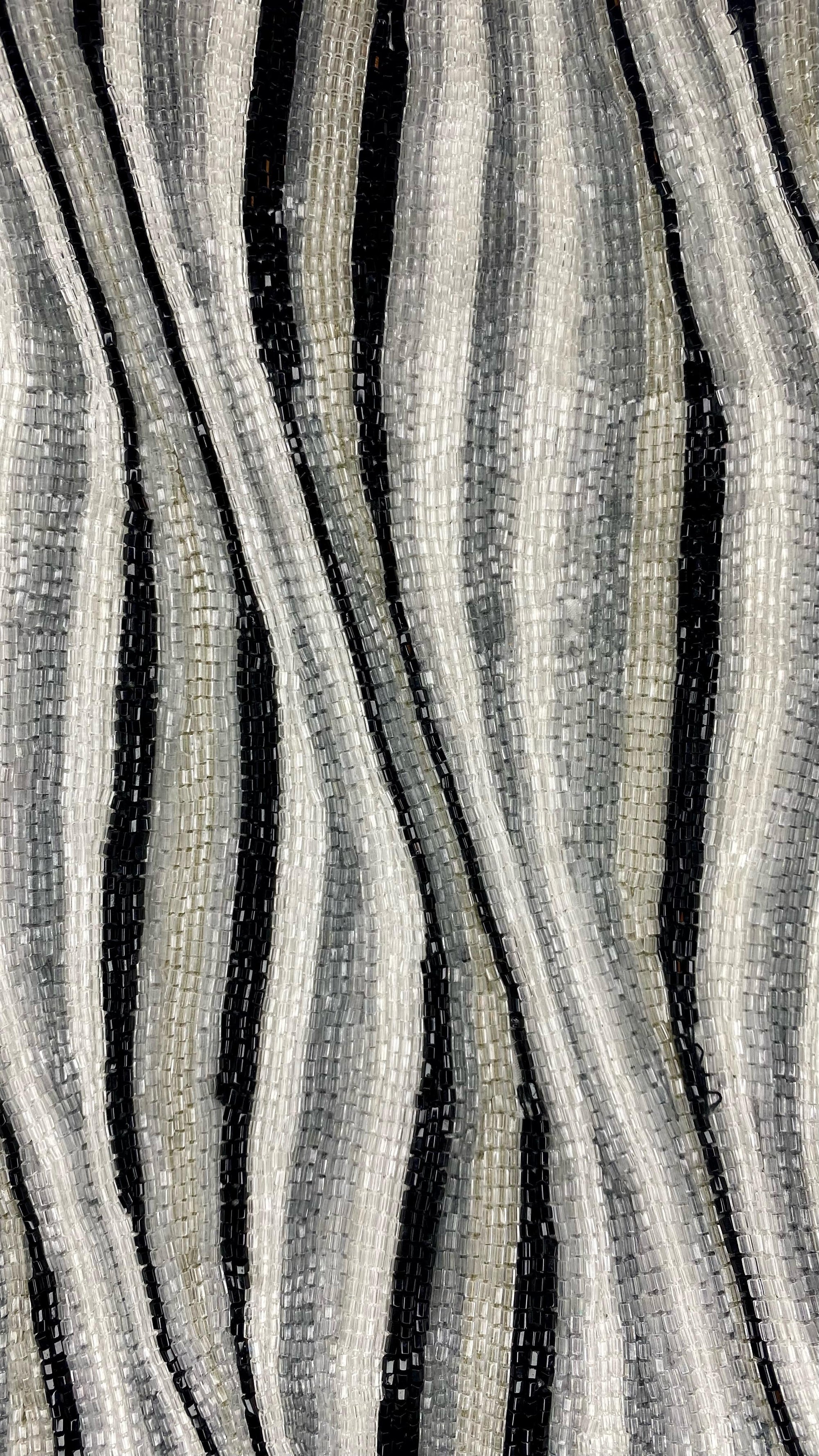 S/S 2000 Gucci by Tom Ford Heavily Beaded Striped Pants Black White Grey Runway