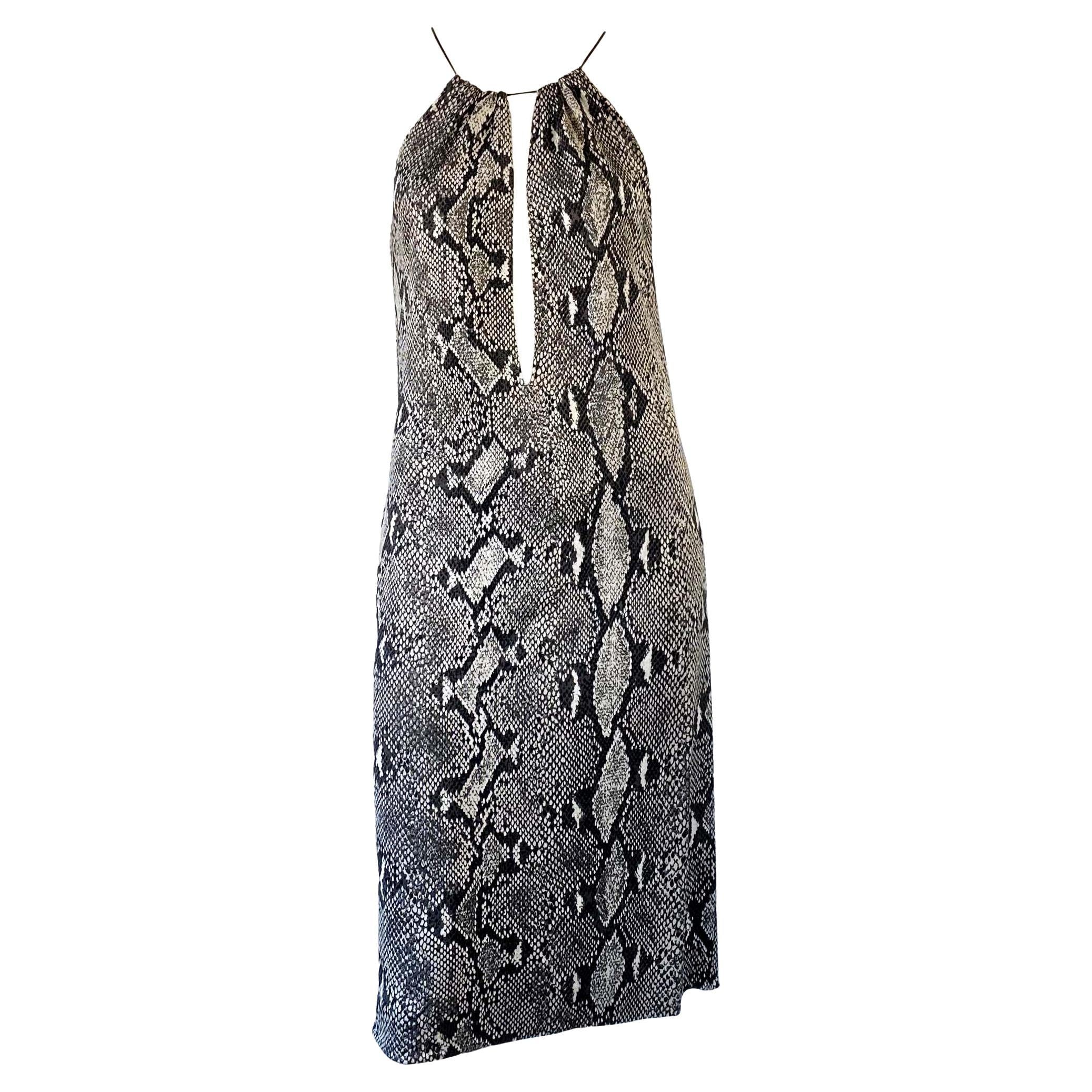 S/S 2000 Gucci by Tom Ford Snake Print Viscose Leather Strap Plunging Dress