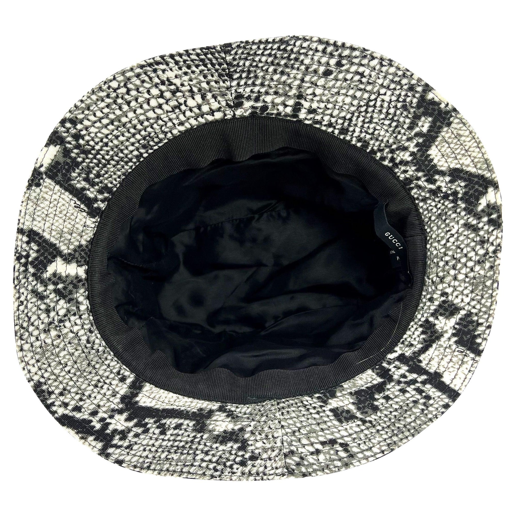 Presenting a fabulous rare grey snake print Gucci bucket hat, designed by Tom Ford. From the Spring/Summer 2000 collection, the same snakeskin print was heavily used on the season's runway and ad campaign. This snakeskin print hat is made complete with a silver 'Gucci' plaque accent on one side.