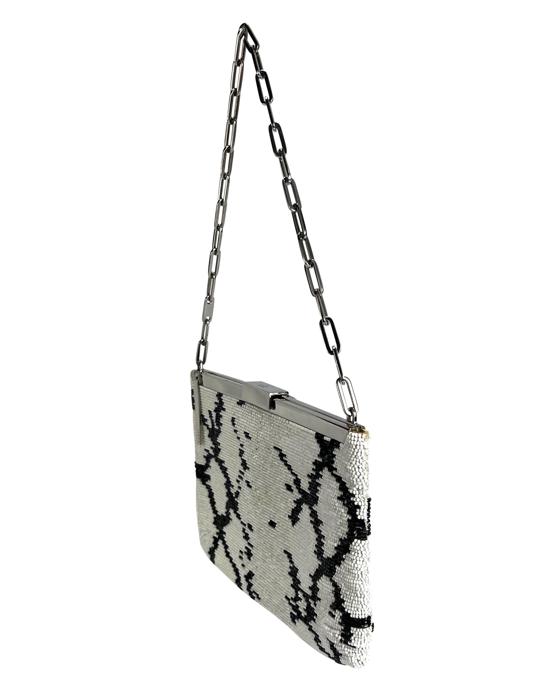 S/S 2000 Gucci by Tom Ford White Snakeskin Pattern Beaded Chain Small Bag