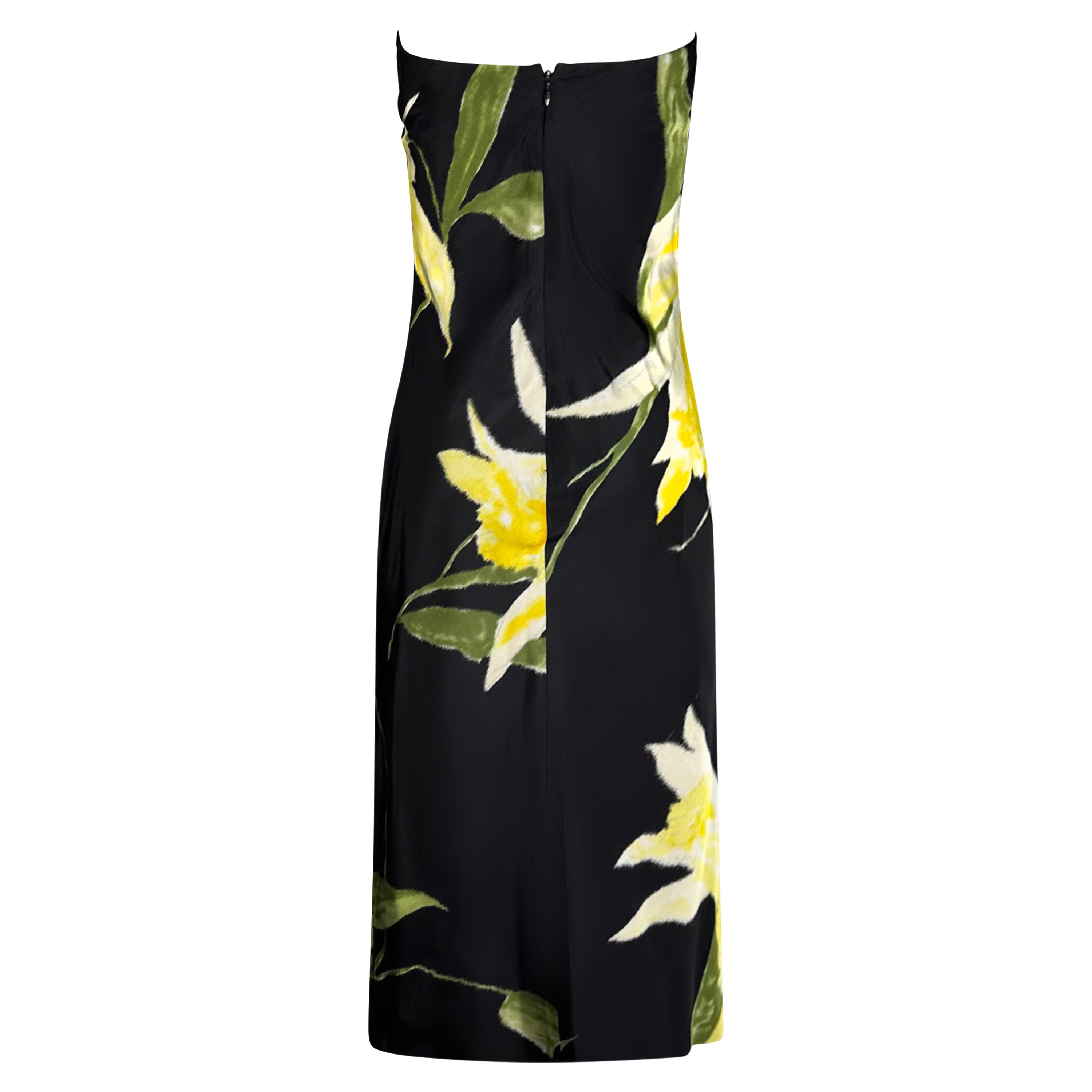 S/S 2000 Ralph Lauren Runway Black Yellow Floral Strapless Cocktail Dress