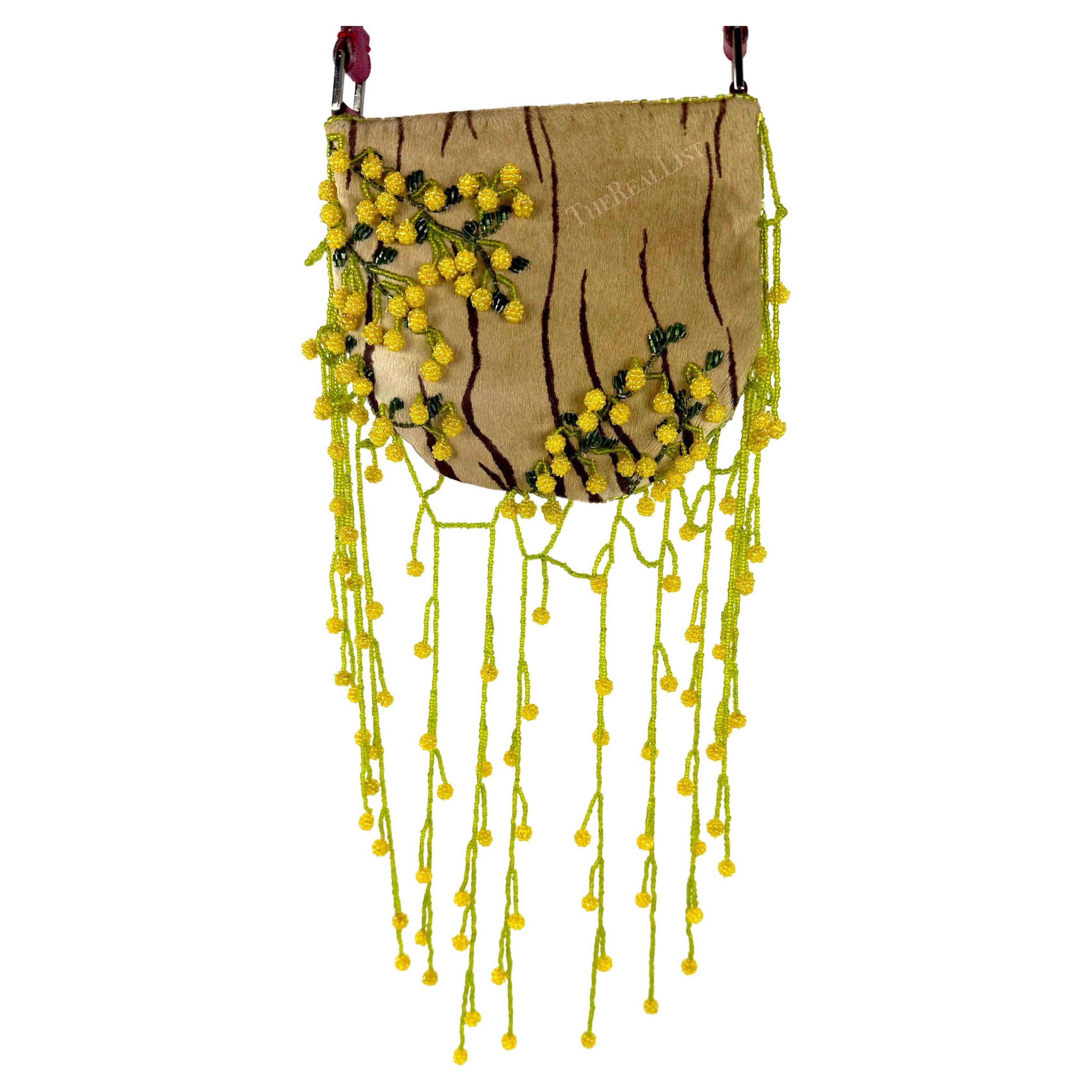 S/S 2000 Valentino Garavani Tan Pony Hair Floral Beaded Lizard Trim Bag