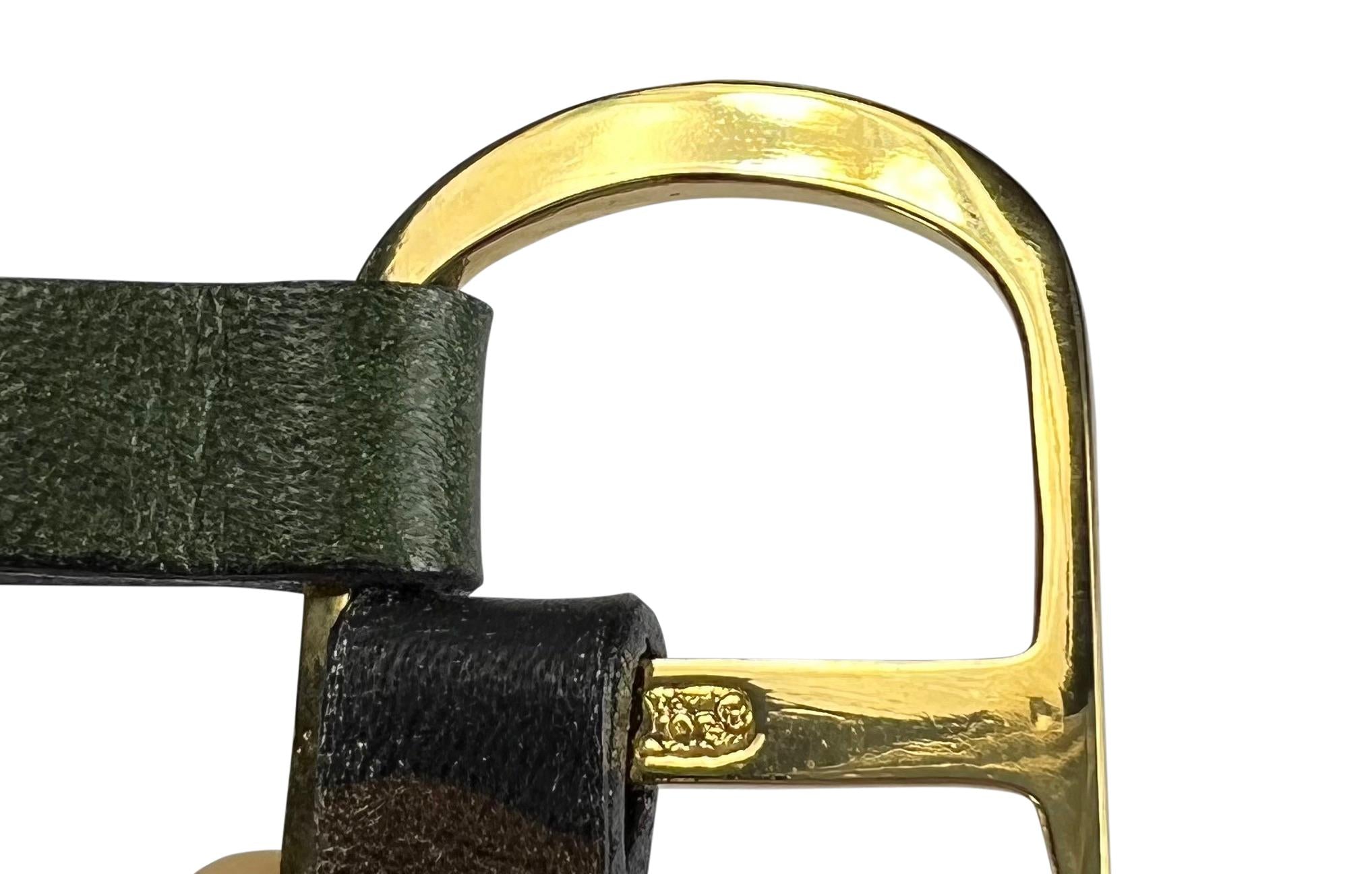 Presenting a camouflage gold tone Christian Dior choker designed by John Galliano. This choker from the Spring/Summer 2001 collection prominently features a gold-tone 'D' at the front held together by camouflage-colored leather.