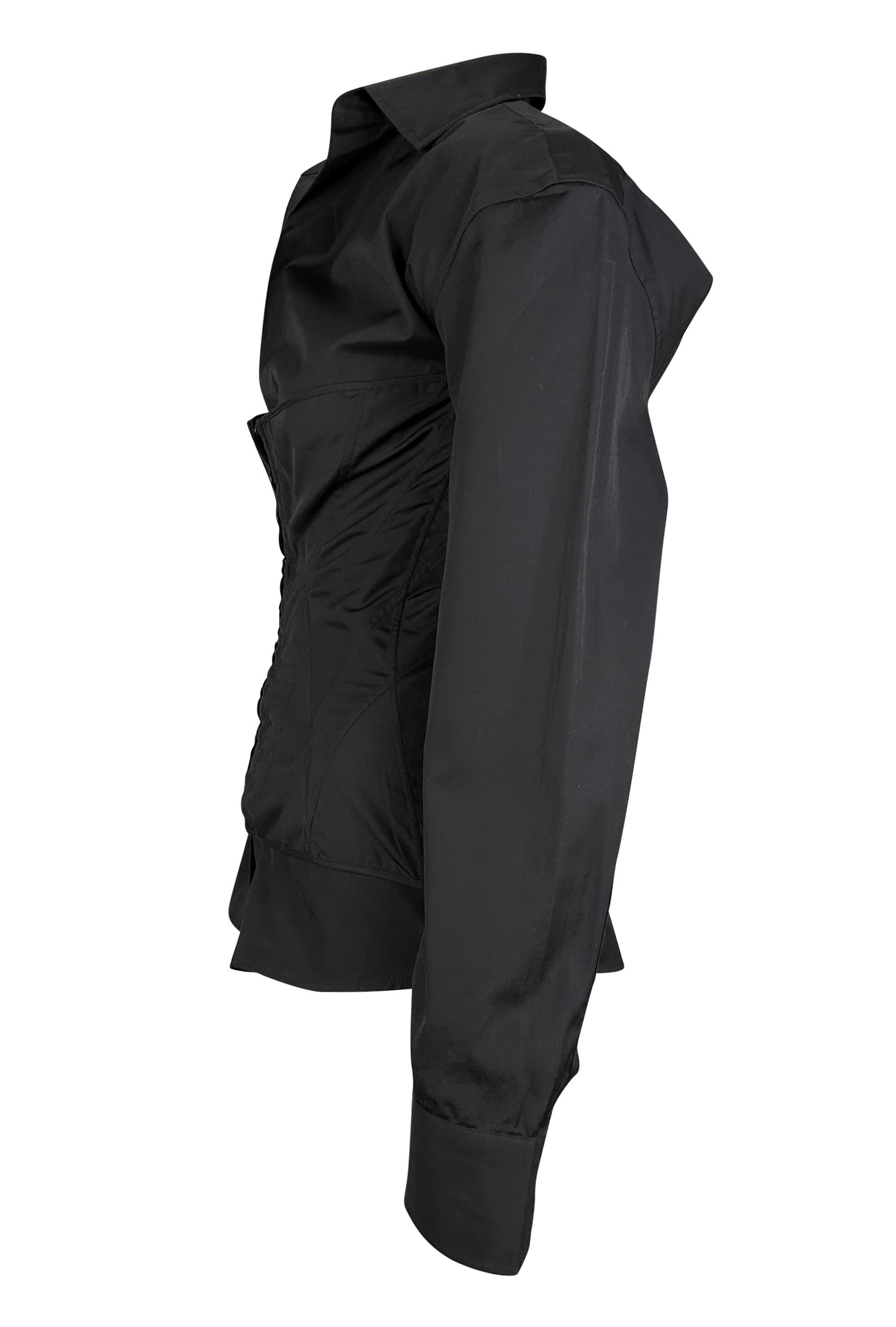 S/S 2001 Gucci by Tom Ford Ad Campaign Corset Black Plunging Cotton Blouse