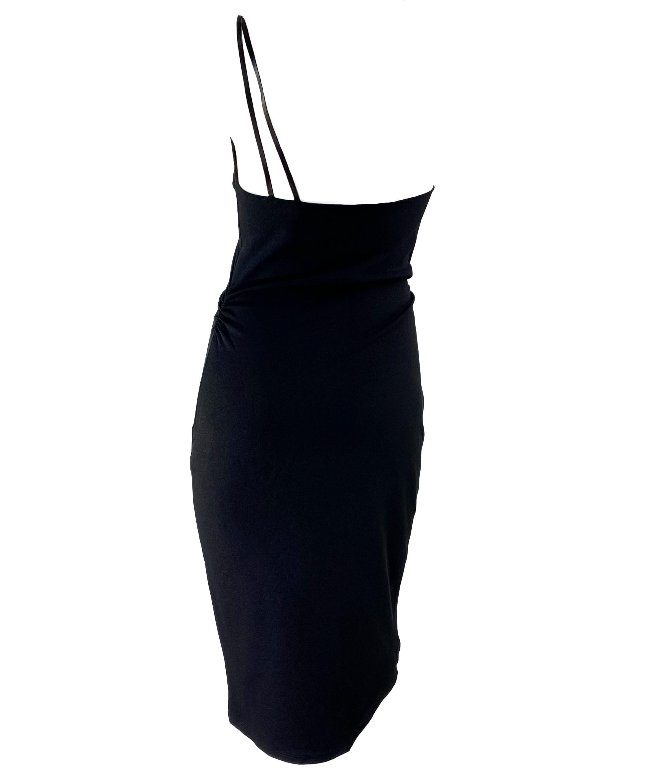 S/S 2001 Gucci by Tom Ford Black Knit Asymmetric Leather Strap Dress