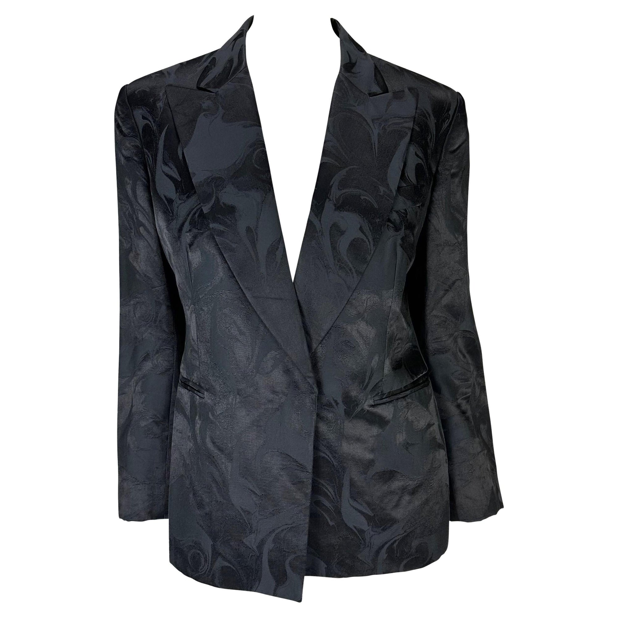 S/S 2001 Gucci by Tom Ford Liquid Pattern Jacquard Navy Blazer Jacket