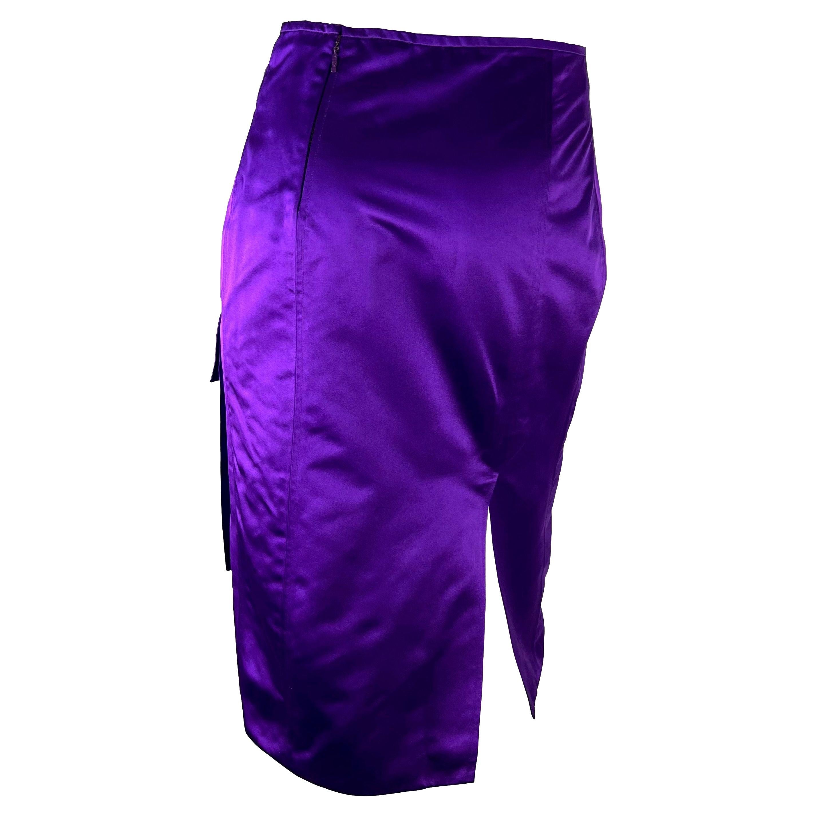 S/S 2001 Gucci by Tom Ford Runway Purple Satin Cargo Pocket Pencil Skirt
