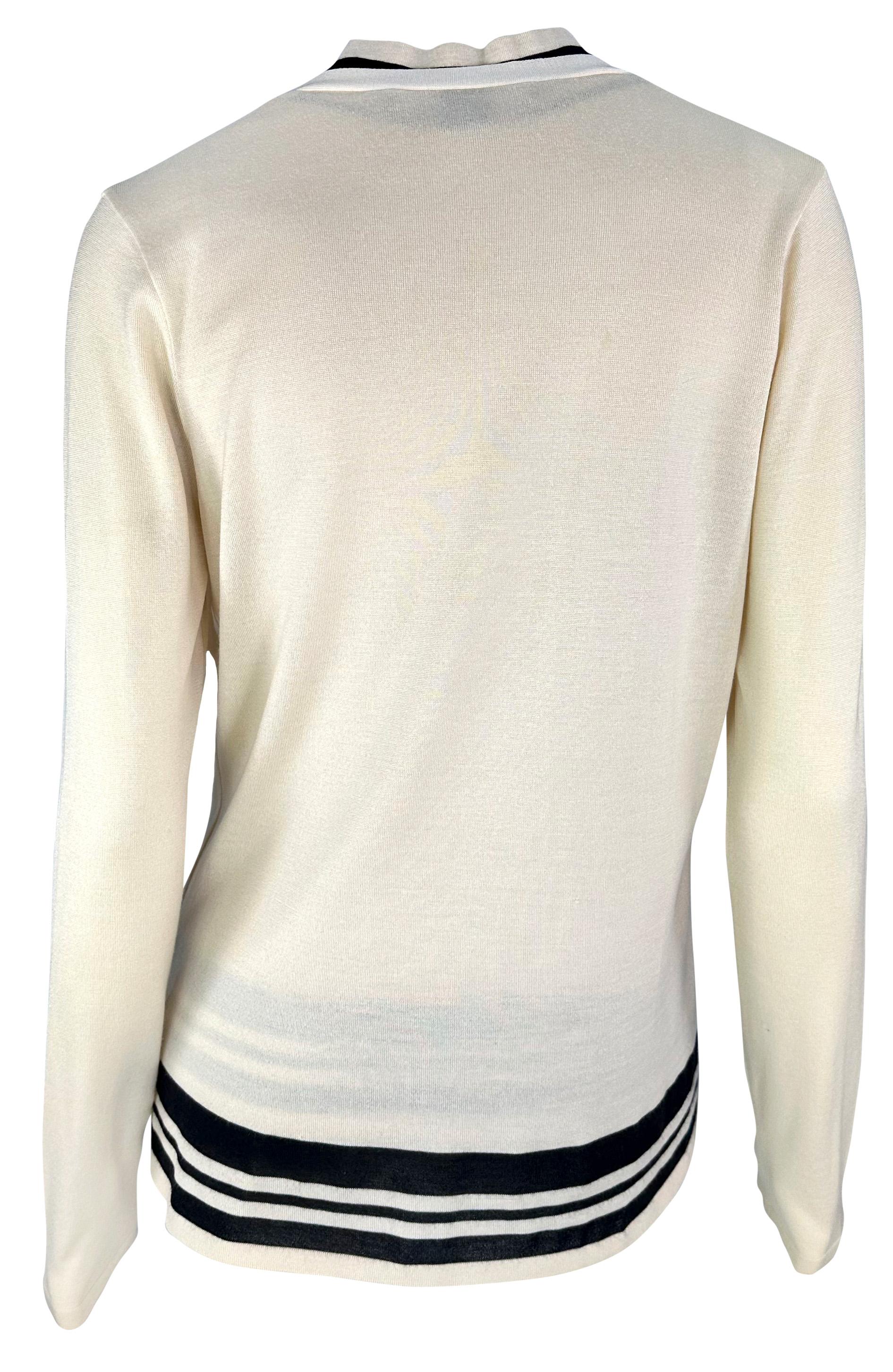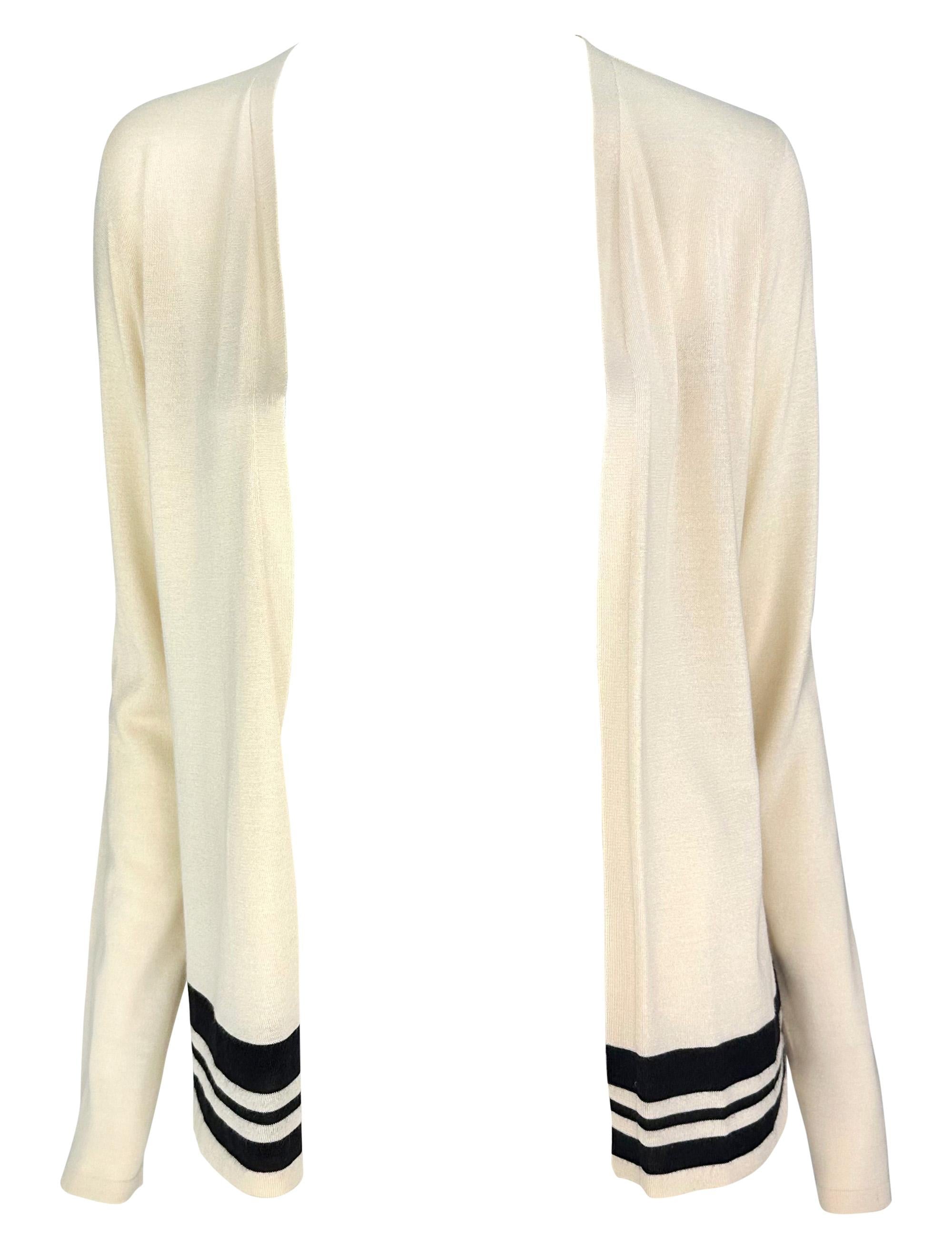 S/S 2001 Ralph Lauren Off-White Striped Cashmere Silk Knit Cardigan Sweater Set