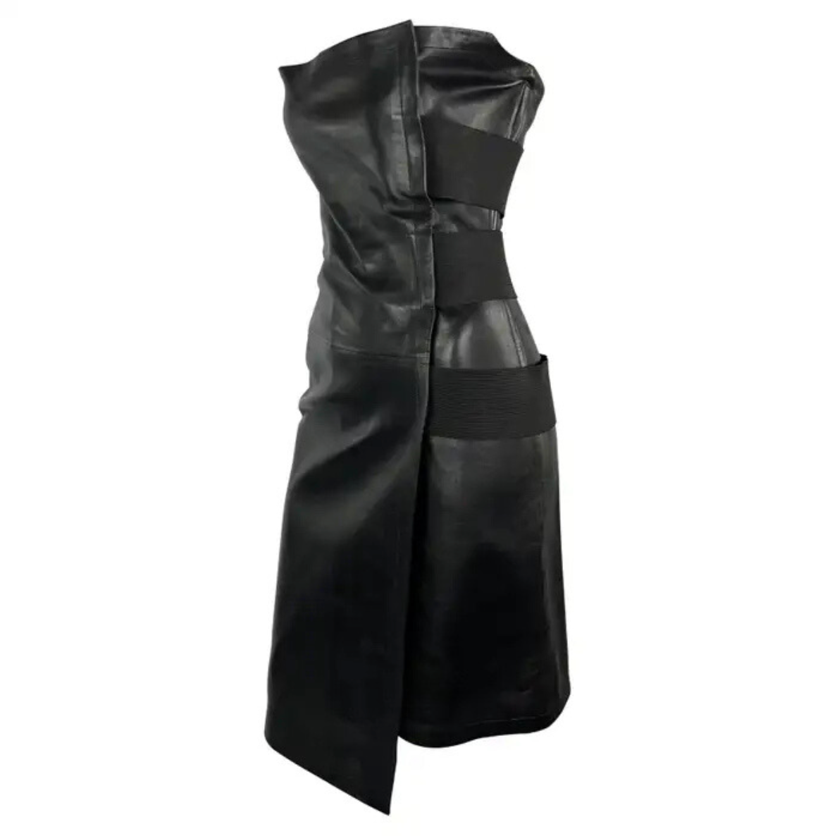 S/S 2001 Yves Saint Laurent by Tom Ford Black Leather Strapless Bandage Dress