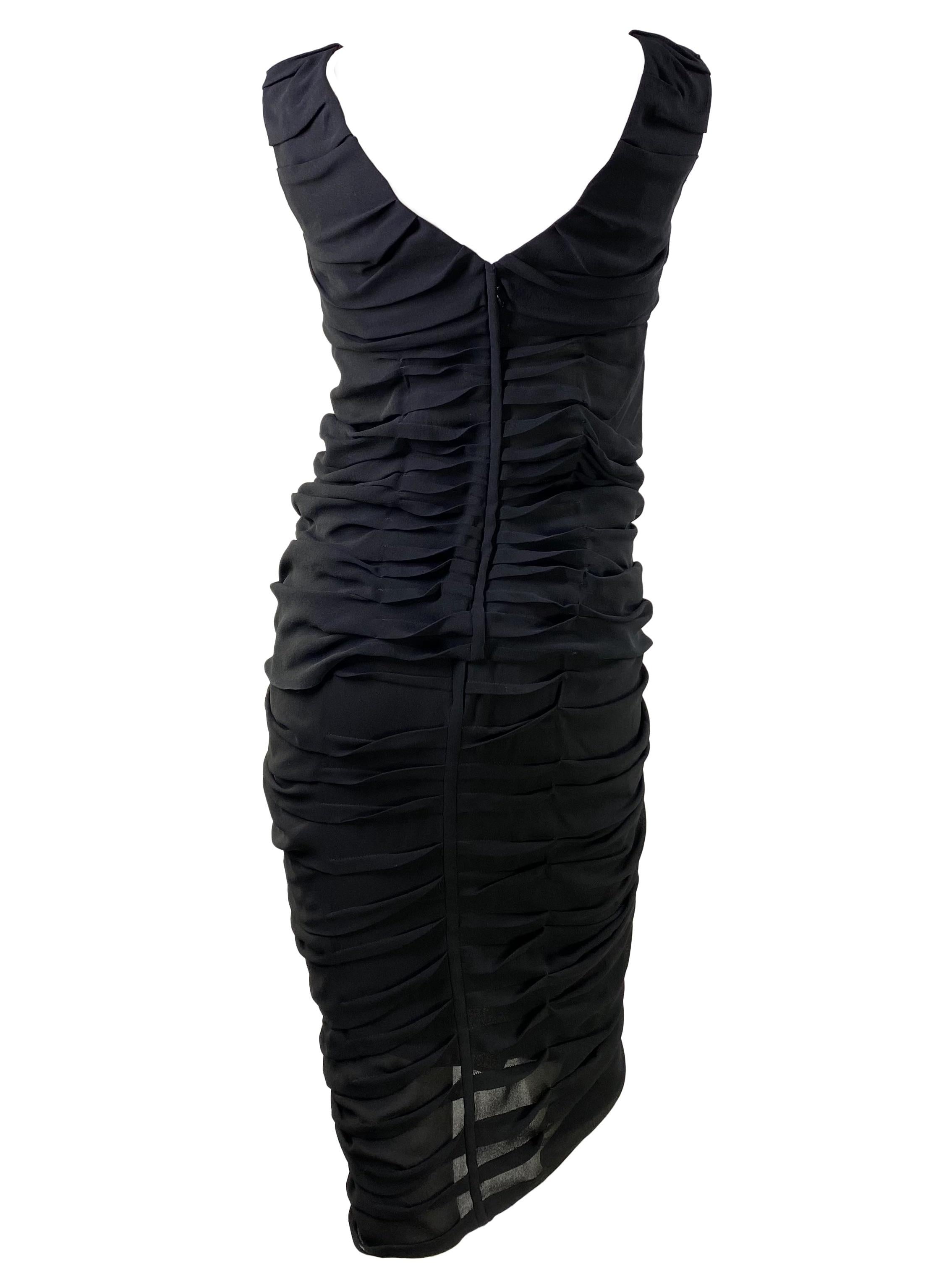 S/S 2001 Yves Saint Laurent by Tom Ford Pleated Black Silk Skirt Set