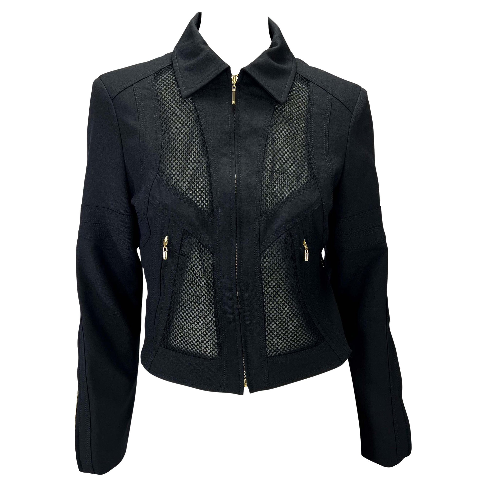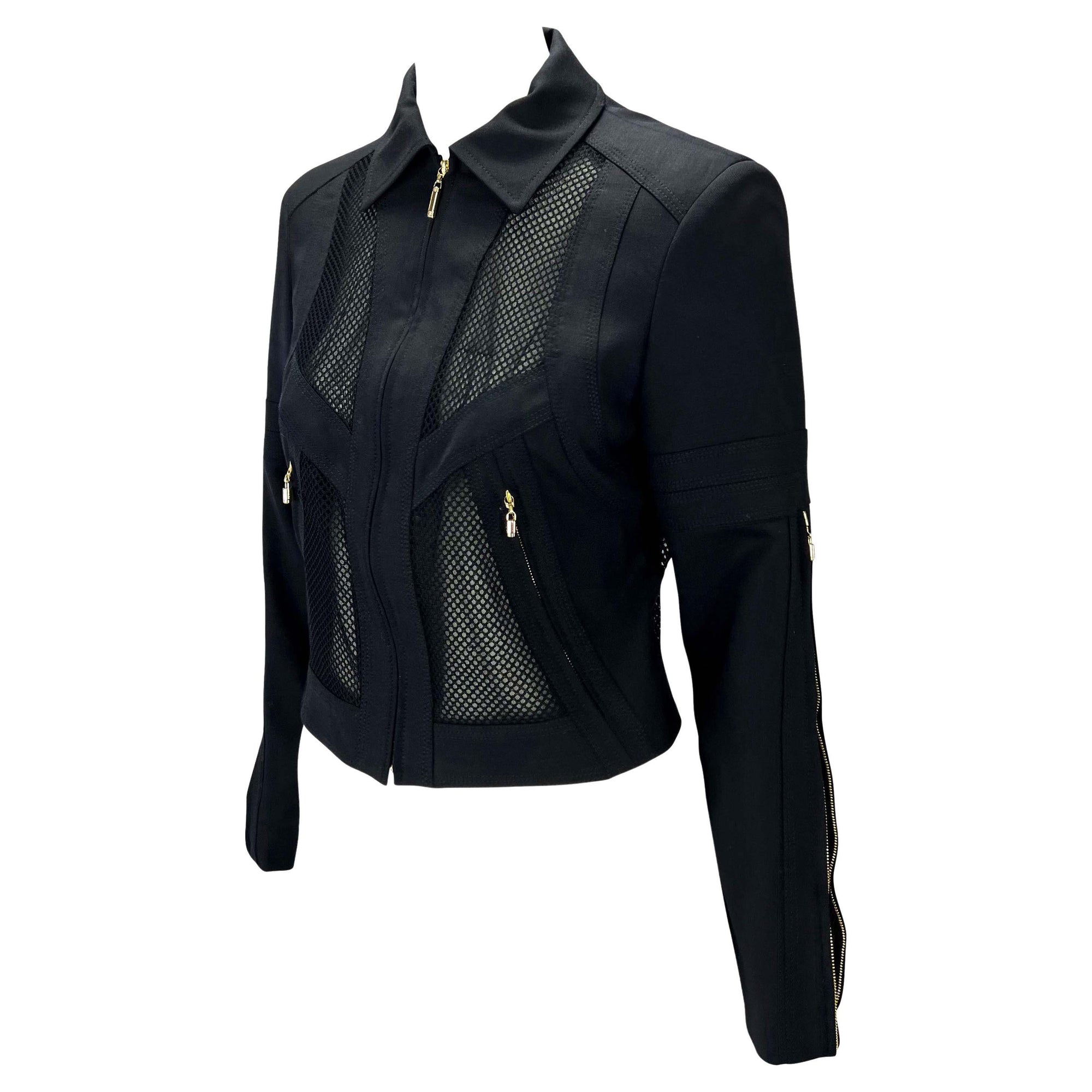 S/S 2002 Gianni Versace by Donatella Mesh Panel Sheer Black Zip Medusa Jacket