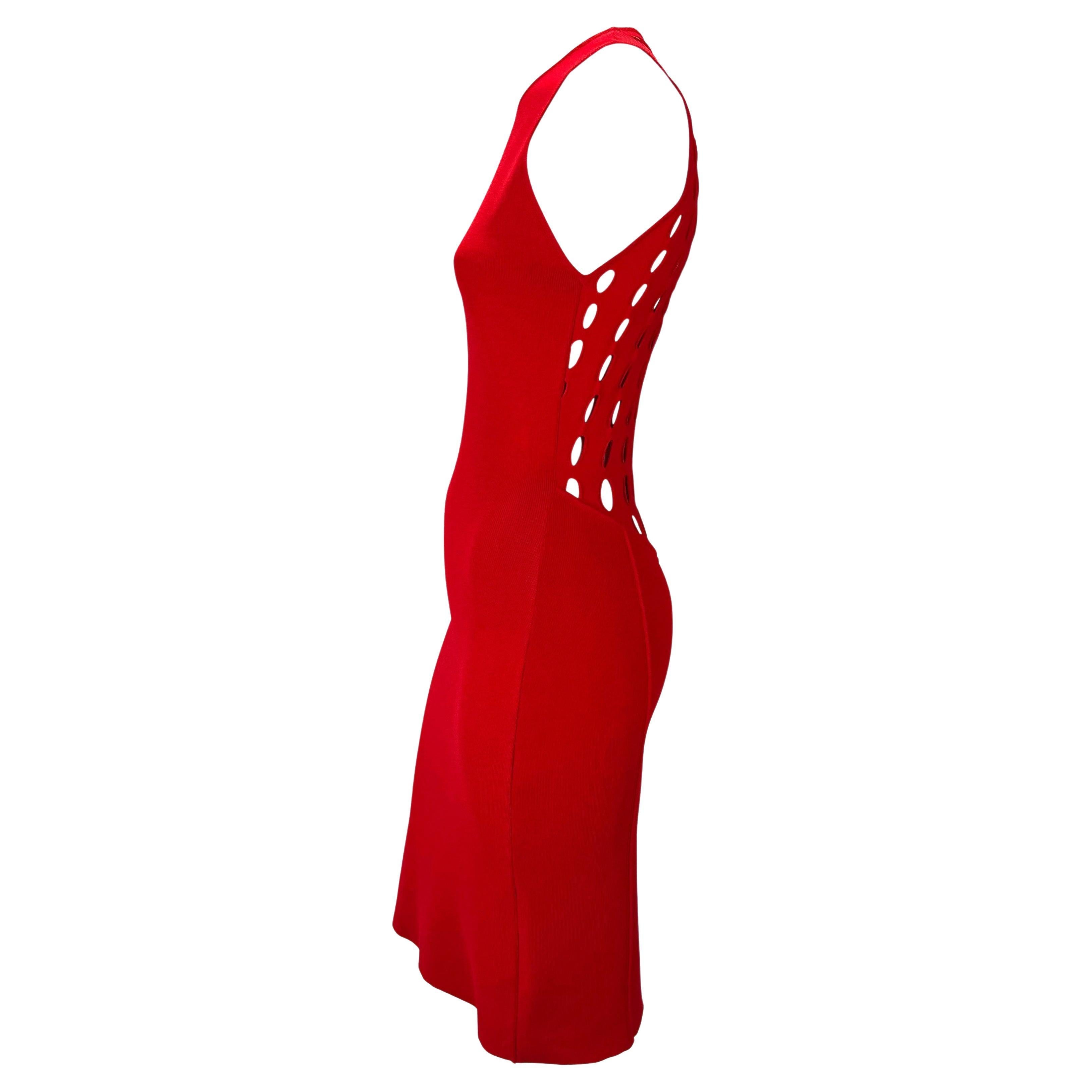 S/S 2002 Gianni Versace by Donatella Red Eyelet Cutout Stretch Racerback Dress