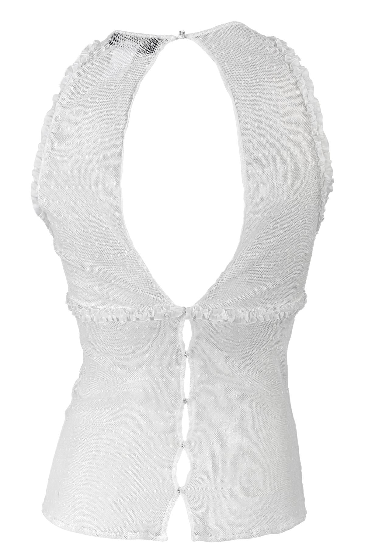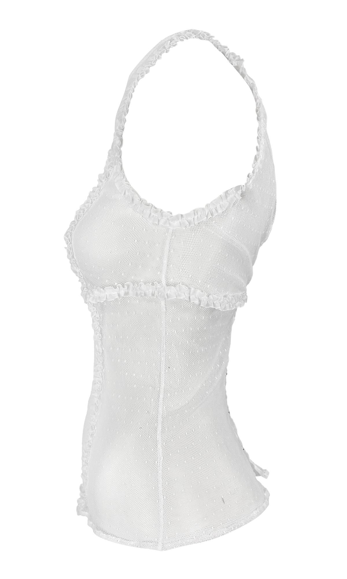 S/S 2002 Gianni Versace by Donatella Runway Sheer White Sleeveless Ruffle Tank Top