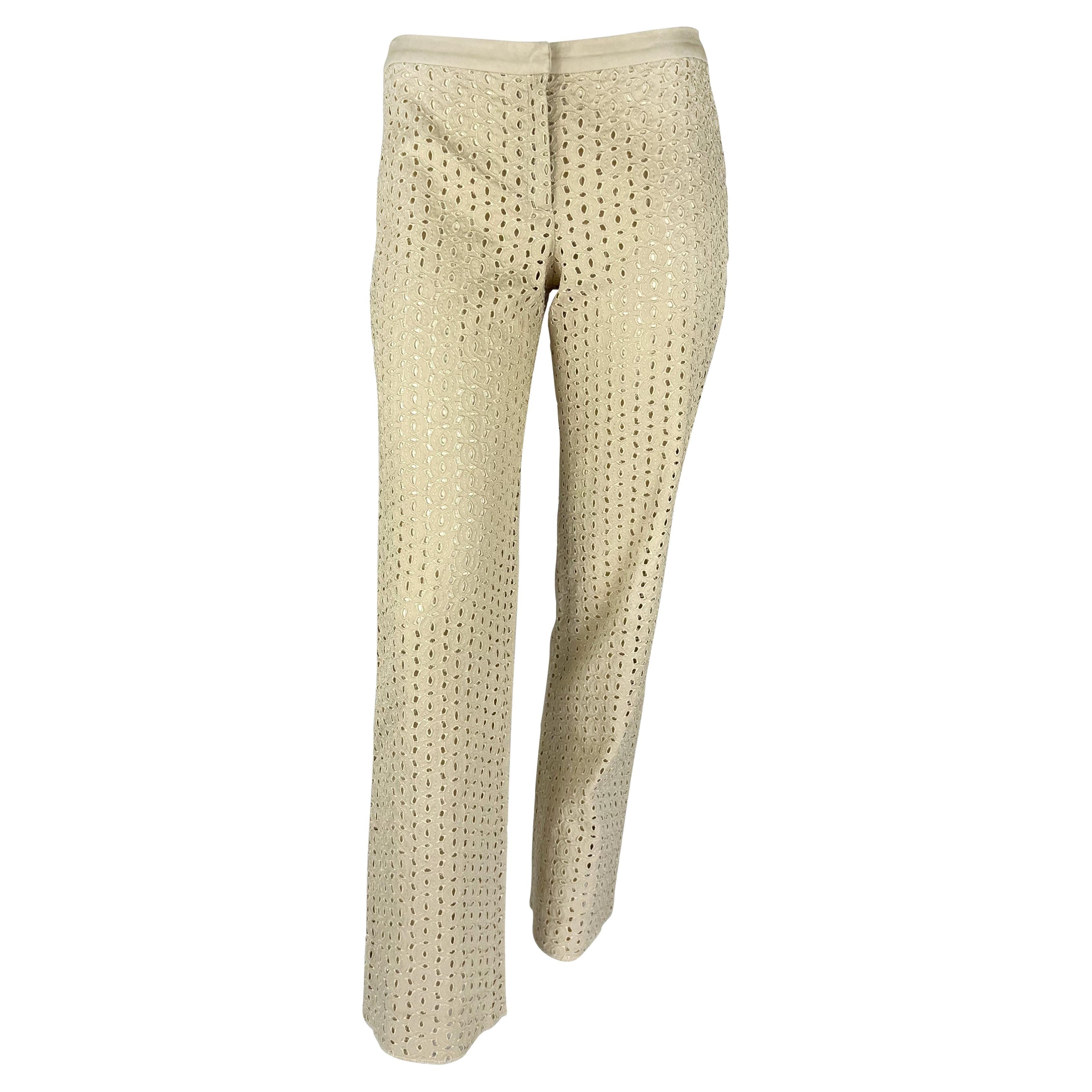 S/S 2002 Gianni Versace by Donatella Sheer Broderie Anglaise Off-White Pants