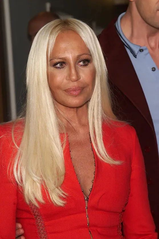 Presenting a red-hot pantsuit designed by Donatella for the Gianni Versace Spring/Summer 2002 collection. This look debuted as Look number 3 on Inga Savits and Donatella Versace for the launch party for Versace's skincare line at Barney's in November 2001. It was also worn by Gisele Bündchen in the season's ad campaign, shot by Steven Meisel, and by Sharon Stone to an amfAR Gala in Cannes on May 22, 2002. Tonal lace connecting the jacket's fabric panels reveals peeks of skin and highlights the figure-hugging tailoring that is classically Versace. The center of the coat closes with a row of silver-toned hook and eye closures.