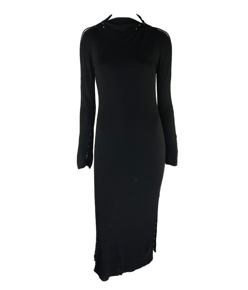 S/S 2002 Gucci by Tom Ford Knit Hook Closure Runway Black Knit Dress Set