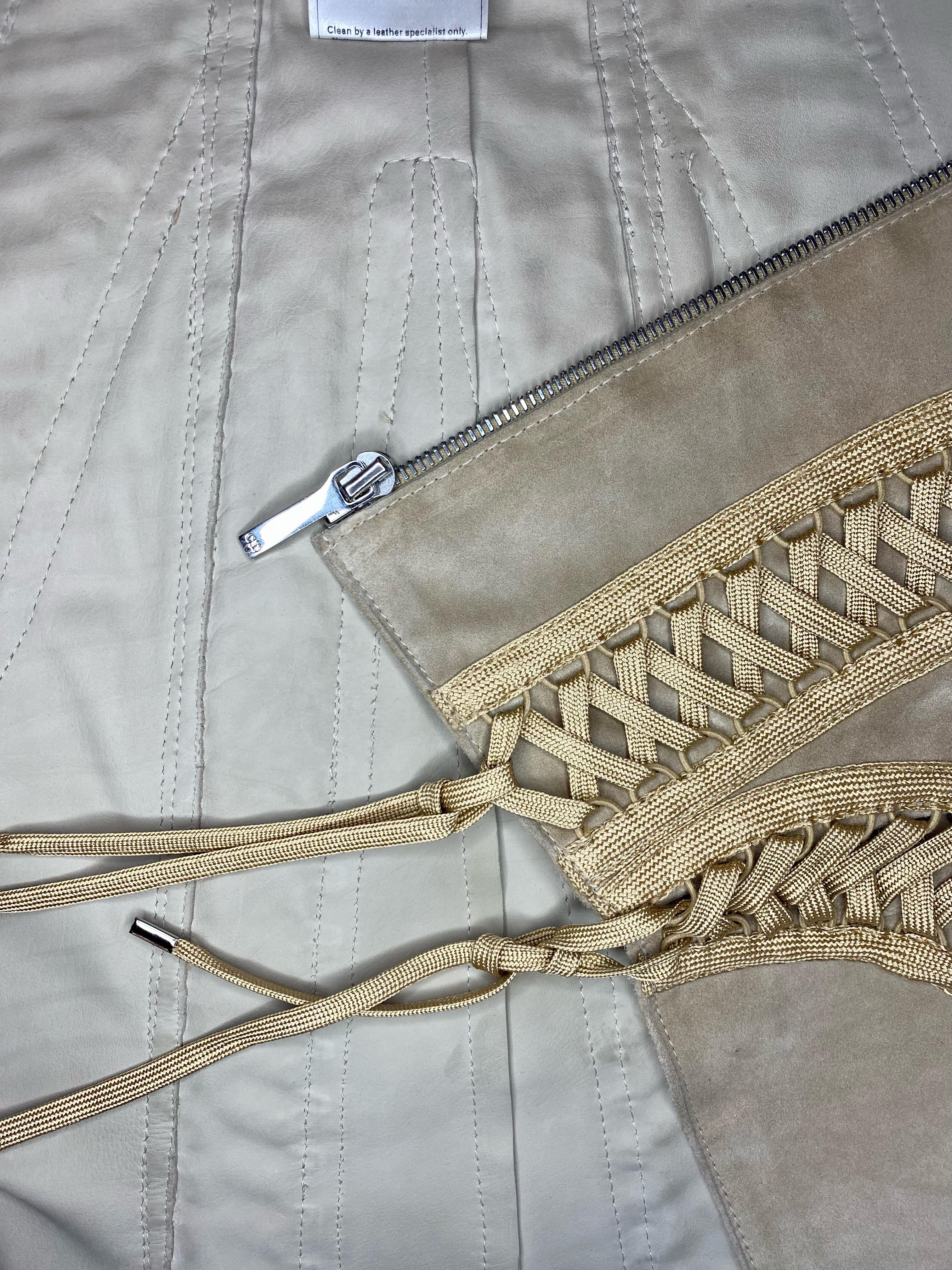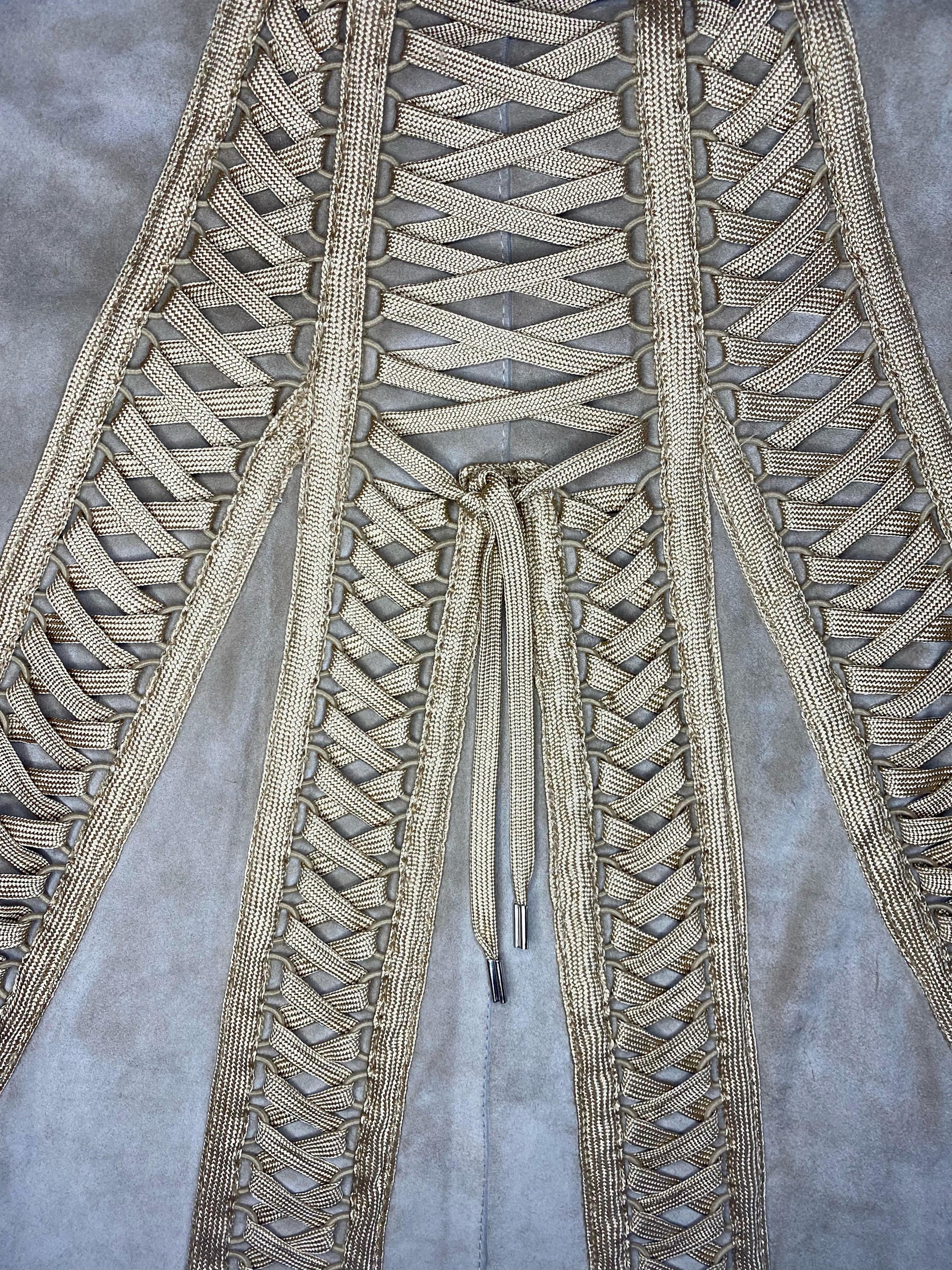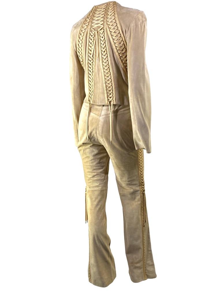S/S 2003 Christian Dior by John Galliano Suede Lace Up Jacket Pants Suit Set
