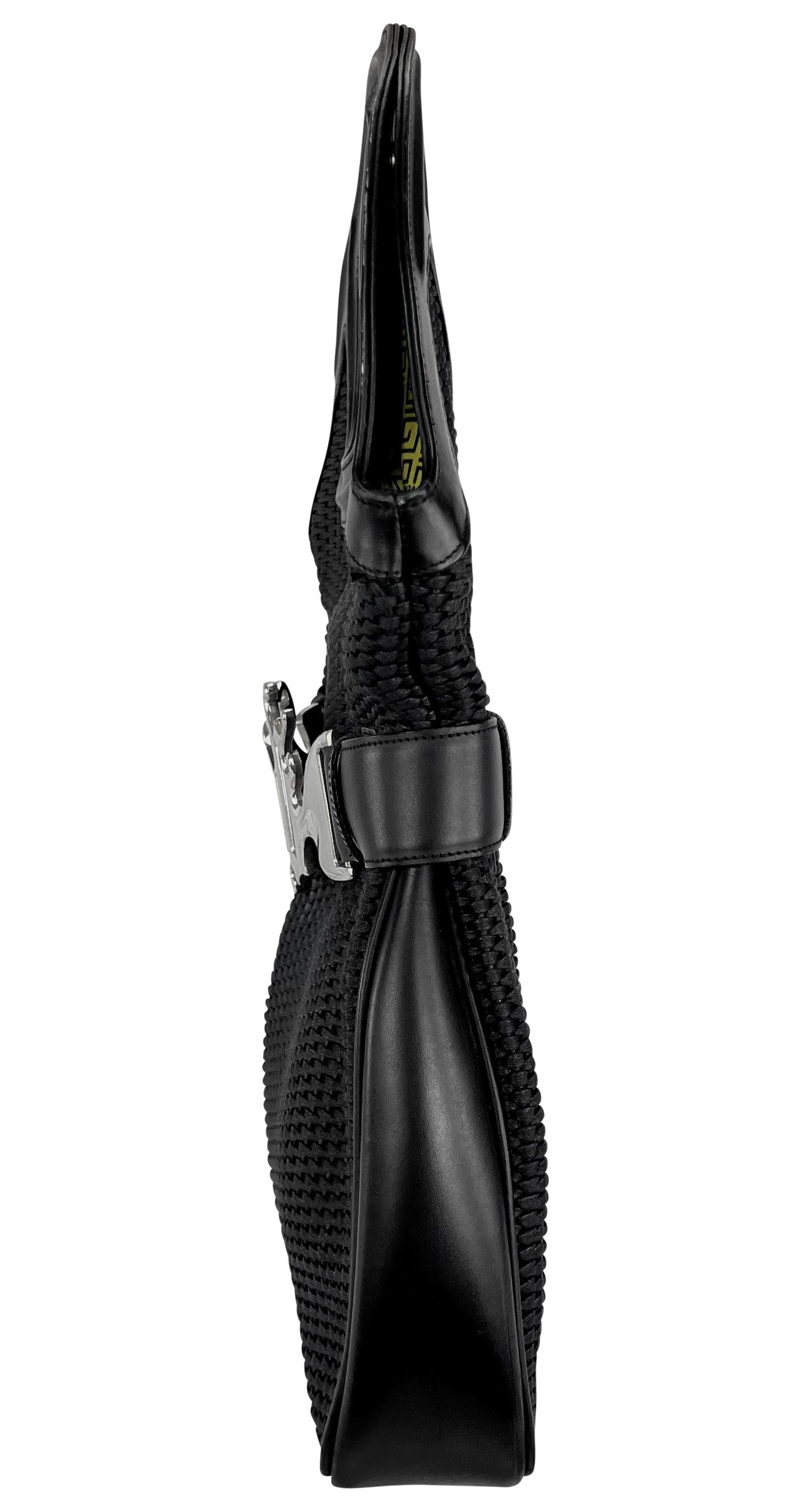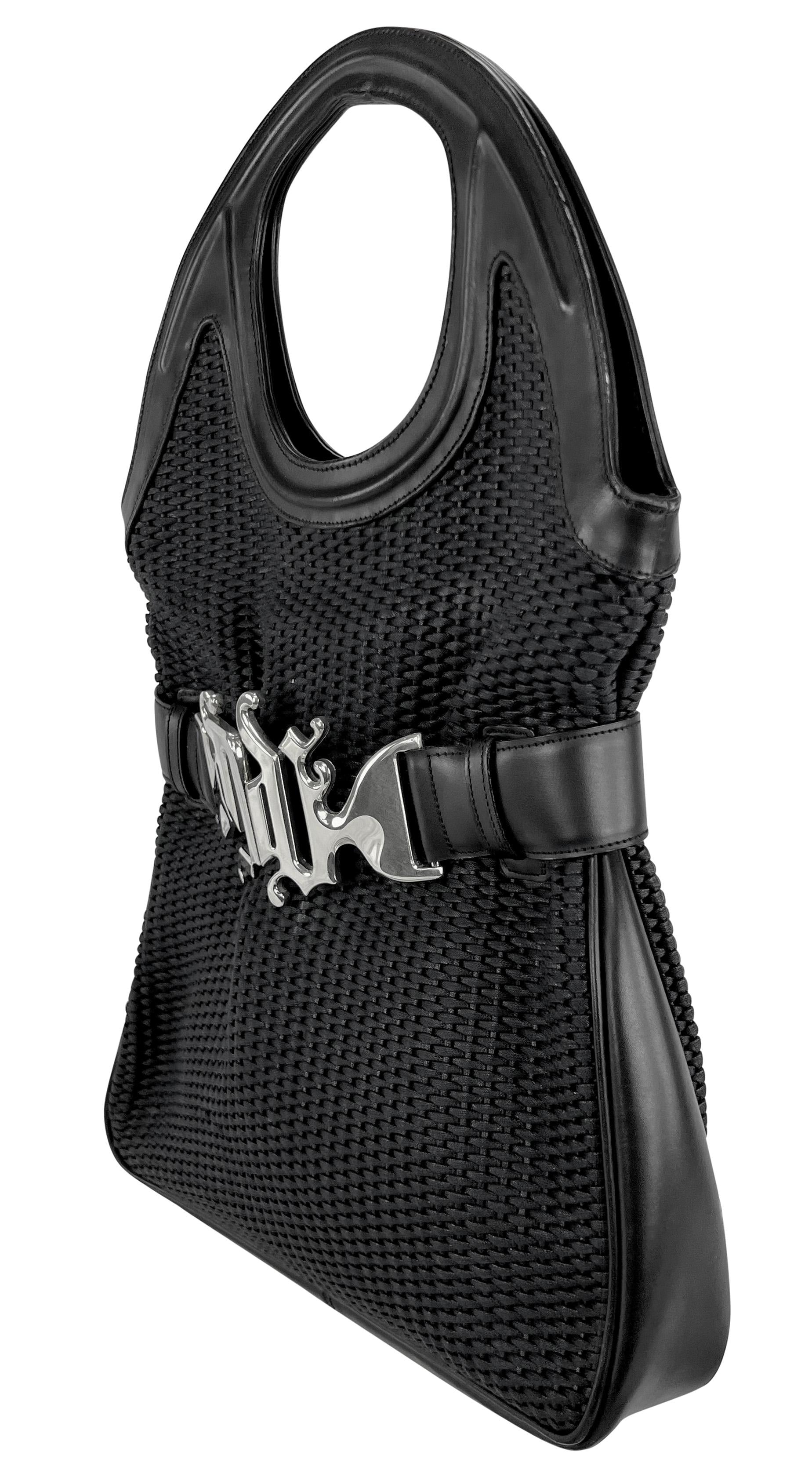 S/S 2003 Gianni Versace by Donatella Oversized Monogram Buckle Woven Black Tote