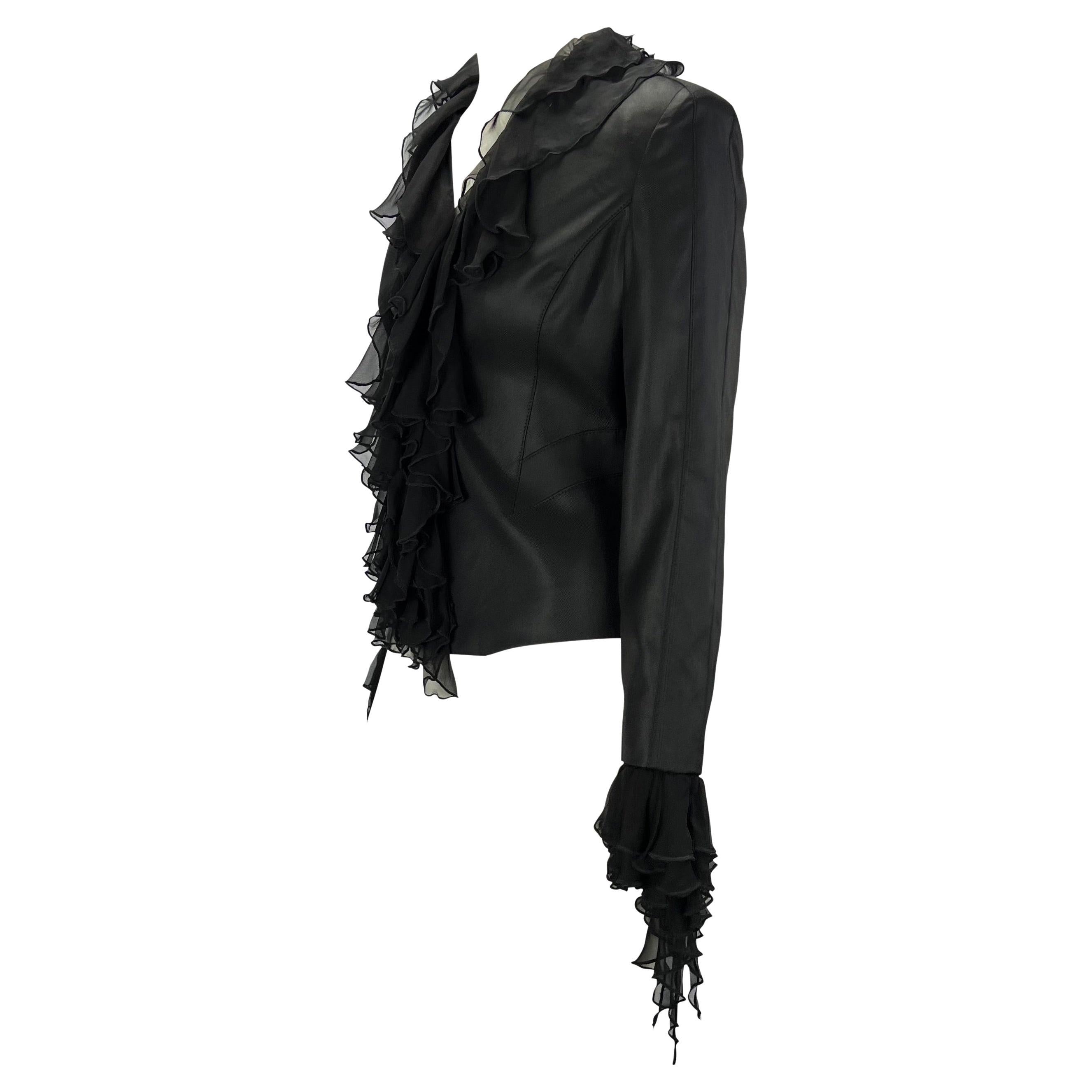 S/S 2003 Gianni Versace by Donatella Ruffle Silk Chiffon Black Blazer Y2K