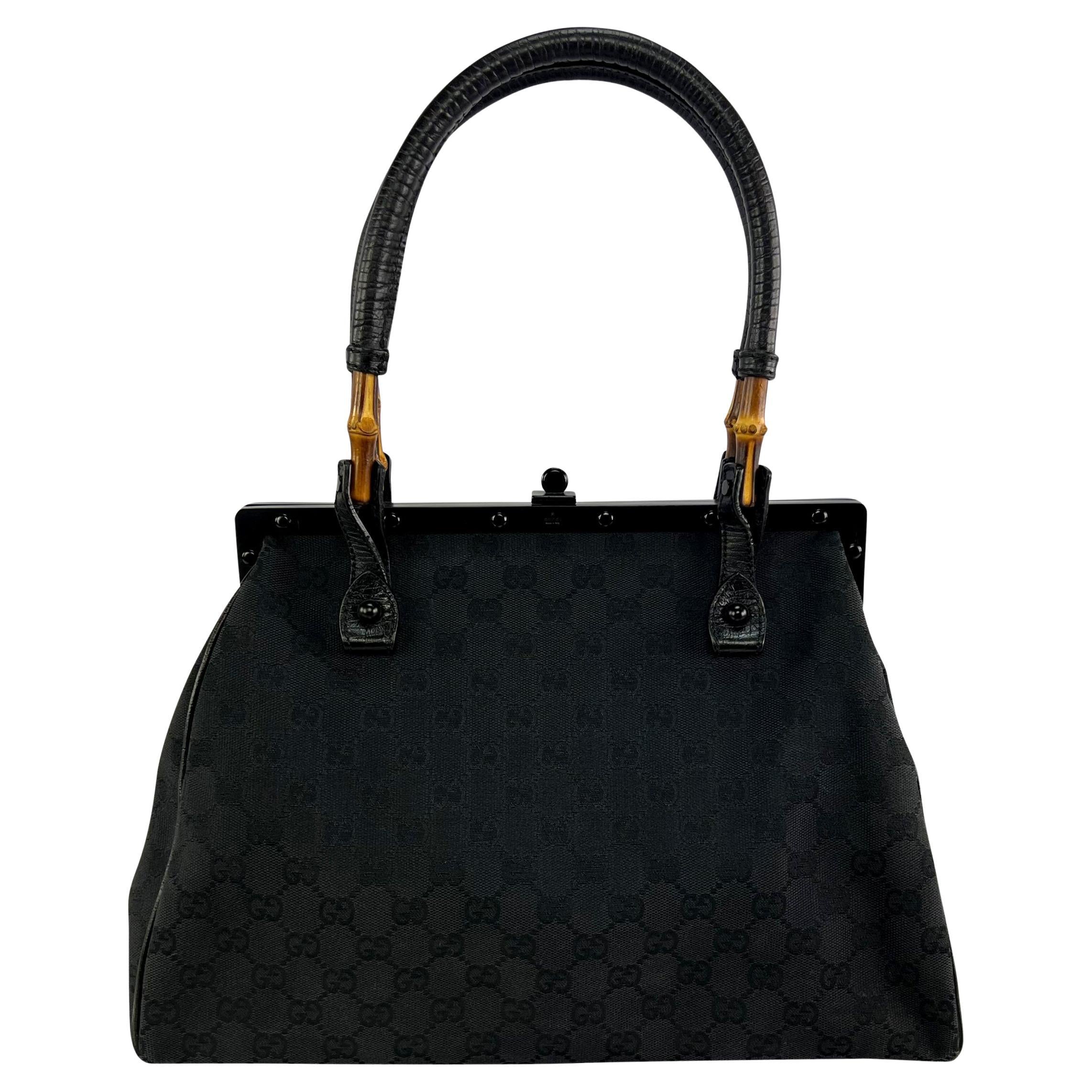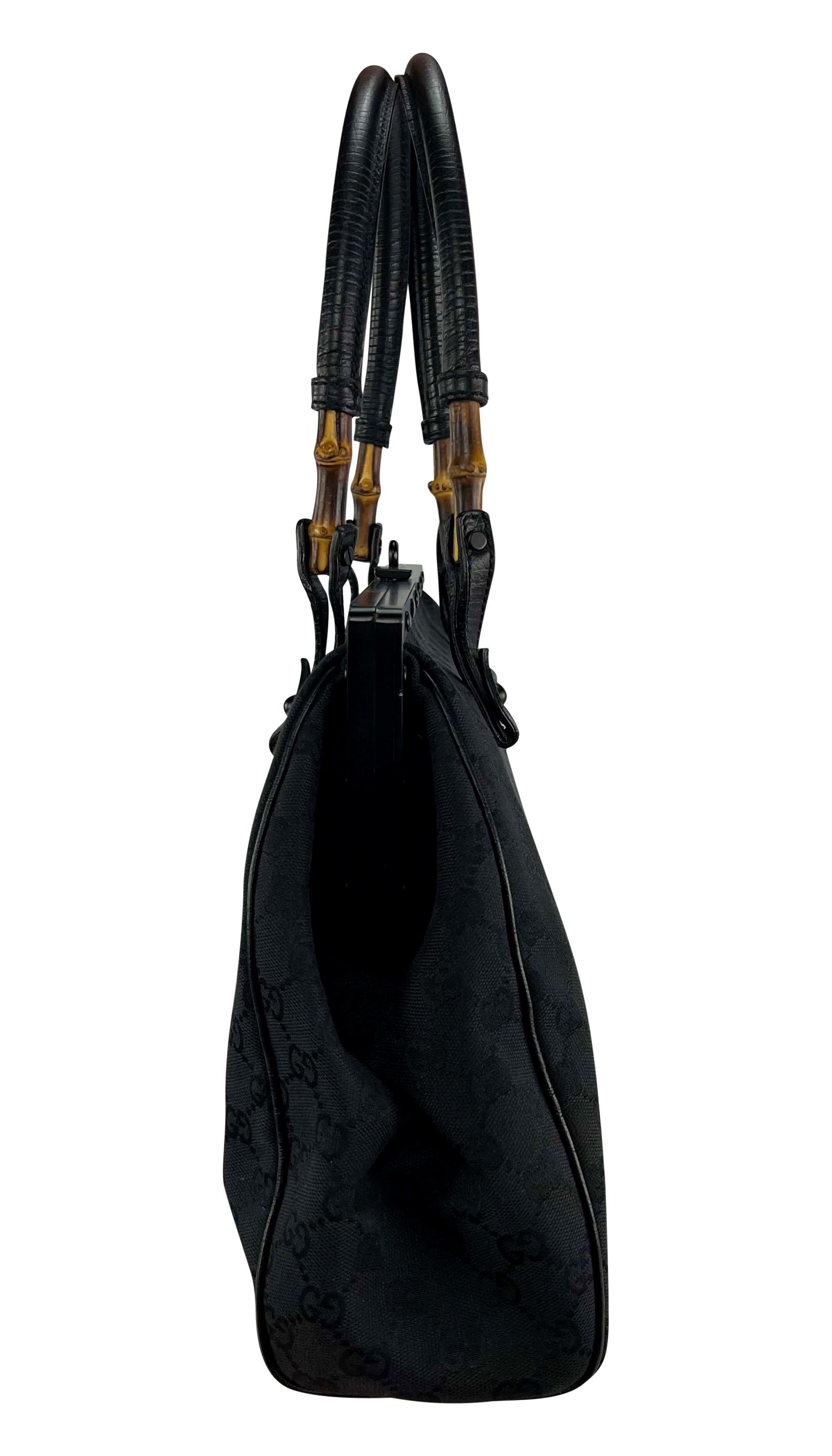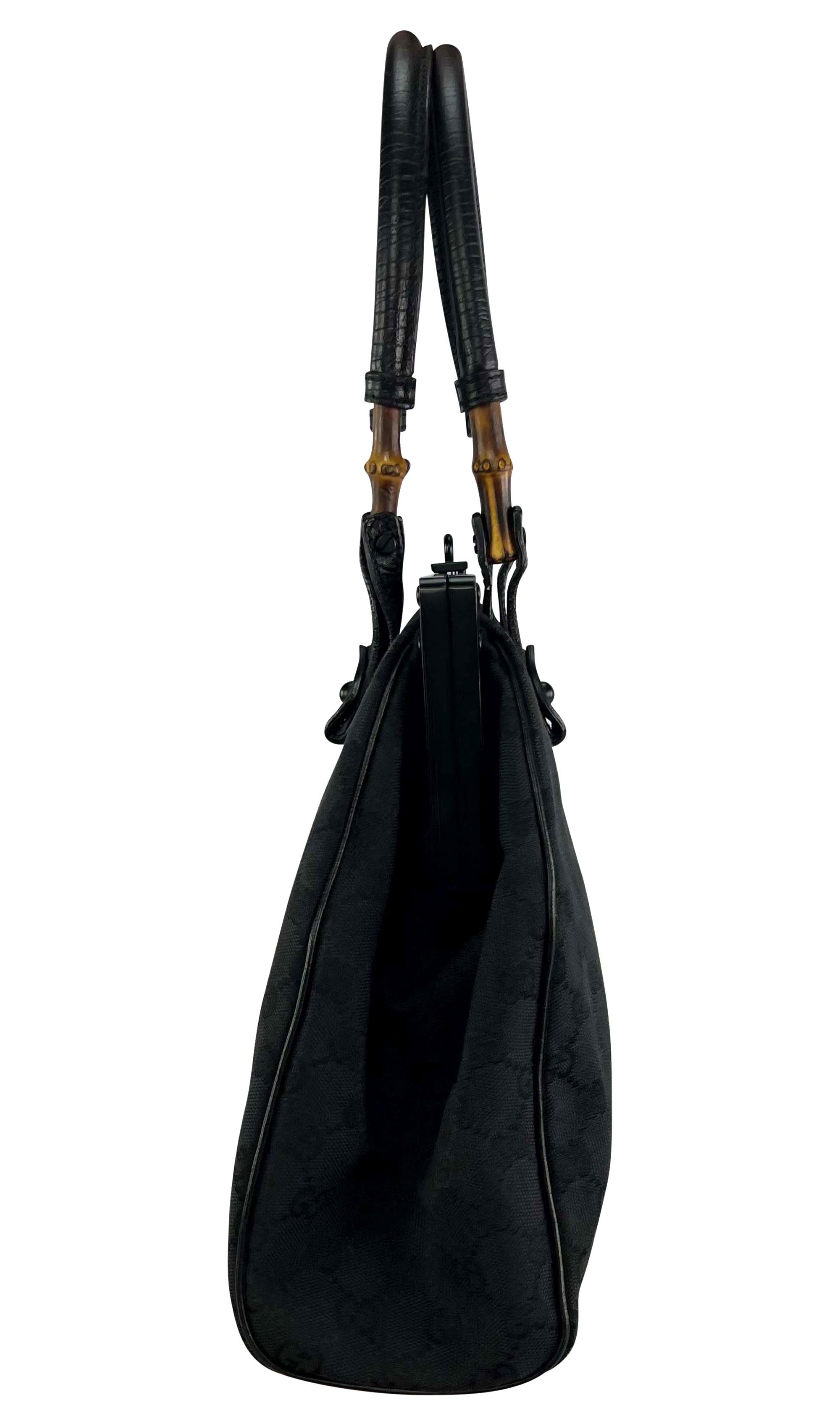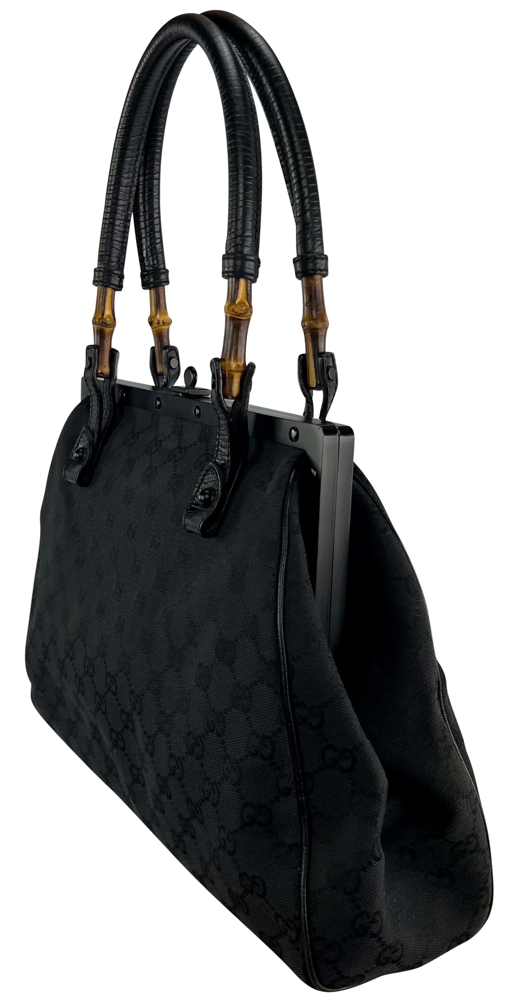 S/S 2003 Gucci by Tom Ford Bamboo Frame Black GG Canvas Large Shoulder Tote