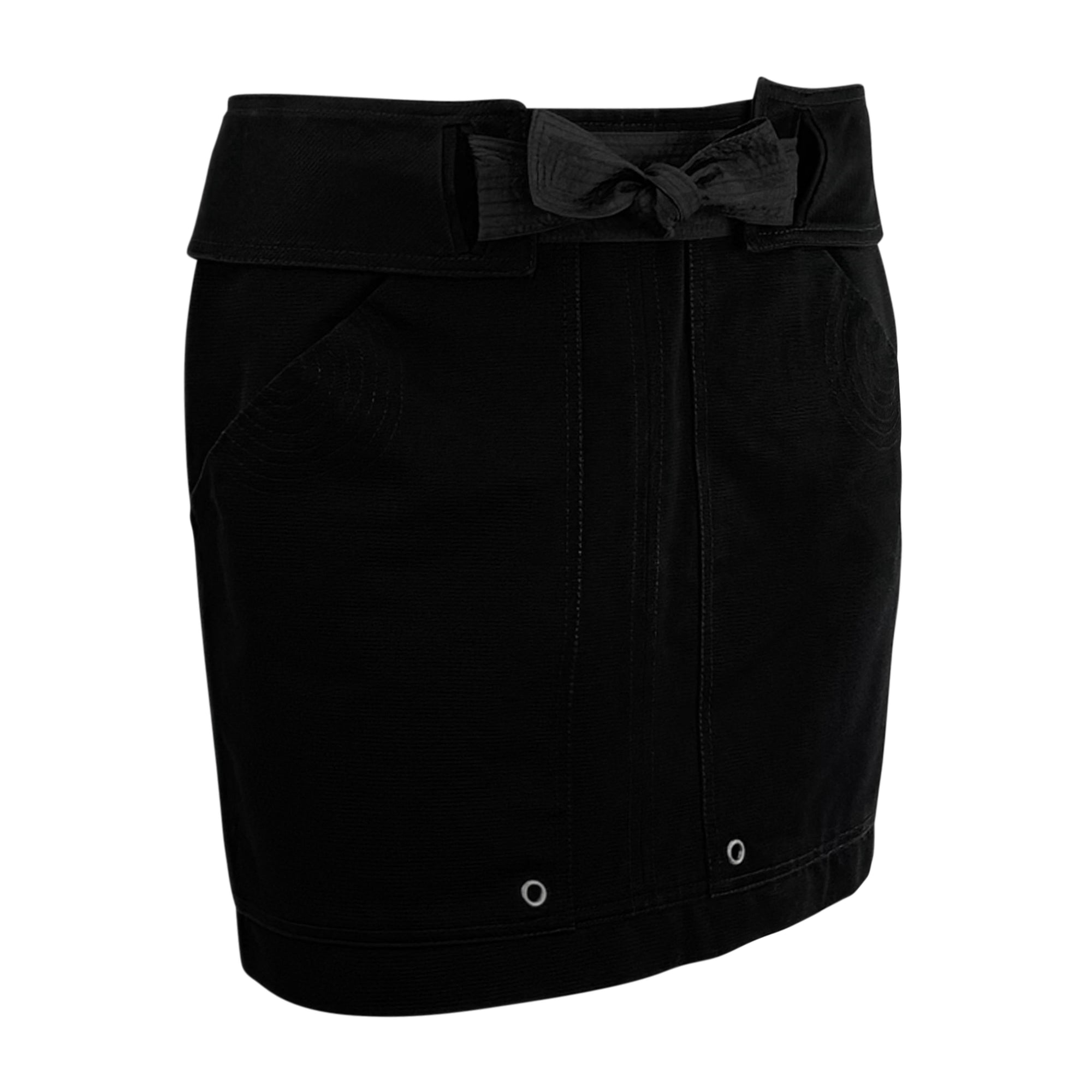 S/S 2003 Gucci by Tom Ford Black Cotton Twill Silk Belted Mini Skirt