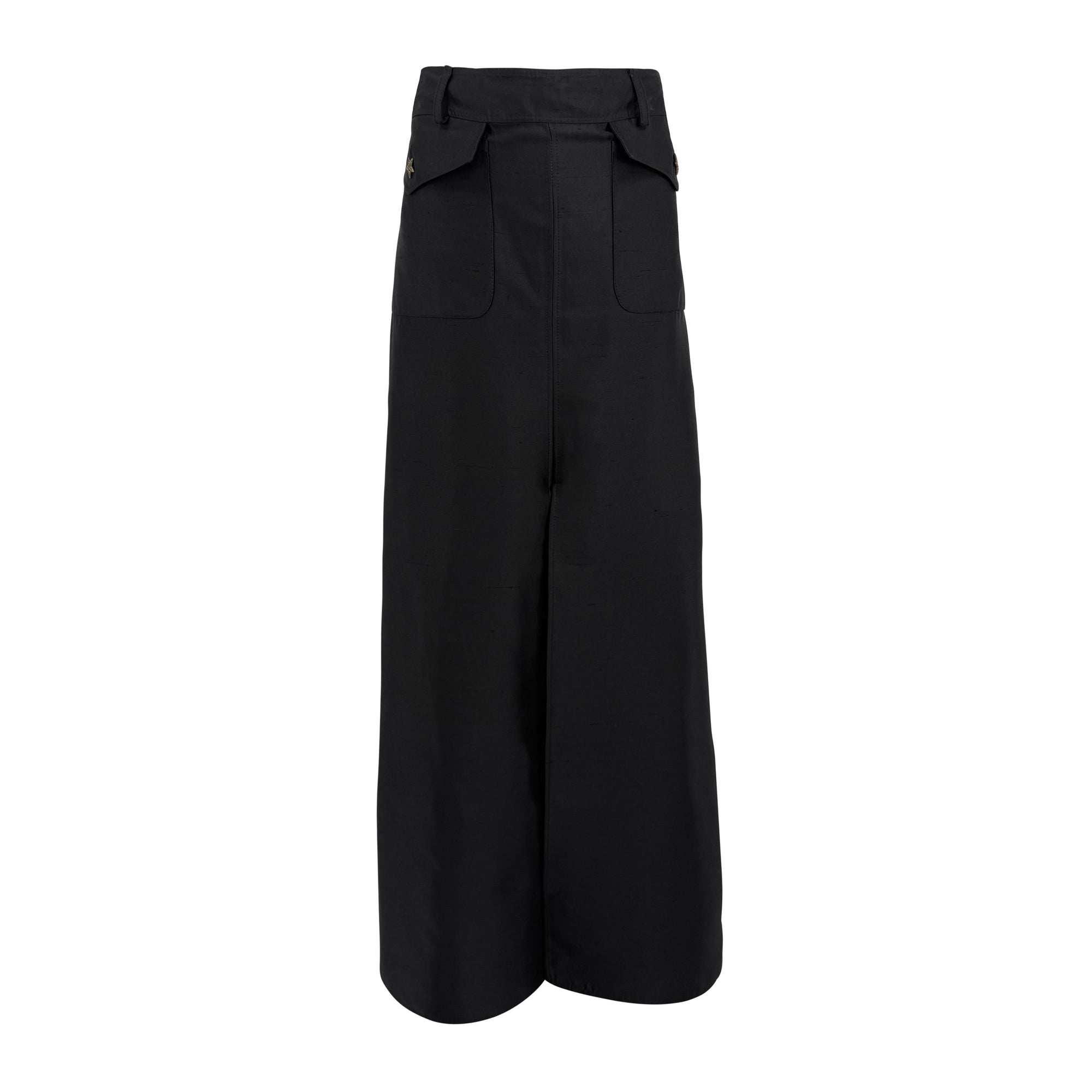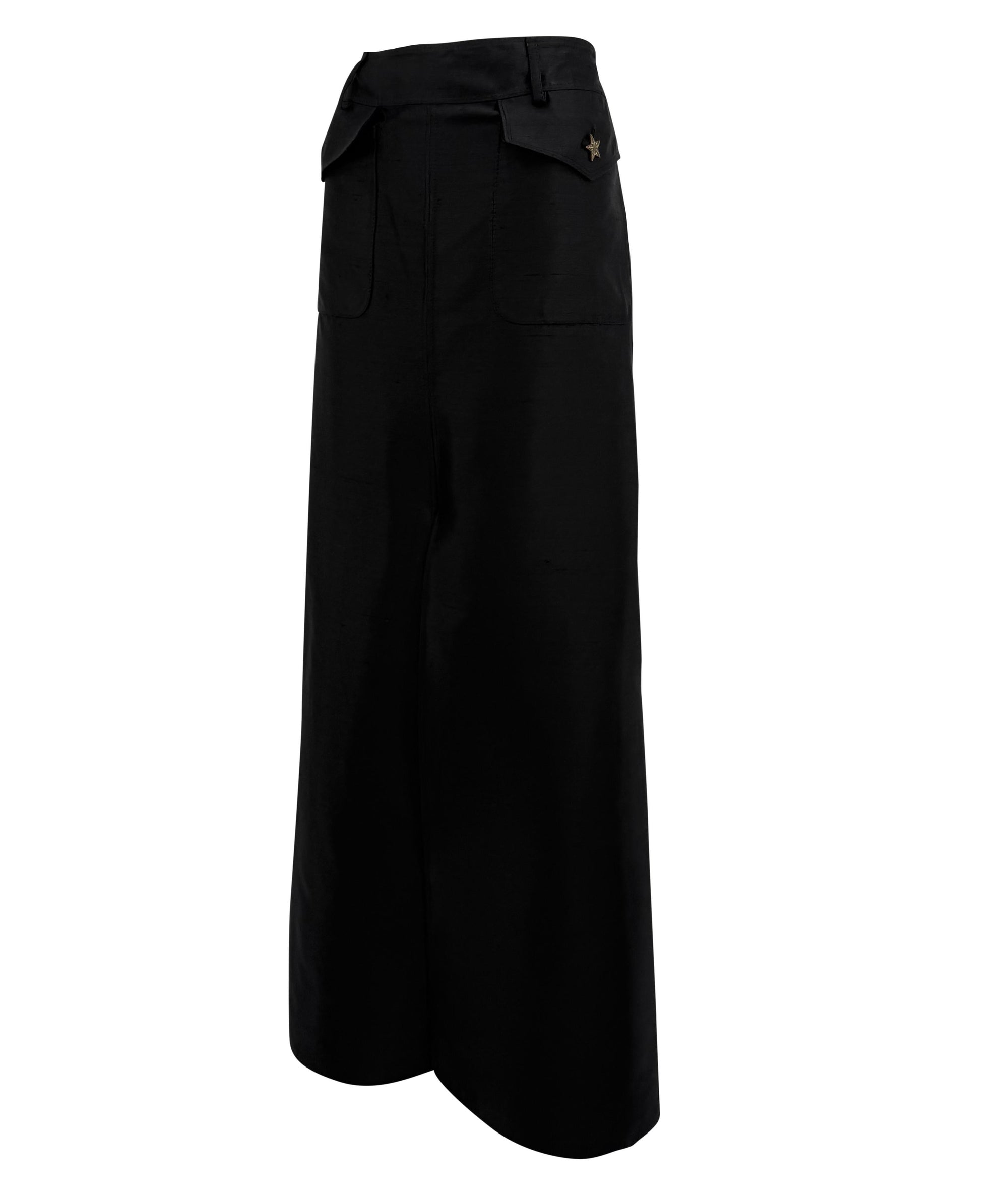 S/S 2003 Valentino Garavani Runway Black Raw Silk Cargo Pocket Maxi Skirt