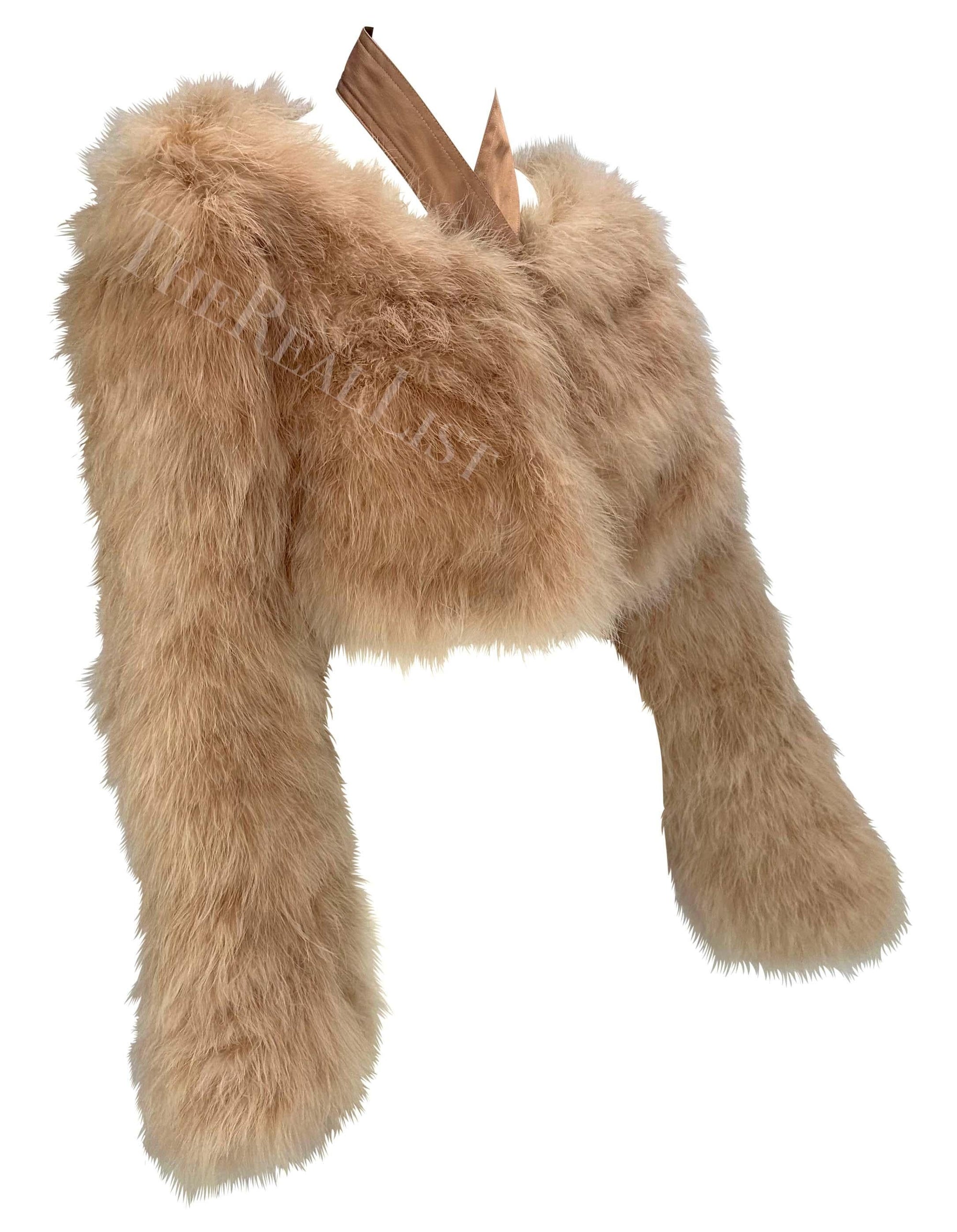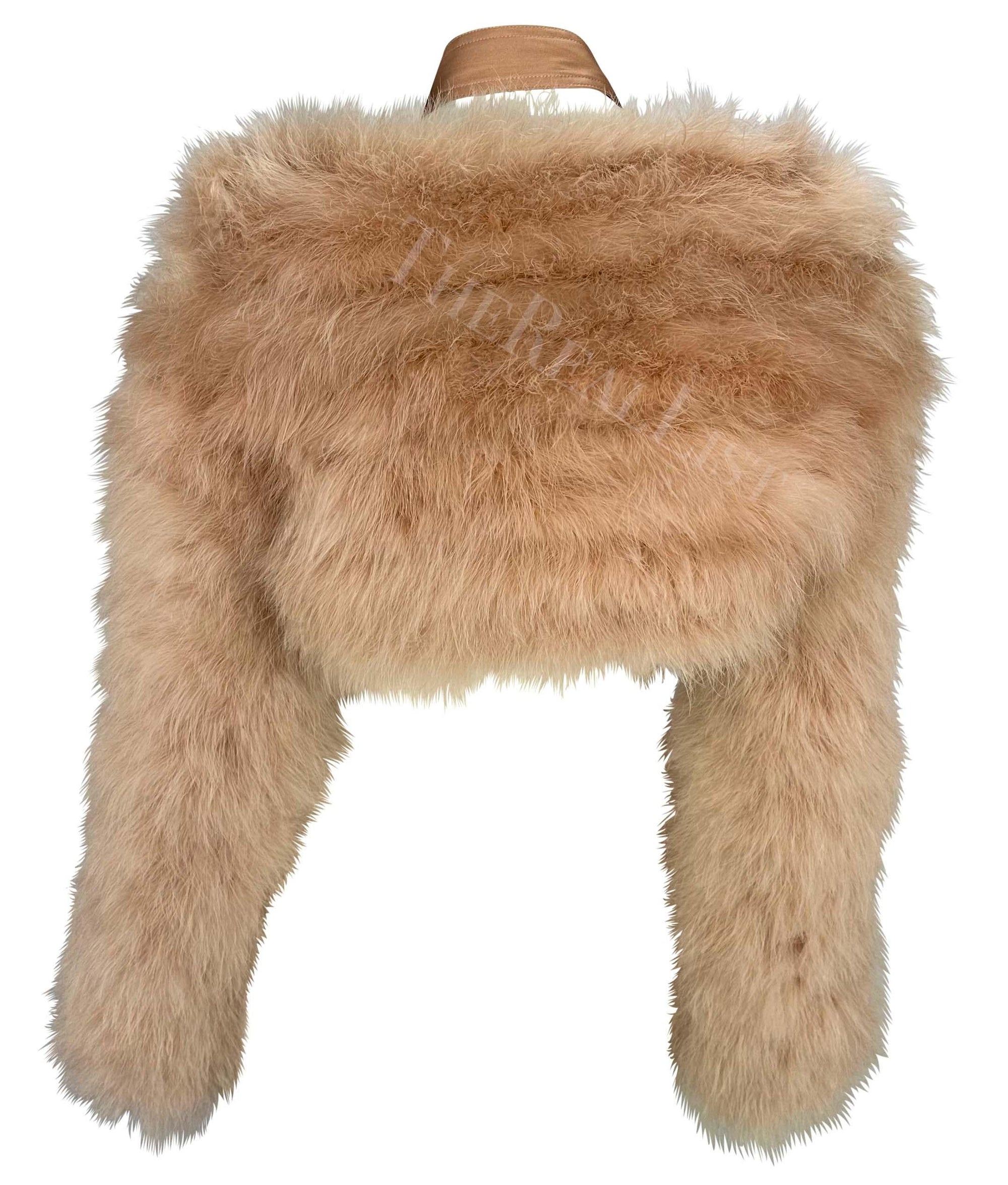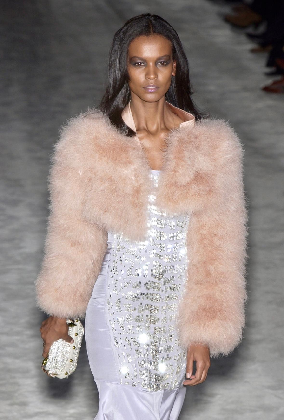 S/S 2004 Gucci by Tom Ford Runway Ad Blush Pink Marabou Feather Crop Jacket