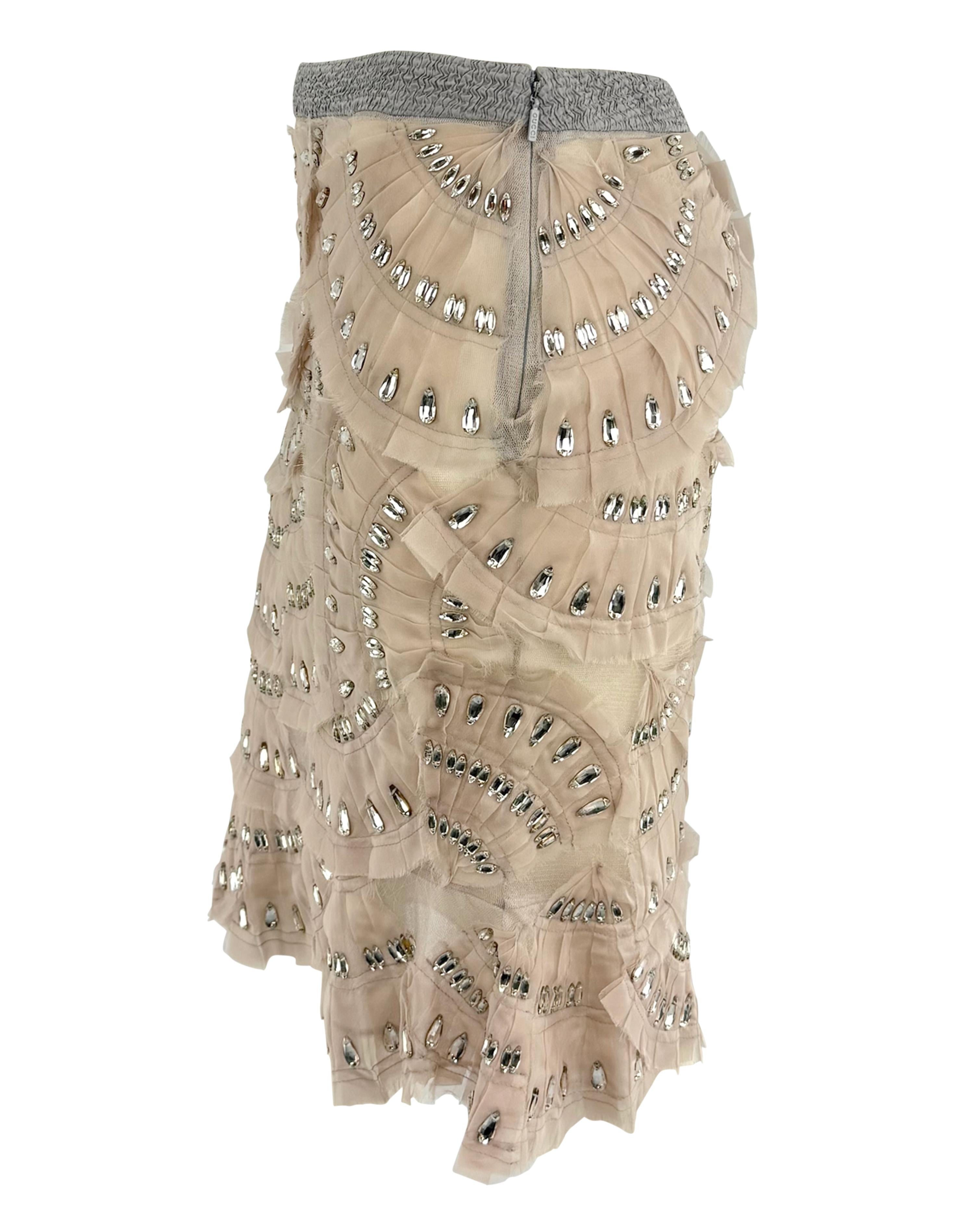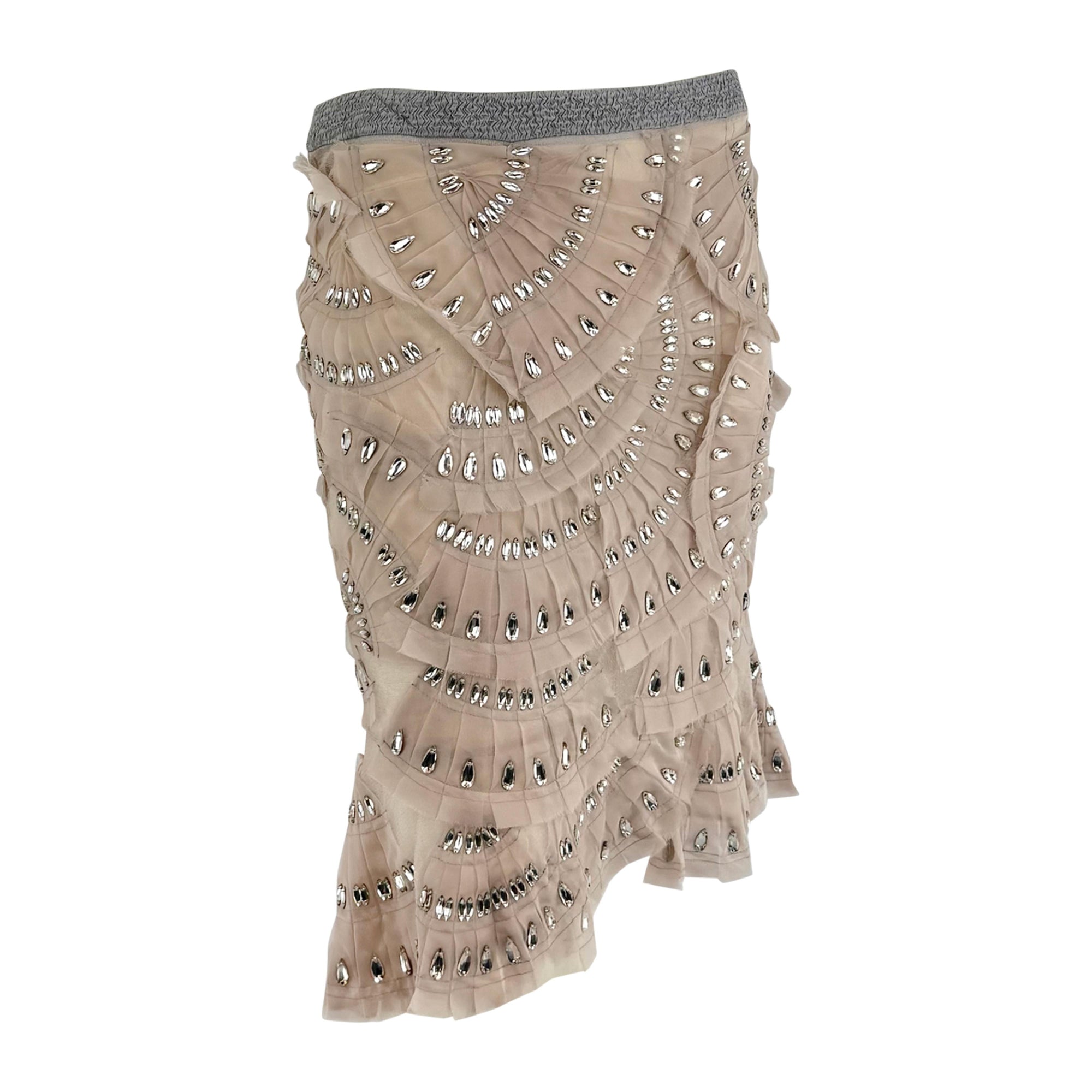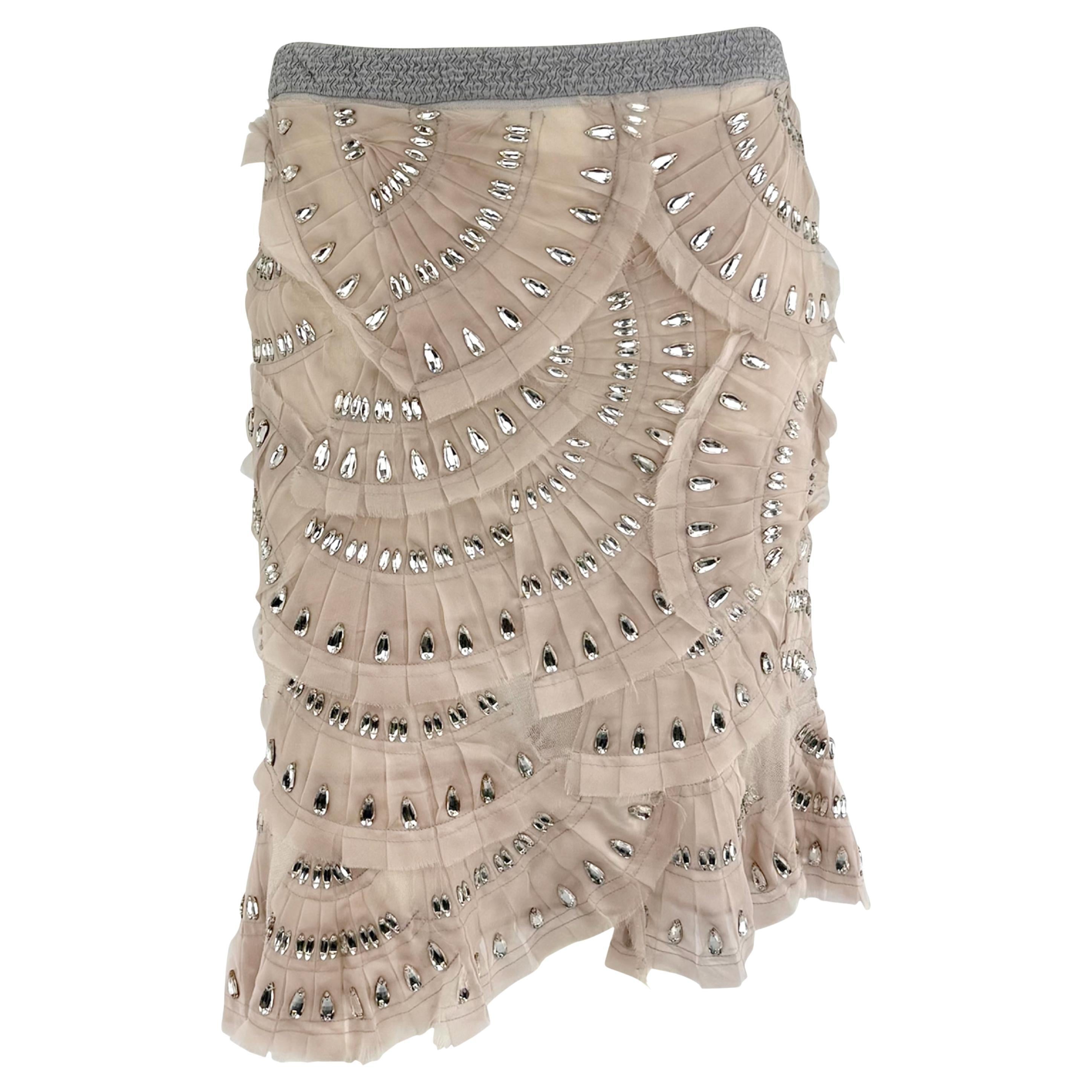 S/S 2004 Gucci by Tom Ford Runway Pale Pink Fan Pleated Silk Rhinestone Skirt