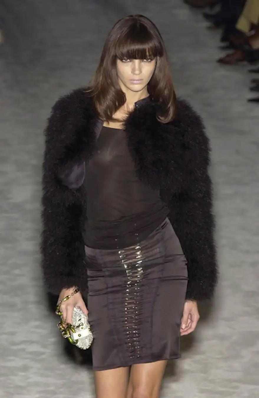S/S 2004 Gucci by Tom Ford Runway Rhinestone Black Silk Pleated Bodycon Skirt