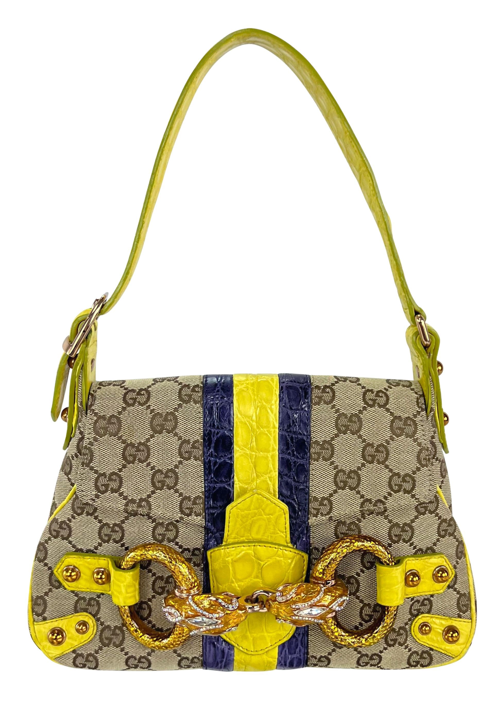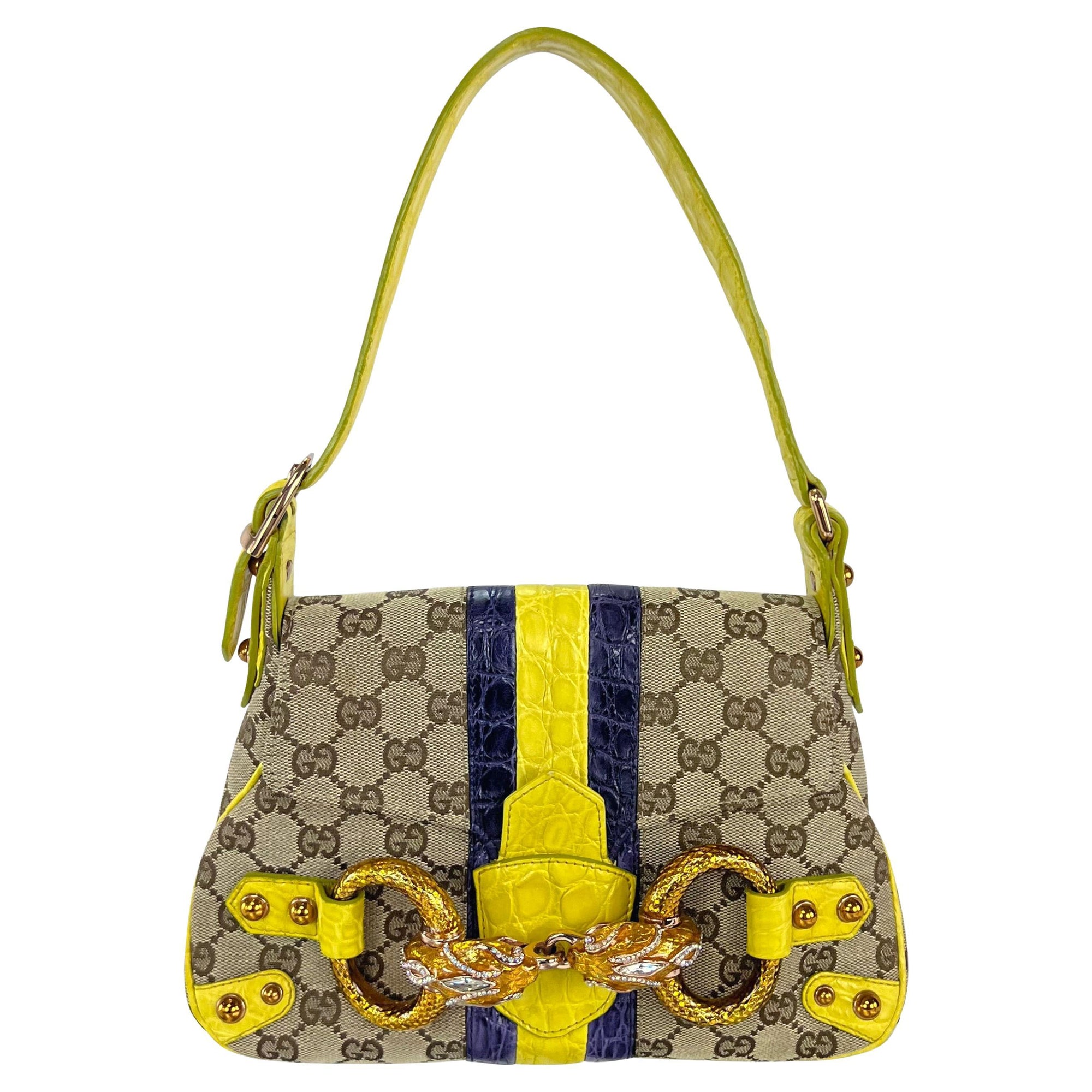 S/S 2004 Gucci by Tom Ford Yellow Alligator Serpent Horsebit Small Shoulder Bag