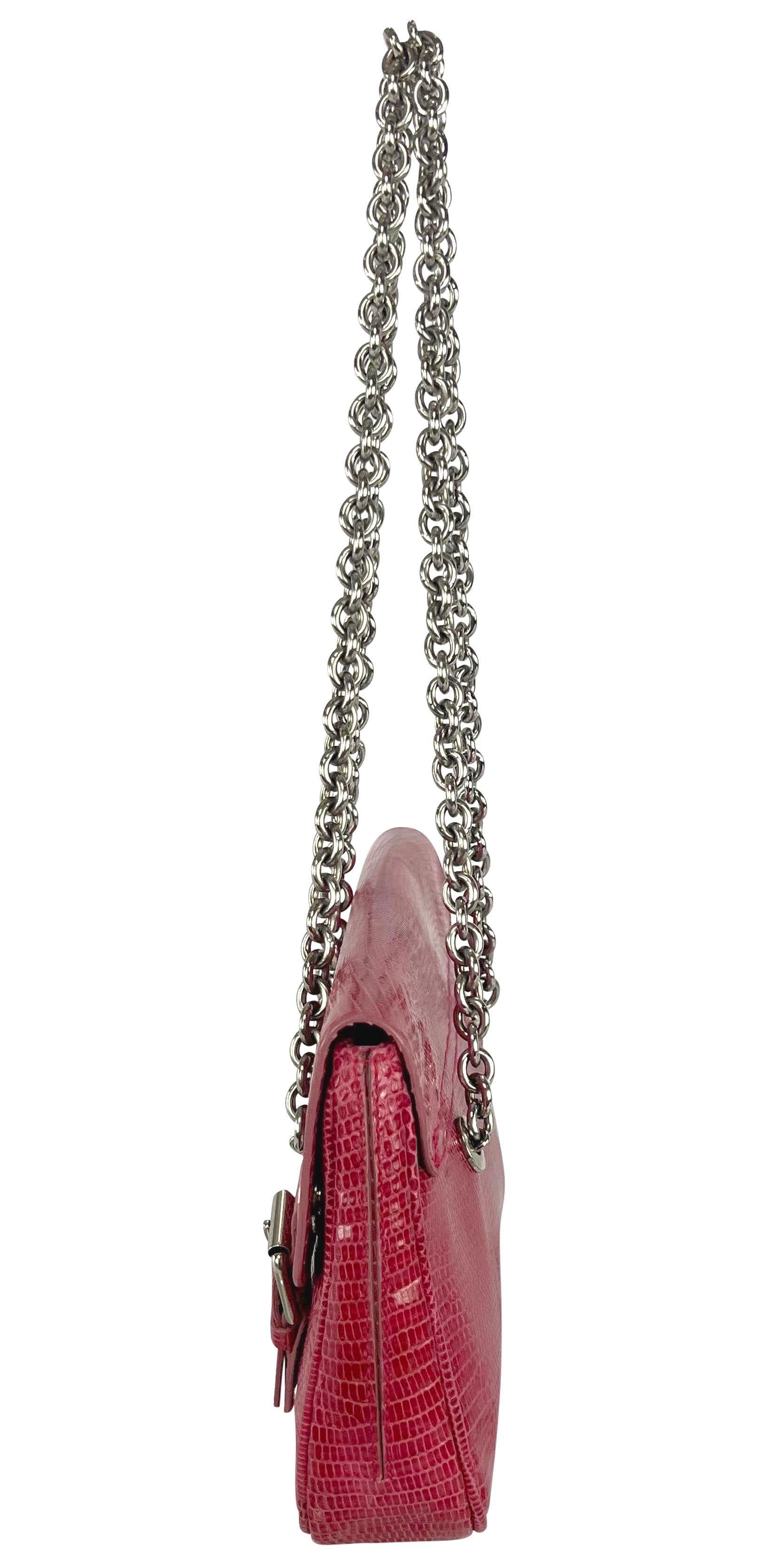 S/S 2004 Ralph Lauren Runway Pink Lizard Skin Chain Flap Shoulder Bag